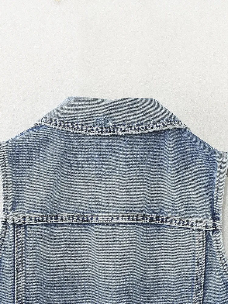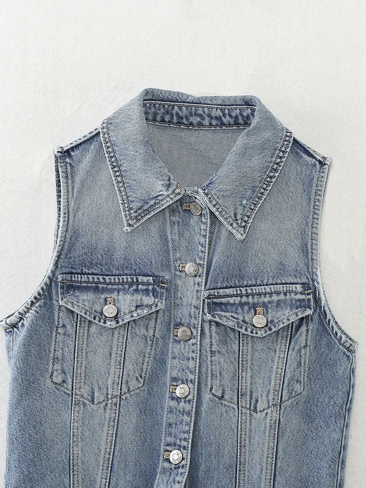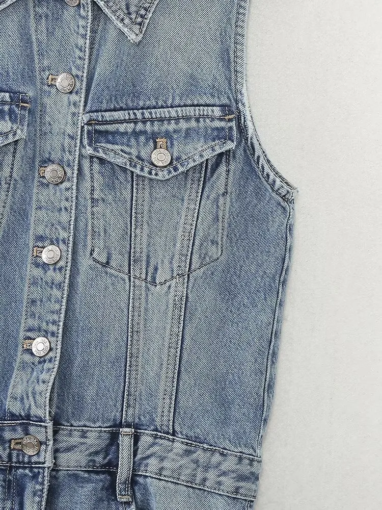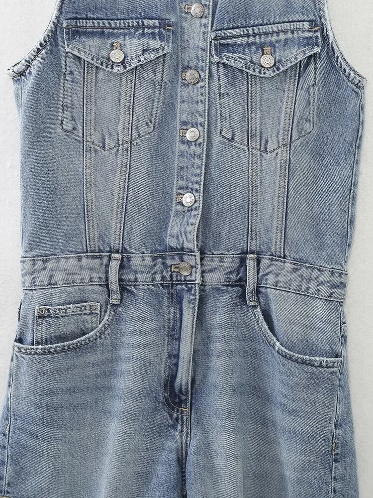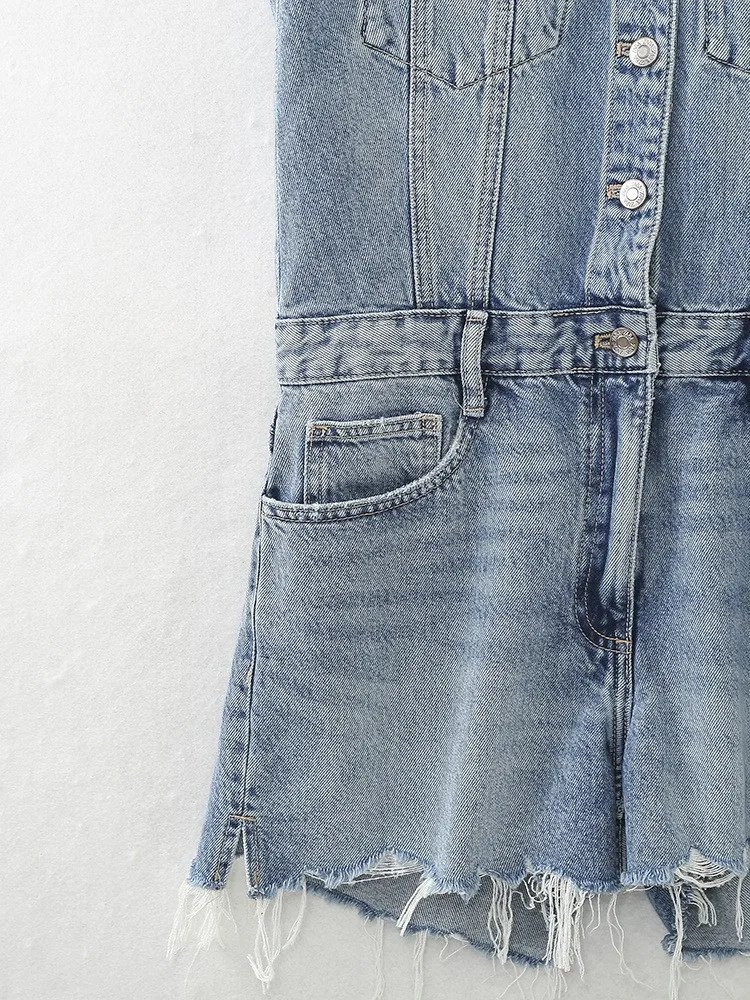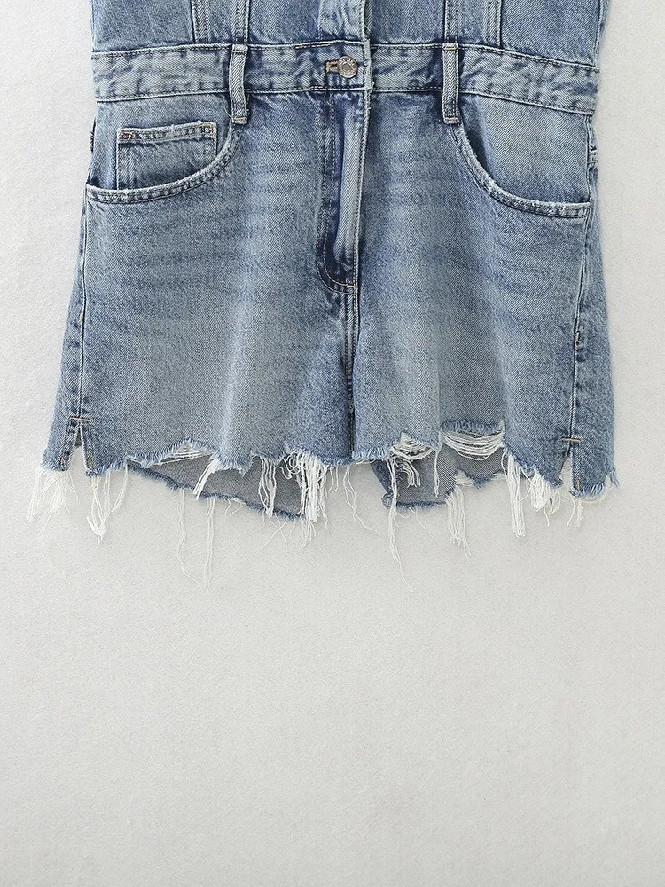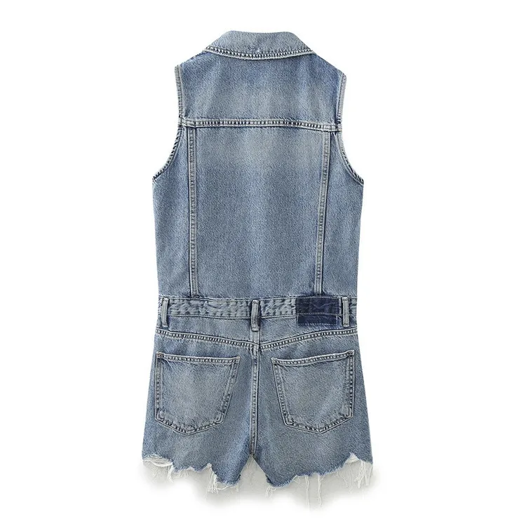 Short Overalls Jeans Turn-Down Collar Sleeveless High Waist Tassel Denim Jumpsuits For Women