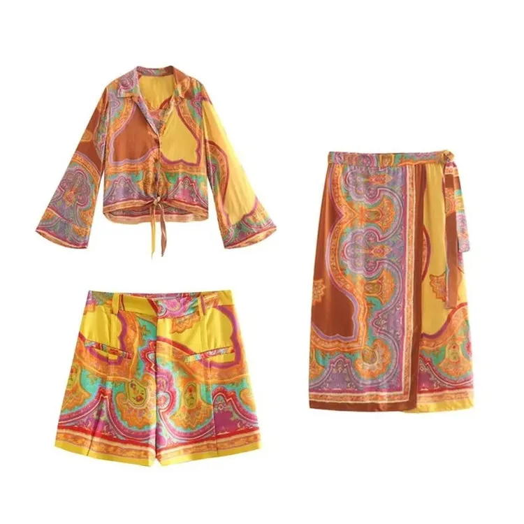 Short Pants Woman 2023 Print Skirt Sets Boho High Waist Shorts Skirt Summer