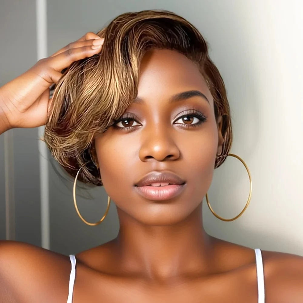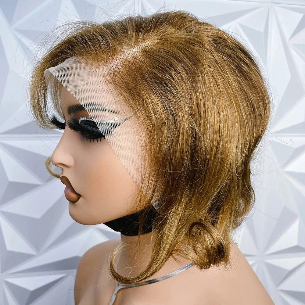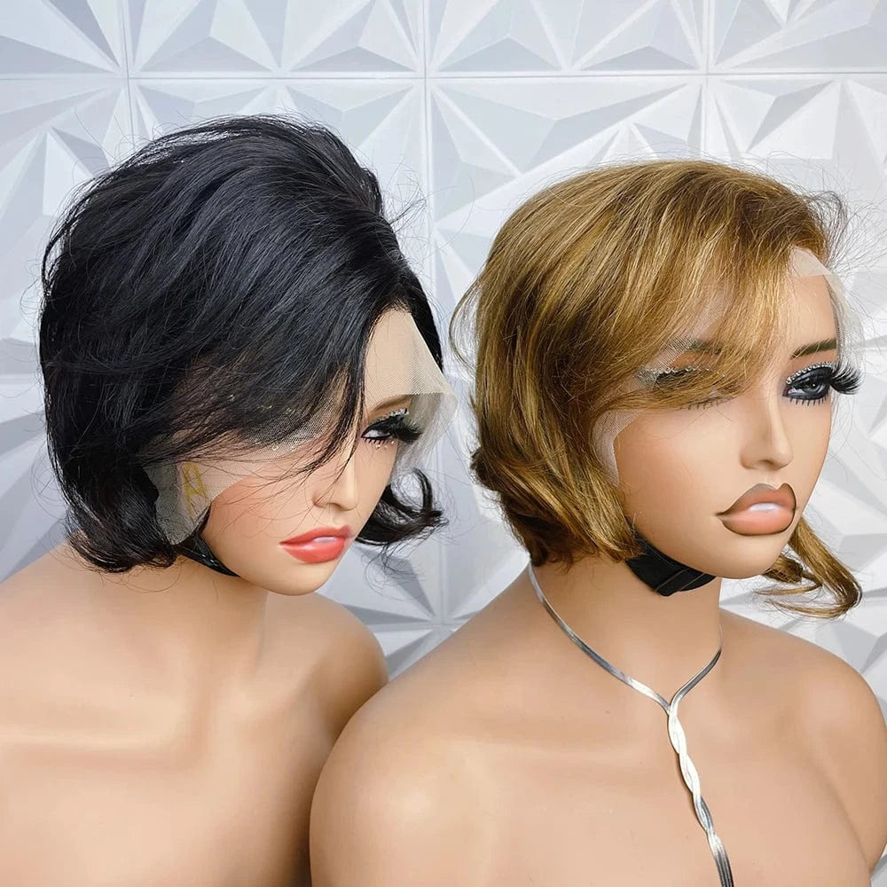 Short Pixie Cut Bob Wig Pixi Transparent 13X4 Lace Frontal Wavy Human Hair Wigs For Women Highlight Lace Wig PrePlucked Hairline