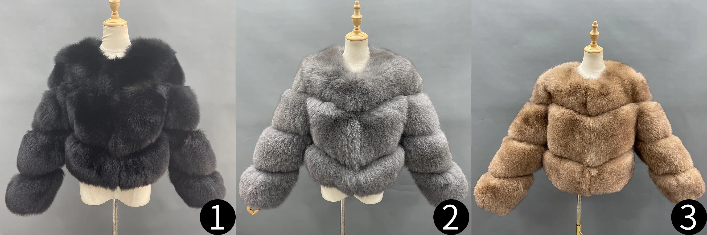 Short Style Thick Warm Women Luxury Fox Fur Jacket Pretty Small V-neck Three Sections Fluffy Genuine Short Fox Fur Jacket