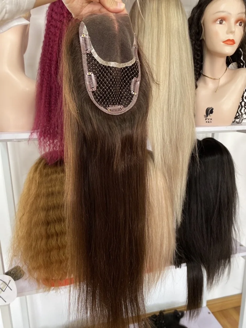 Silky Human Hair Toupee Mid Part Glueless Clip In Hair Base Topper For Women Vietnamese Cuticle Aligned Hair Fast Shipping