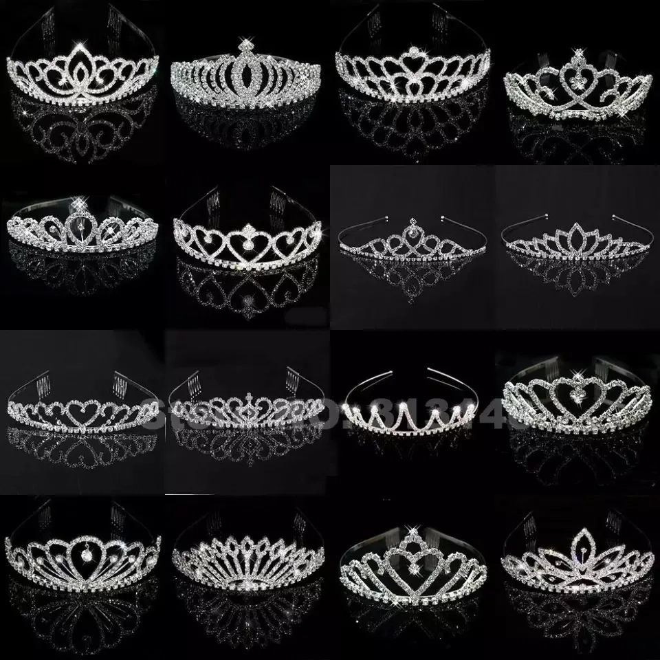 Silver Color Rhinestone Crown Tiara High Quality Handmade Crystal Hair Accessories Headband Bridal Wedding Princess Tiara Crown
