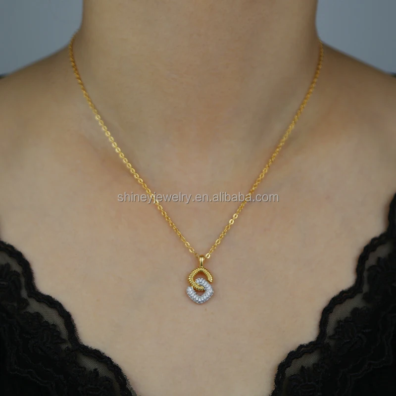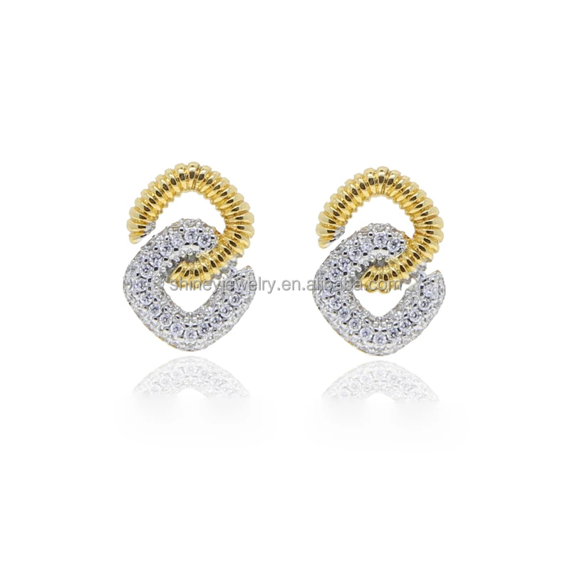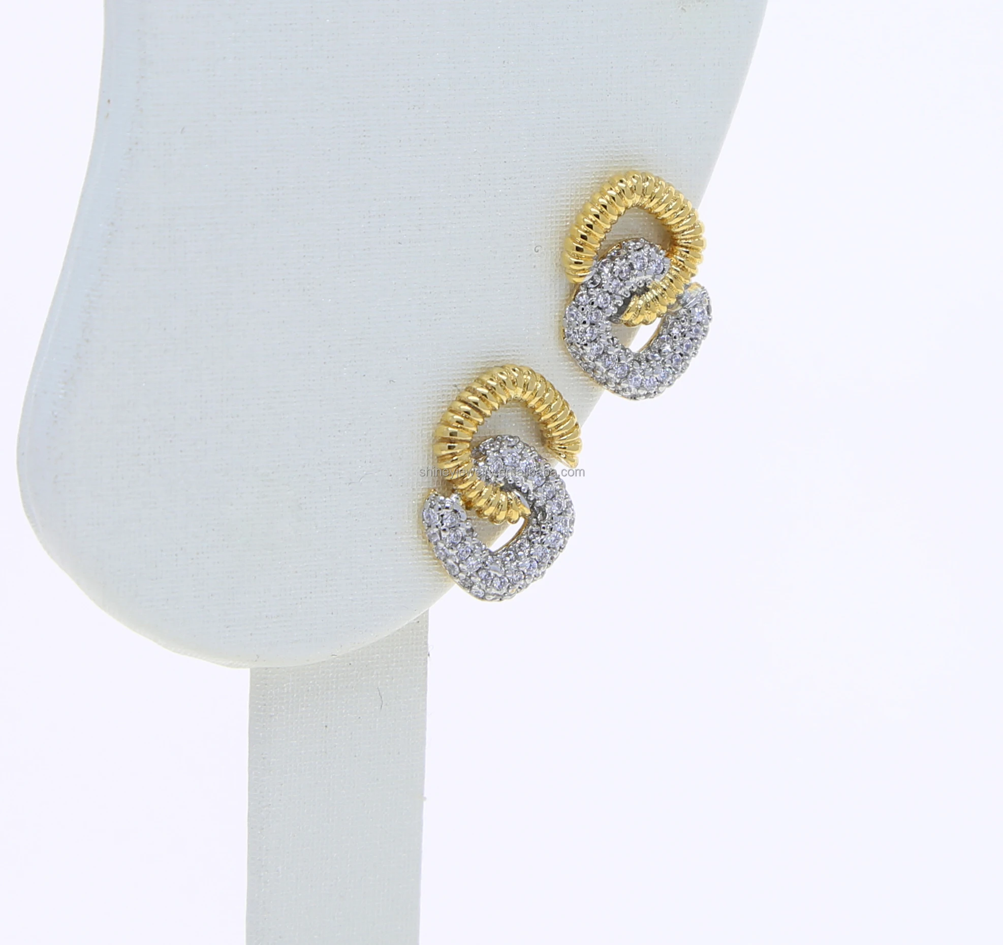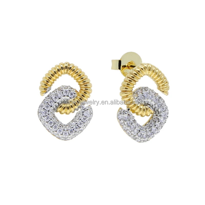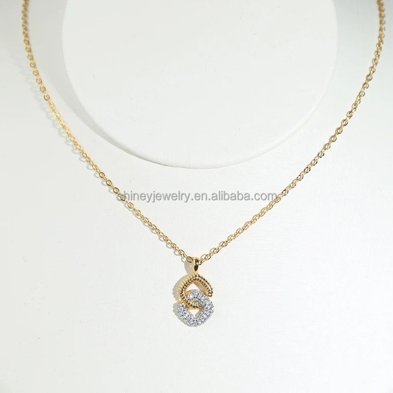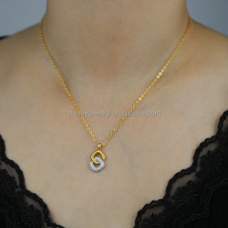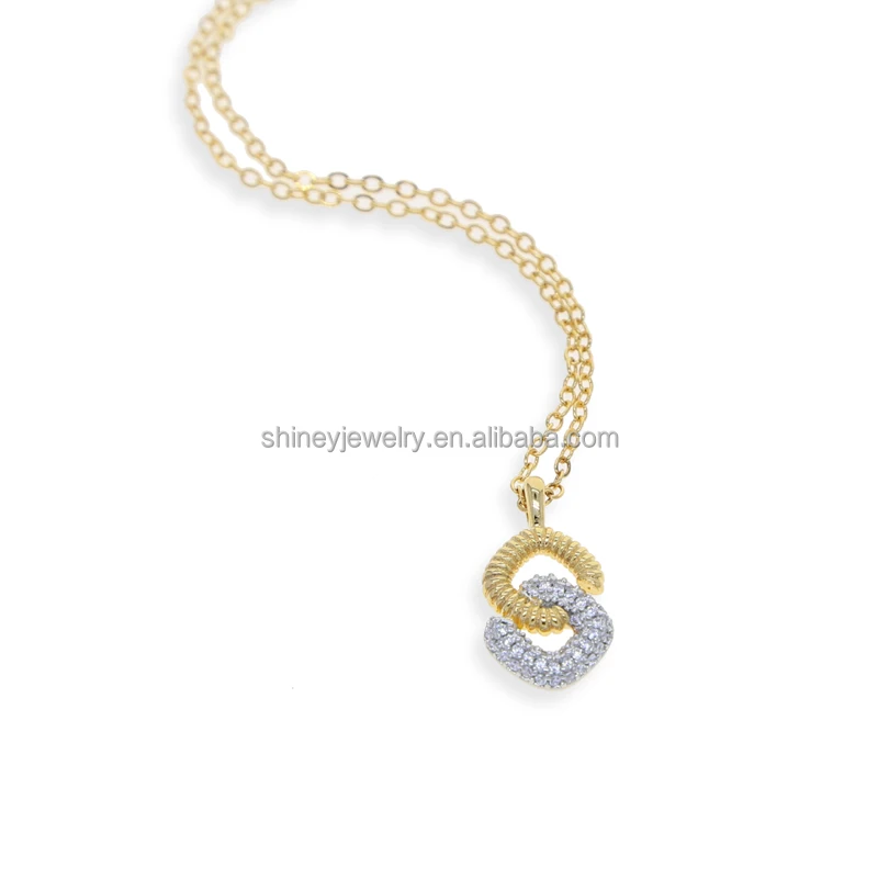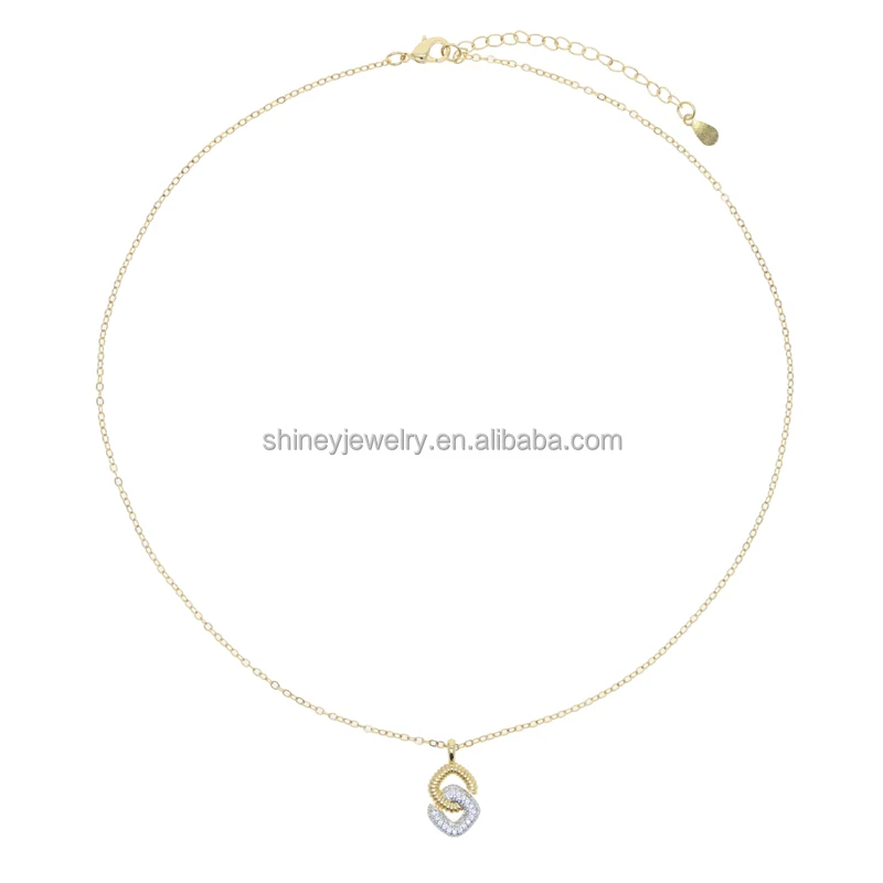 Silver Gold Two Tone Plated New Fashion Design 5A CZ Double Square Pendant Link Chain Necklace Women Jewelry Set