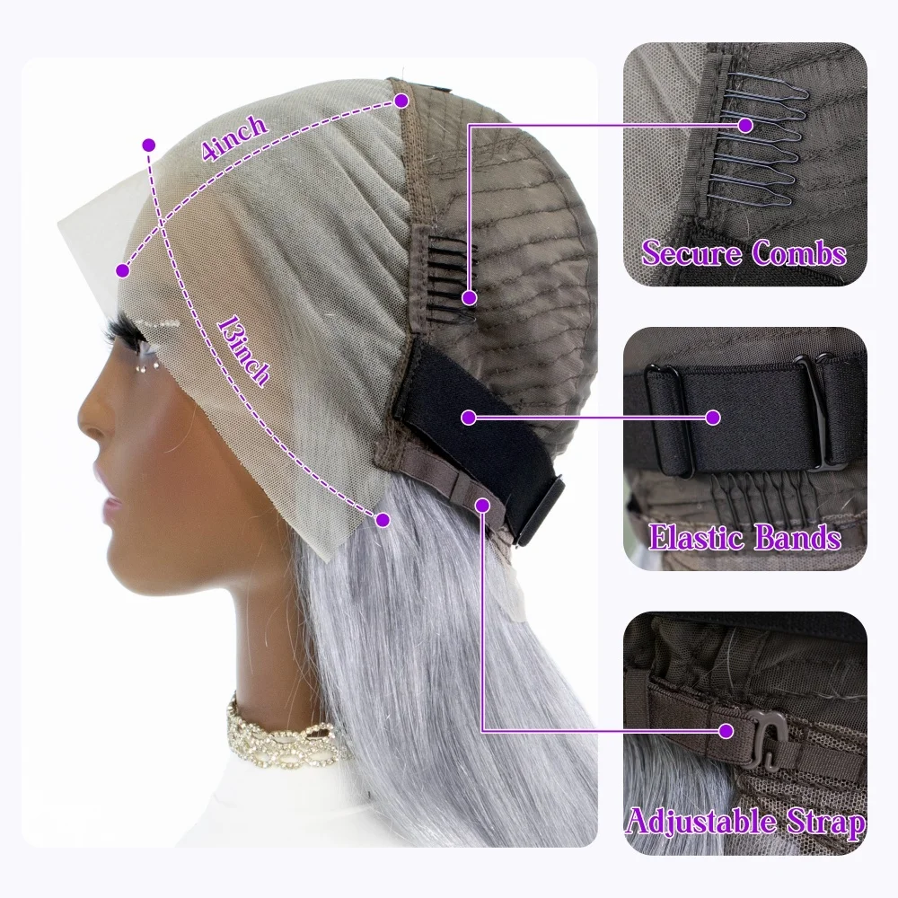 Silver Grey Straight Bob Human Hair Wigs Gray 13x4 Transparent Lace Front Short Bob Short Wigs Human Hair For Women Preplucked