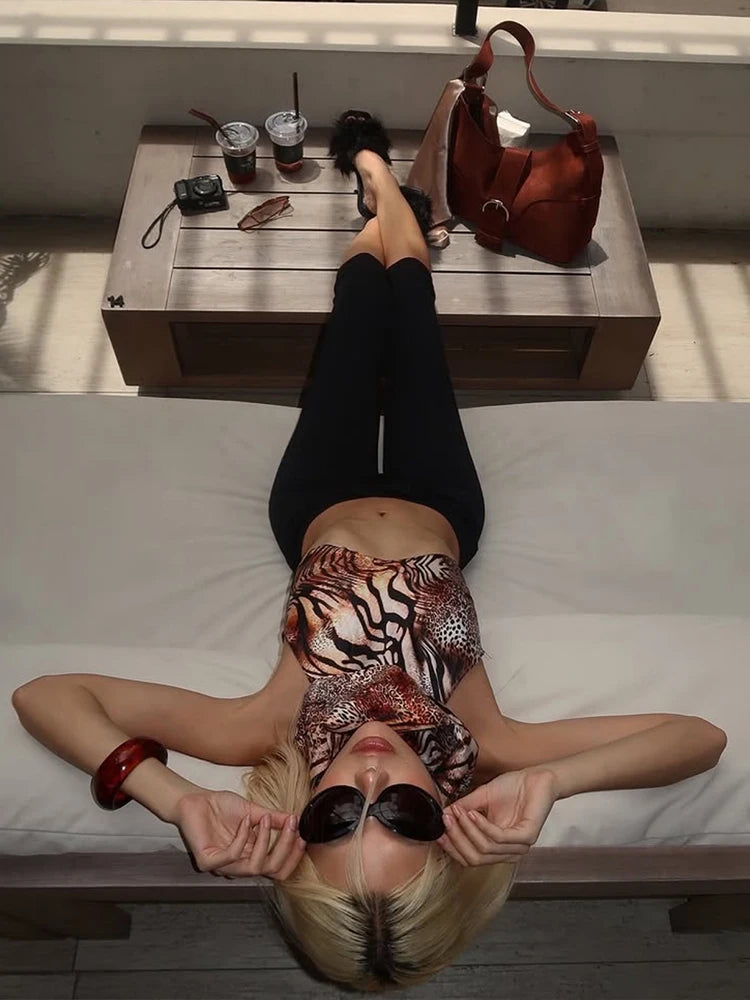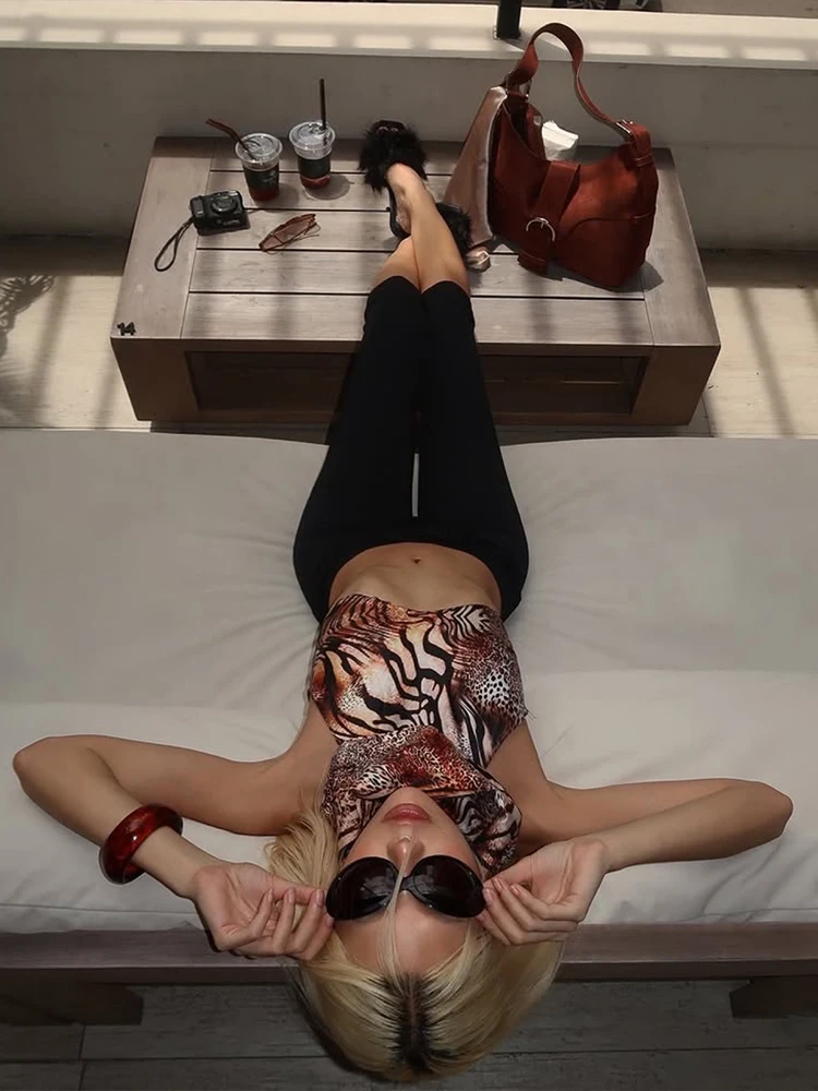 Sisterlinda Leopard Print Tank Tops Woman Halter Turtleneck Backless Navel Exposed Hot Girls Street Sexy Wild Style Clothing