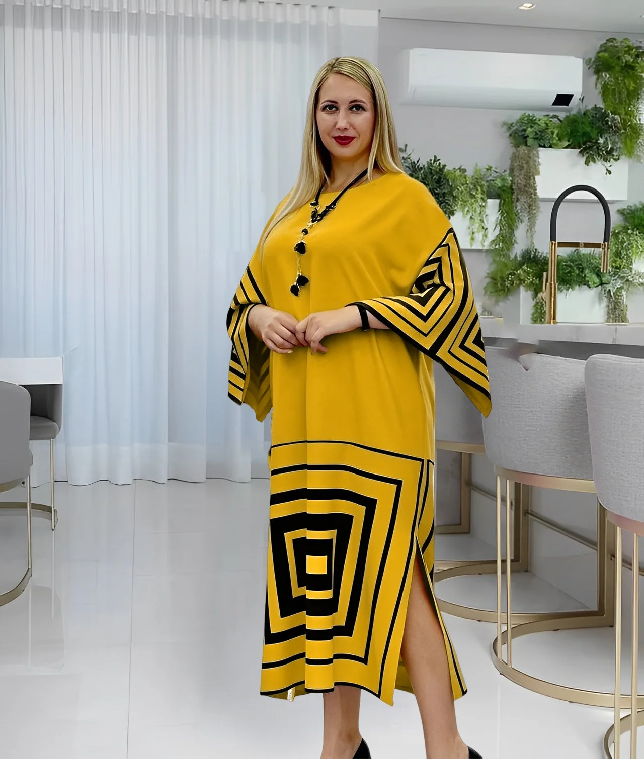 SJ 2023 New Design Chic Print Abaya Style Dress Women Moroccan Kaftan Loose Casual Dresses