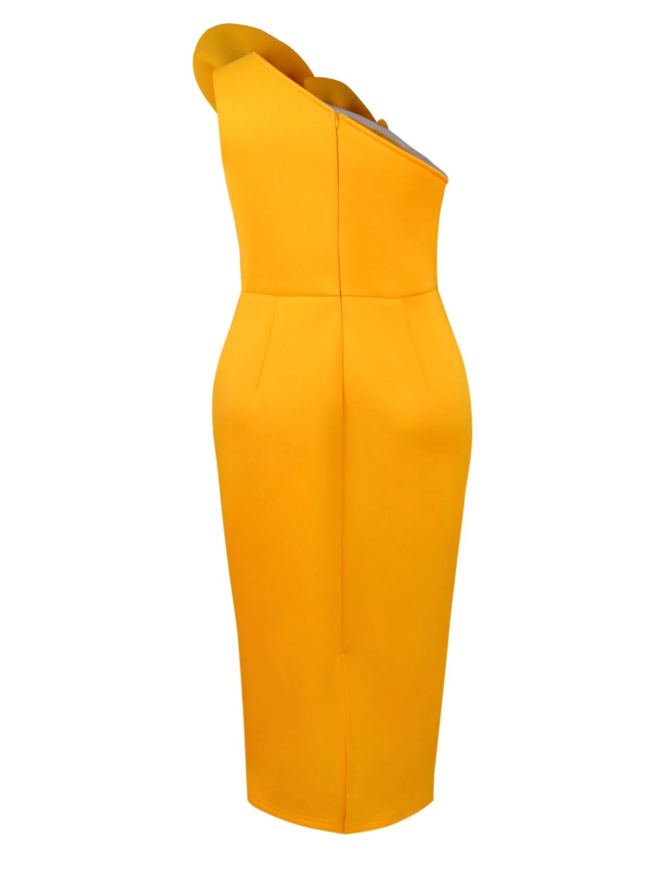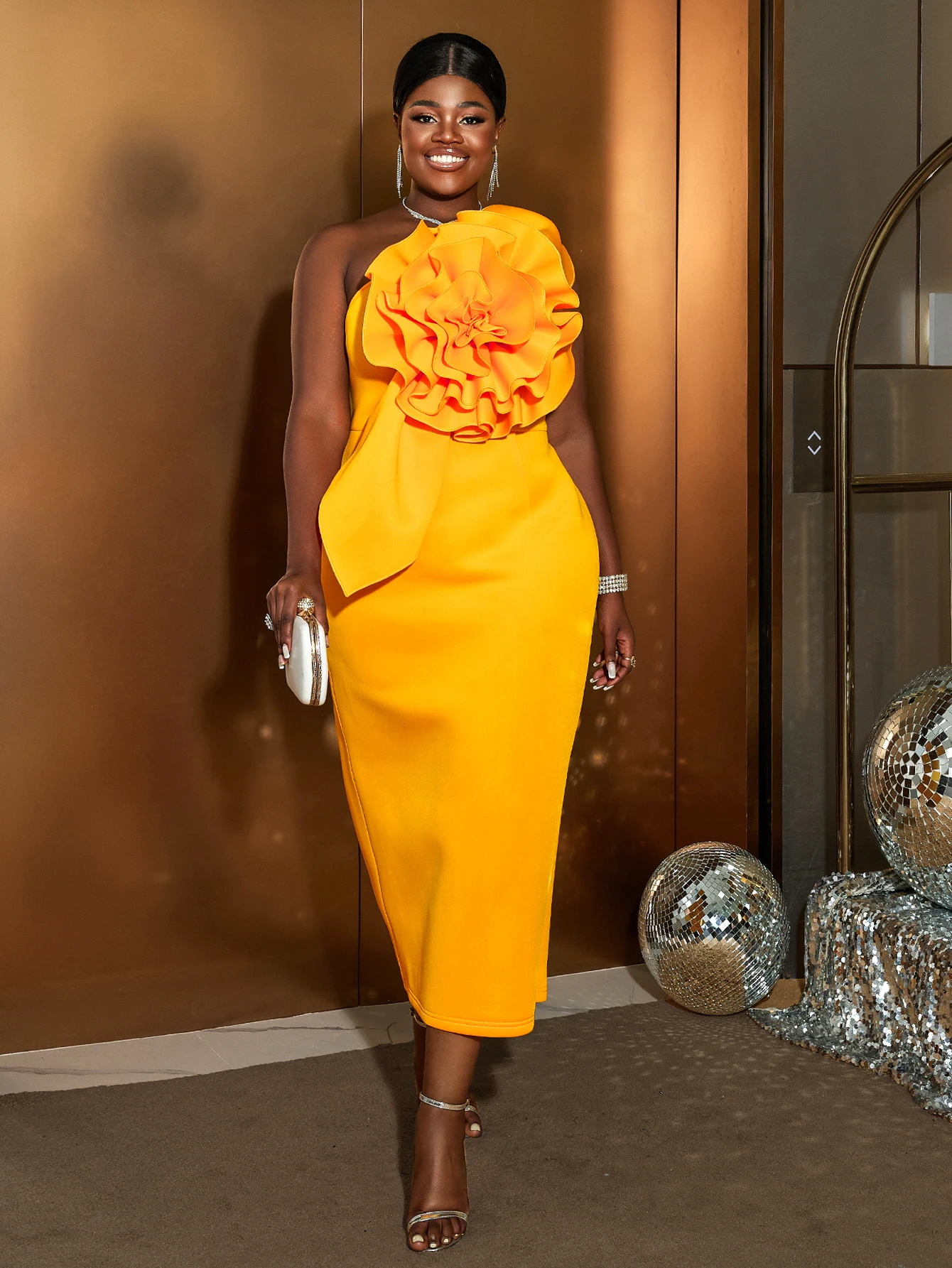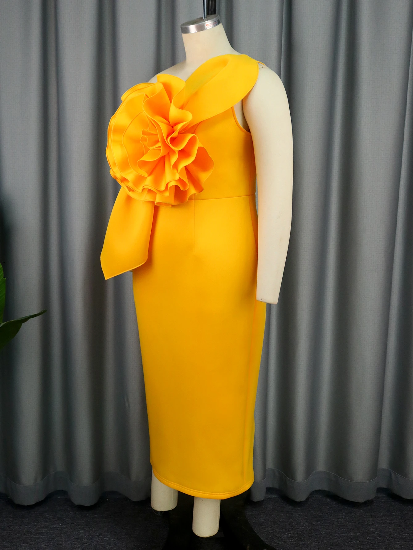 Skew Collar Sleeveless One Shoulder Large 3D Rosette Women Prom Dress