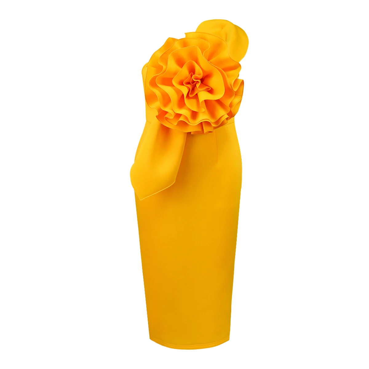 Producrt Name:Skew Collar Sleeveless One Shoulder Large 3D Rosette Women Prom Dress