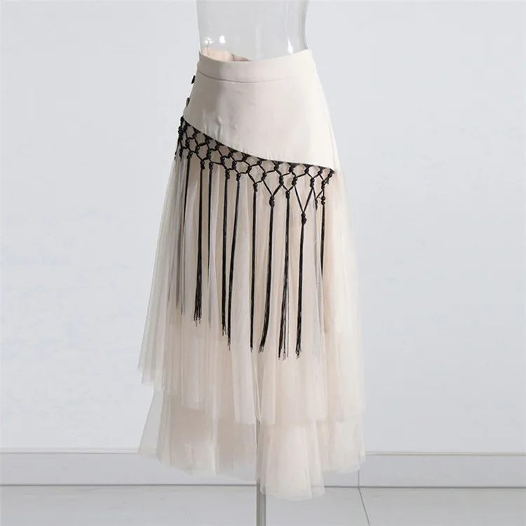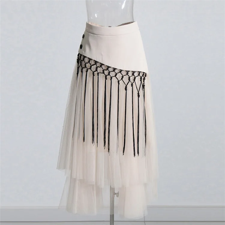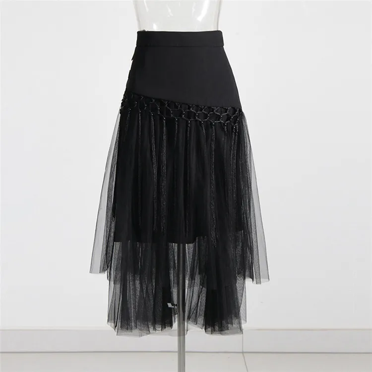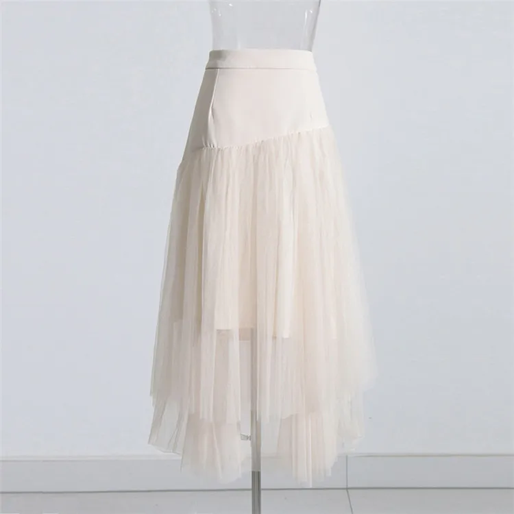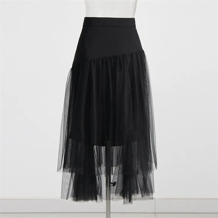 Skirts For Women High Waist Patchwork Mesh Minimalist Loose Mid Skirt