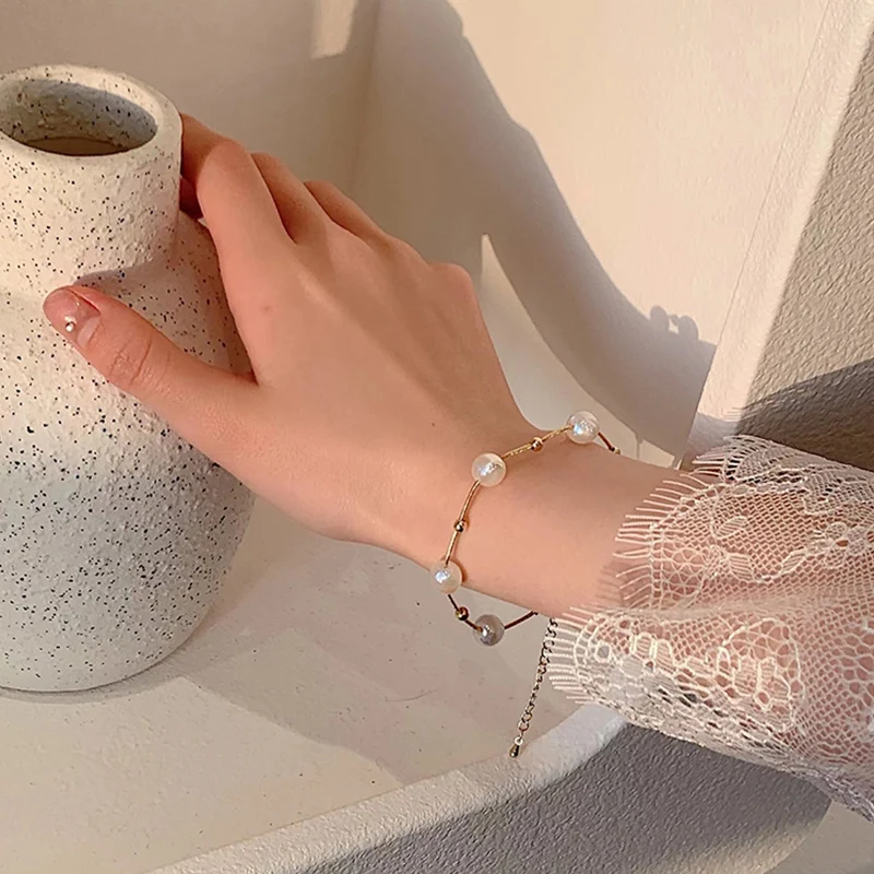 SL61094 Wholesale korean simple mermaid pearl fashion design trend Bracelet14k Gold Plated Women Jewelry