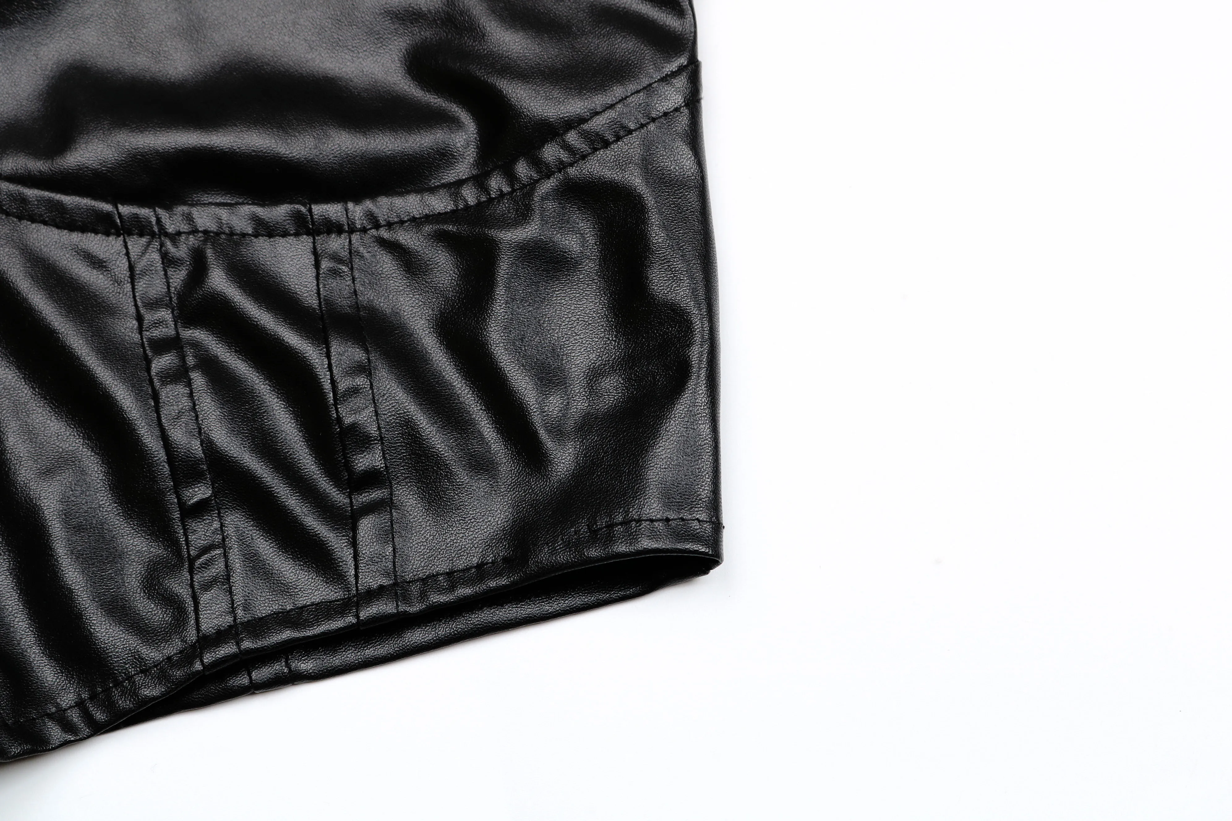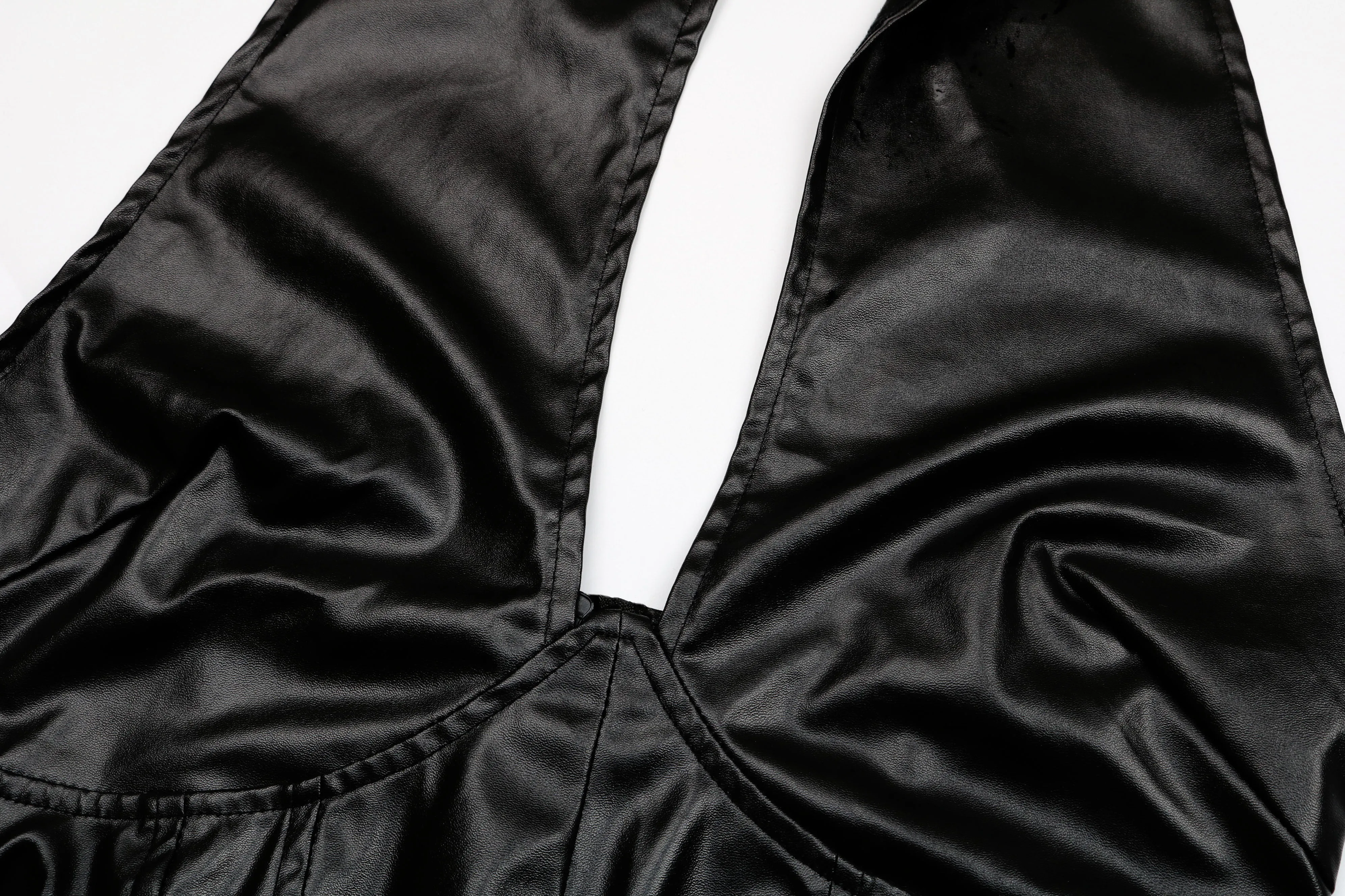Sleeveless Hollow out Black Pu Leather Sexy&club Fashion Summer Ladies Backless Halter Tank Top