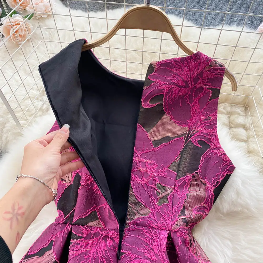 Sleeveless O-neck Print A-line Dress Summer Vintage High Waist Maxi Dress Ladies Elegant Dresses Clothes Women Wholesale
