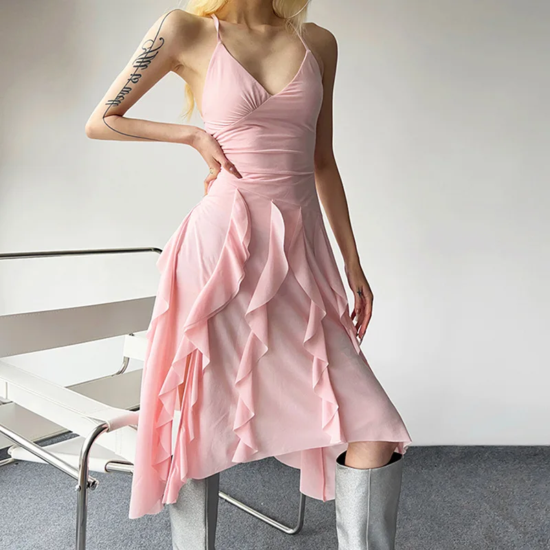 Sleeveless Stretchy Tassel Solid Casual Women'S Dresses 2023 New Evening Spring American Clothing