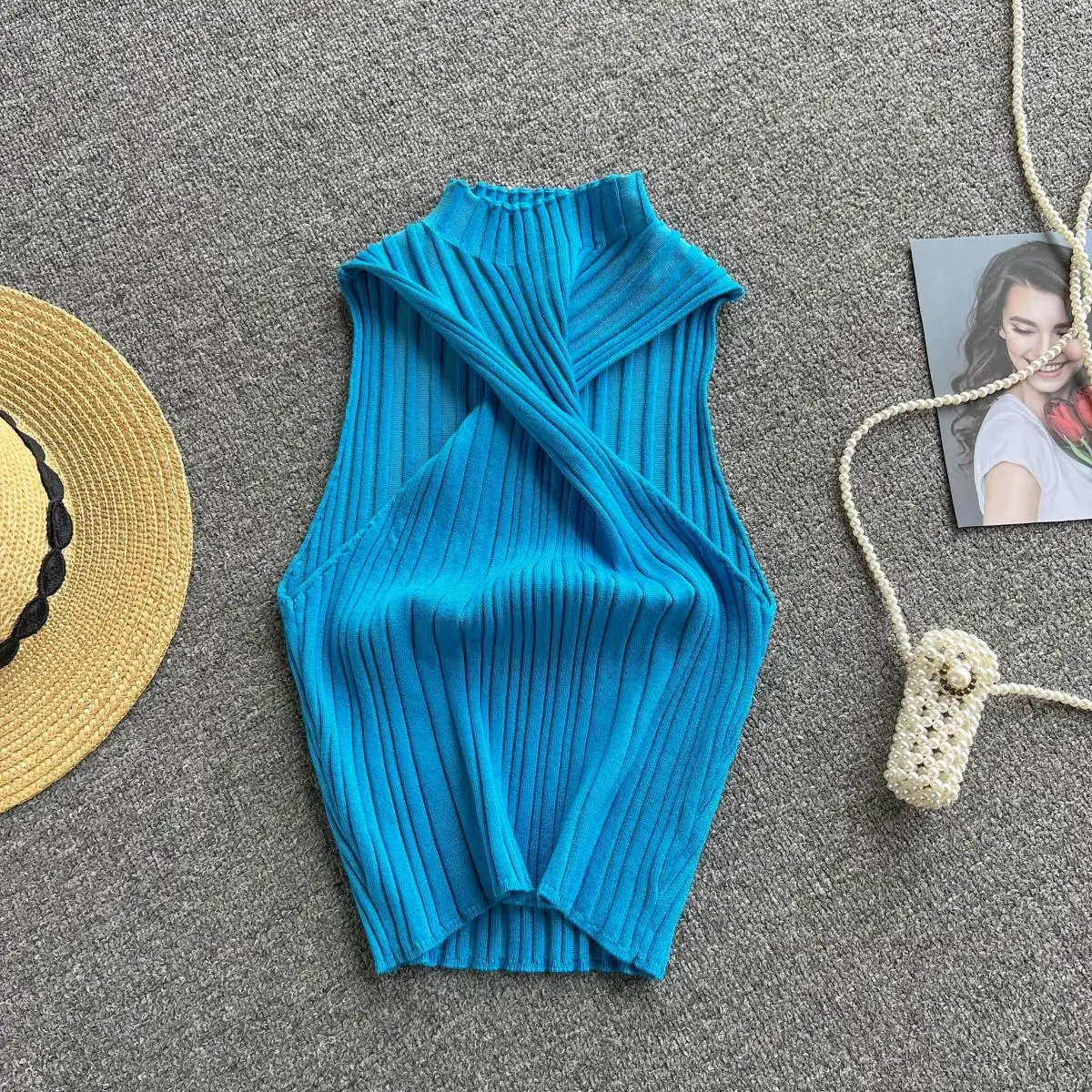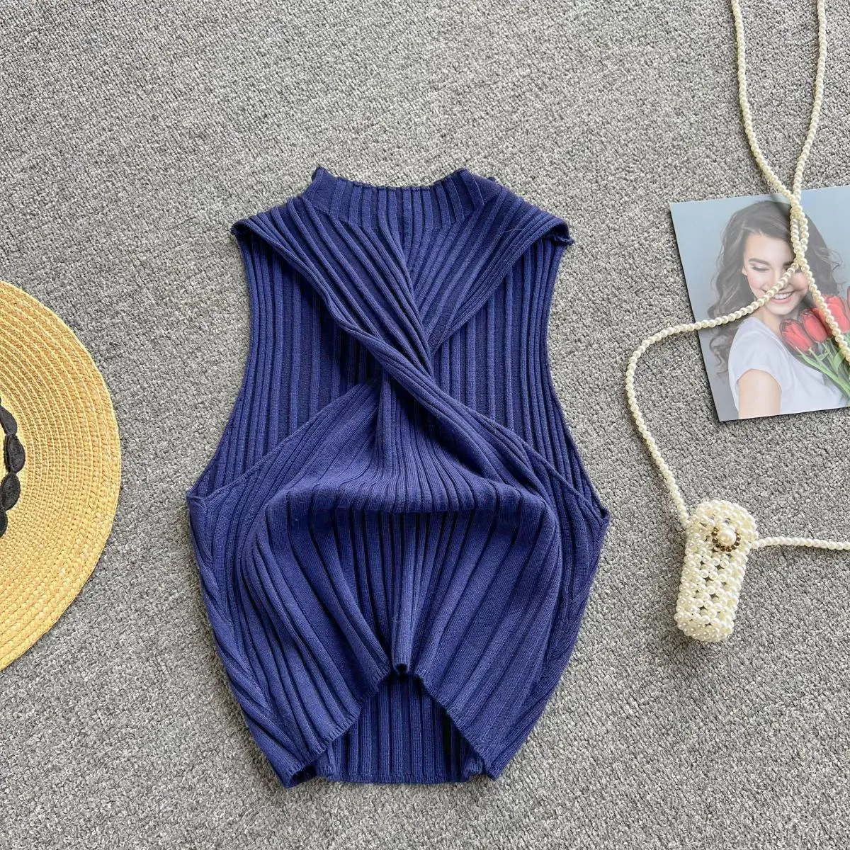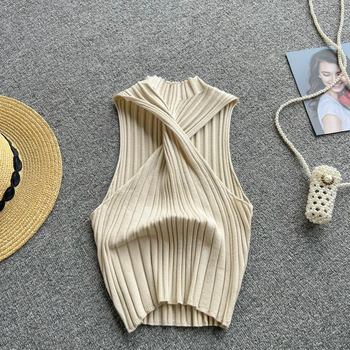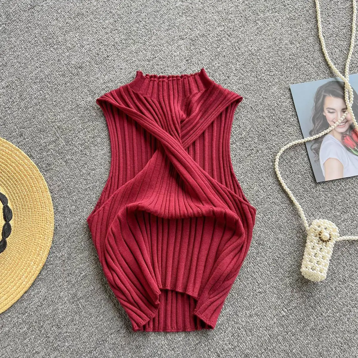 Sleeveless Top Relaxed Fit Slightly Banded Bottom Knit Vest