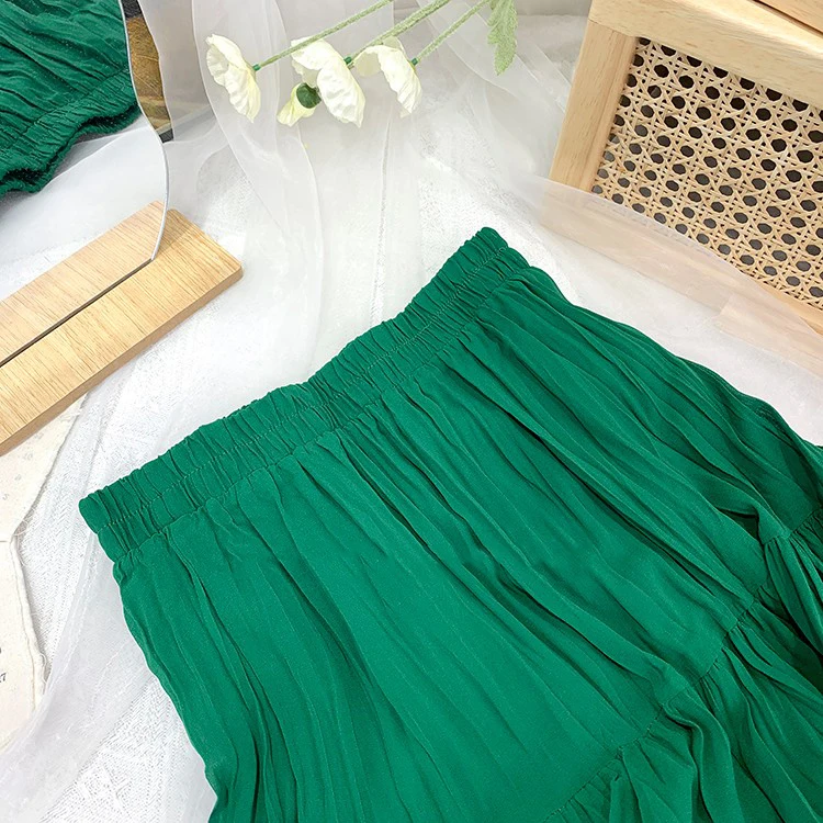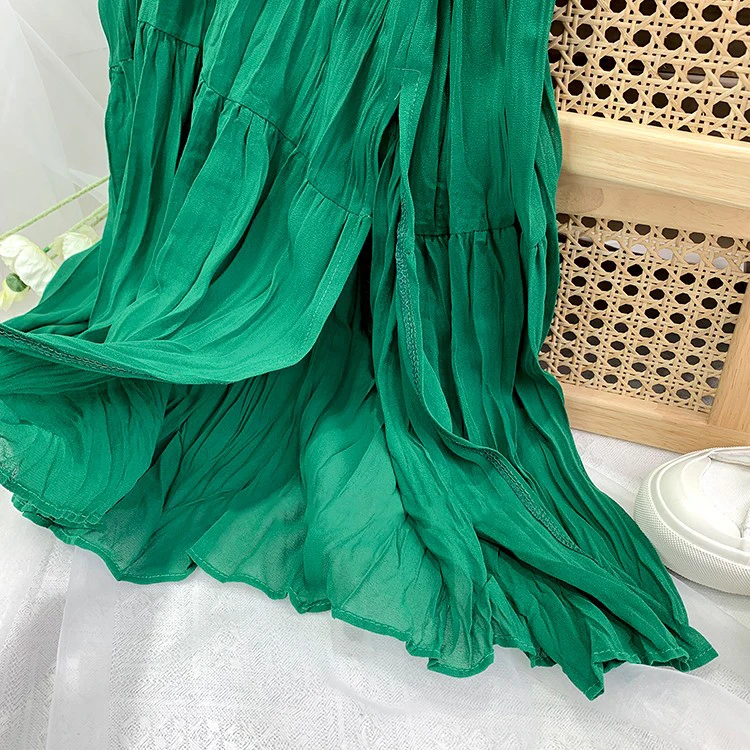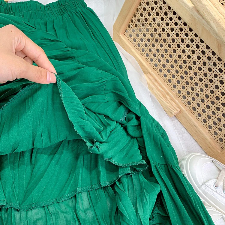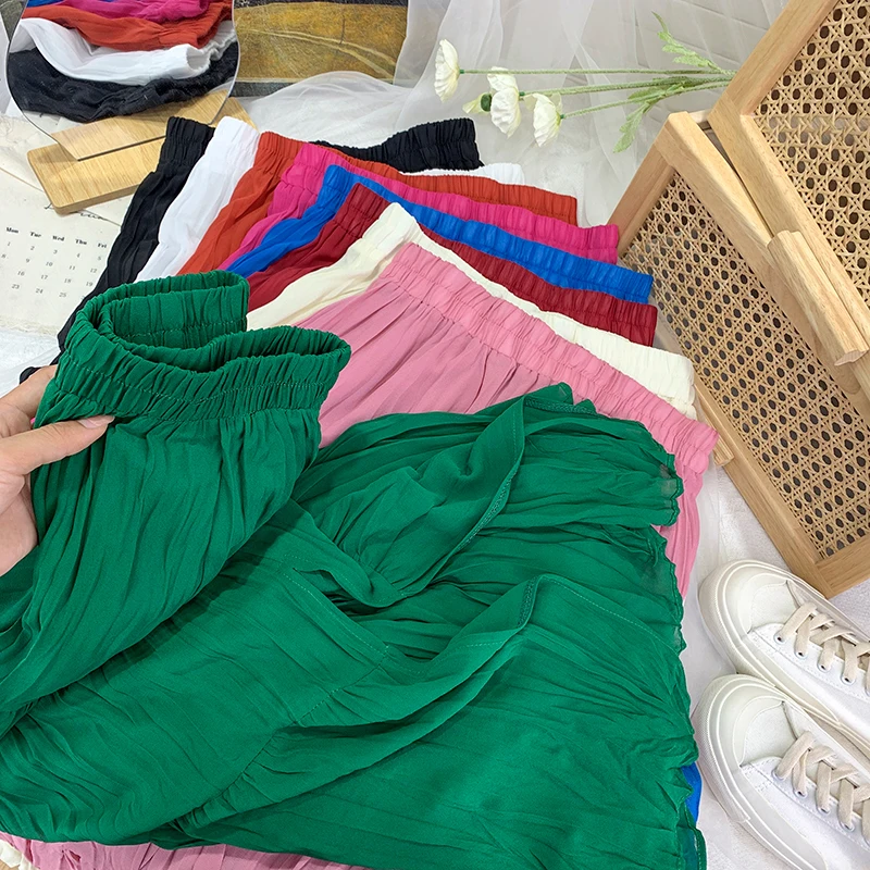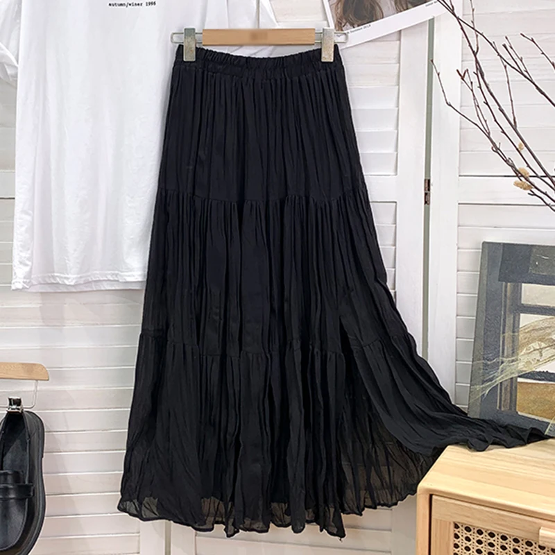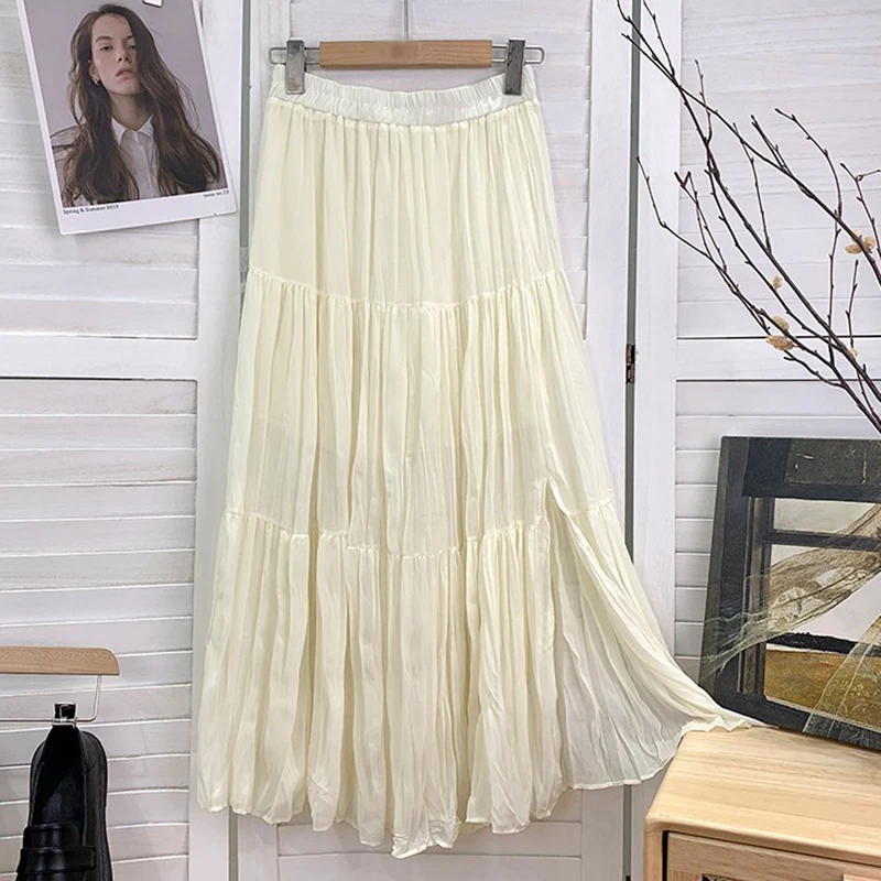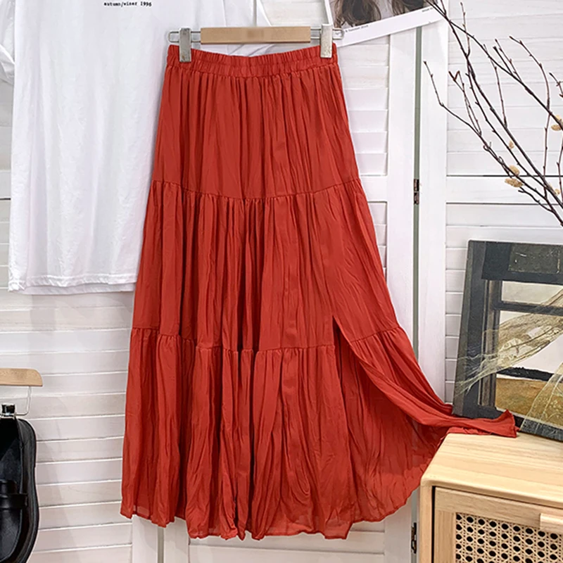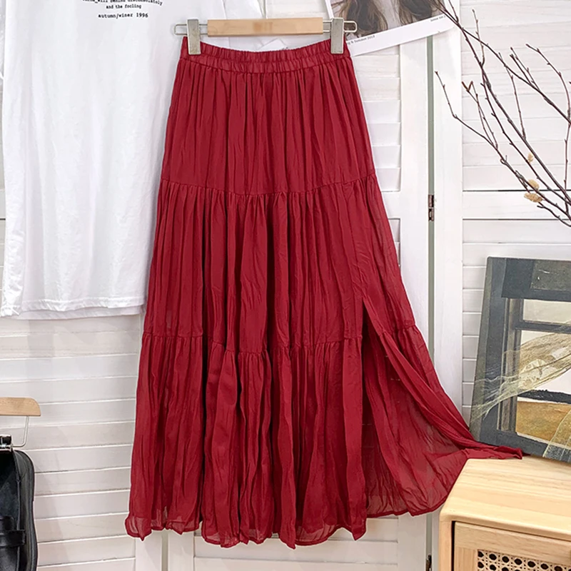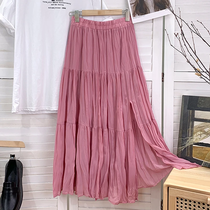 Slim Split Chiffon Long Maxi Skirts for Ladies Ruched Pure Color Irregular A-line Skirt Women 9 Colors Casual Korean Clothes