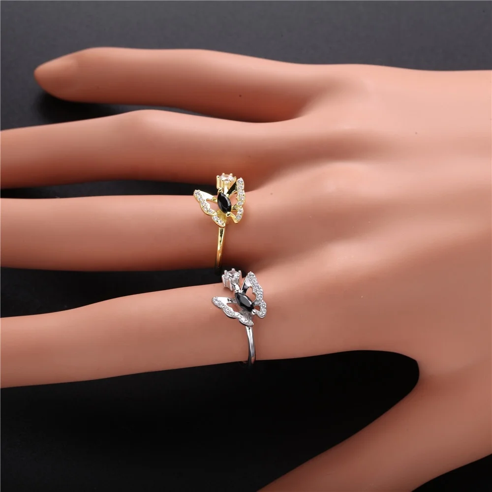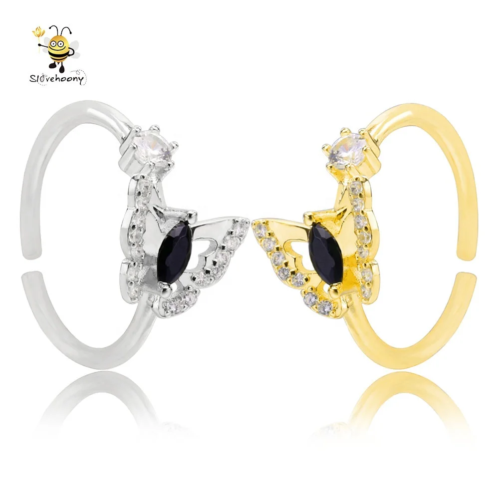 Slovehoony New Design Butterfly Ring Adjustable 100% 925 Sterling Silver Elegant Butterfly Gold Ring For Women Jewelry Gift
