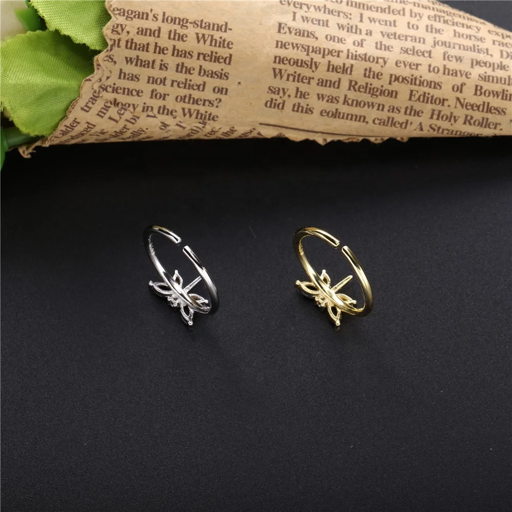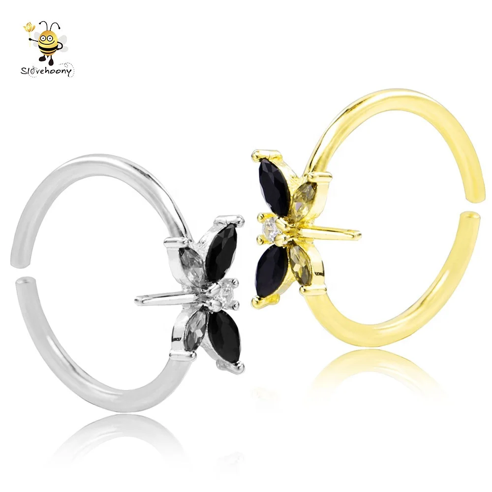 Slovehoony Fashion Cool Girl Dragonfly Ring Black Gemstone Wing 925 Sterling Silver CZ Open Ring For Women Jewelry Gift Hip Hop