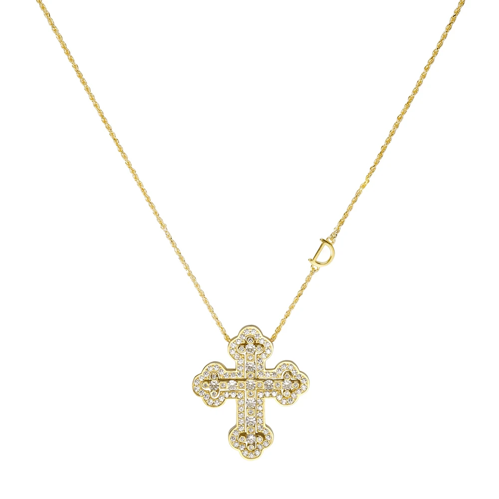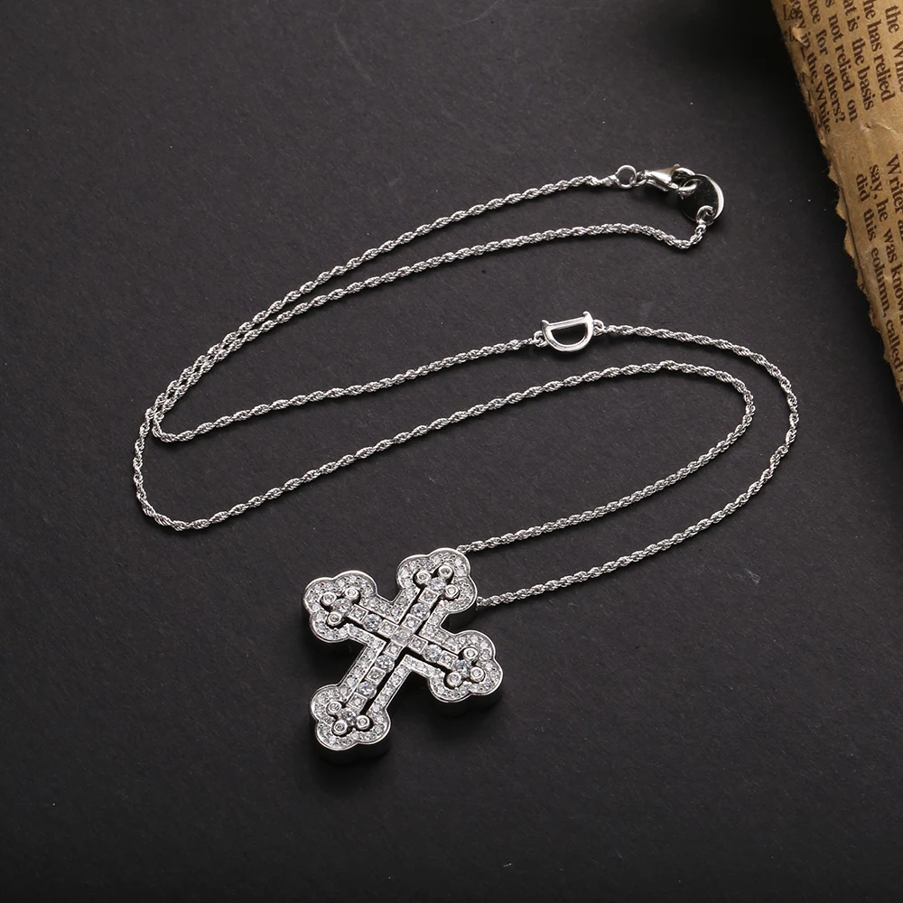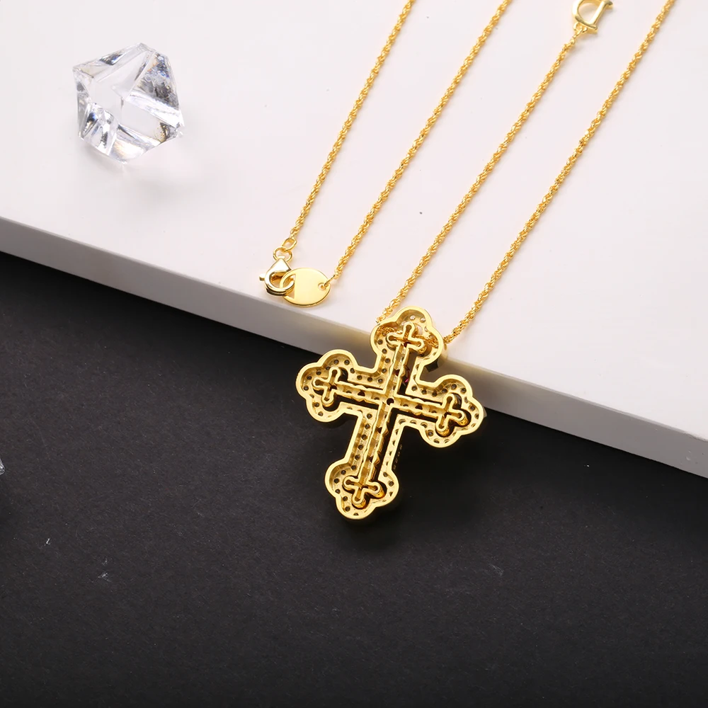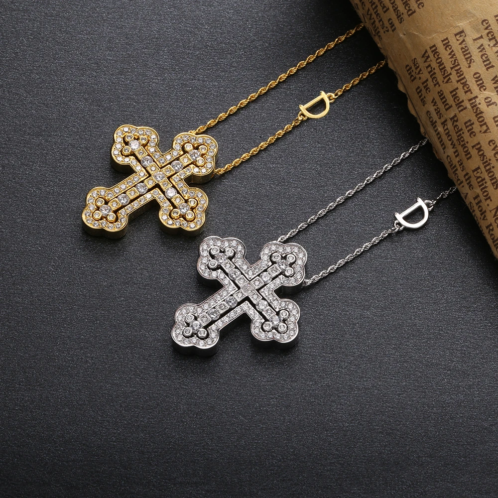 Slovehoony S925 Sterling Silver Big Double Faith Cross Necklace Move Letter D Chain Zircon Kolye Gold 24K NecklaceFor Women