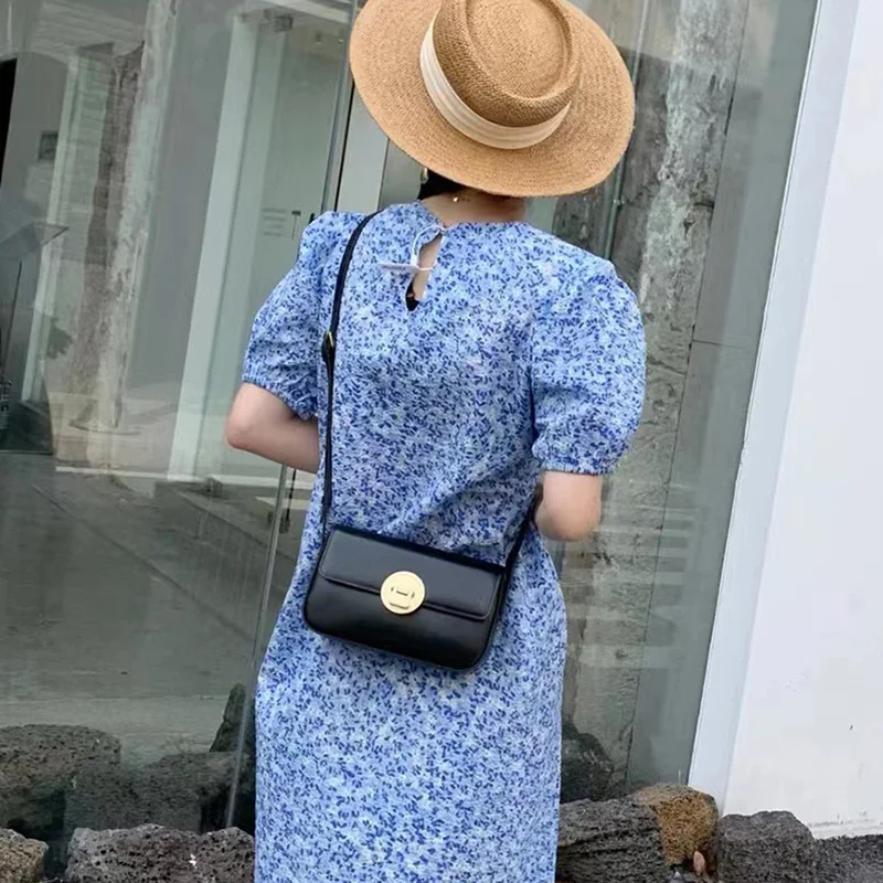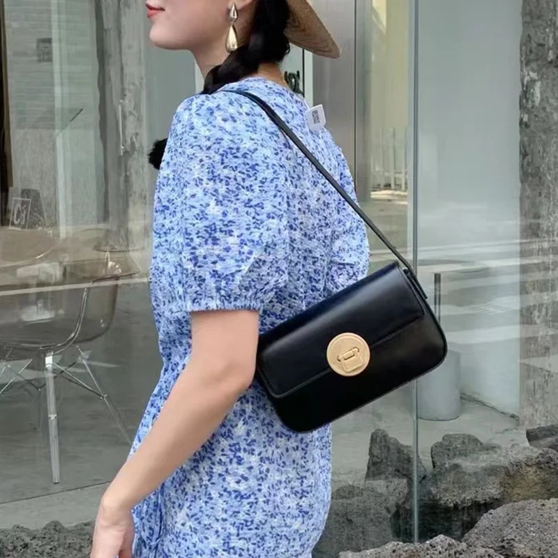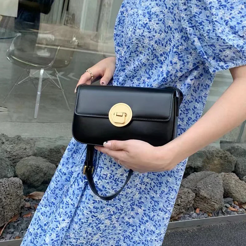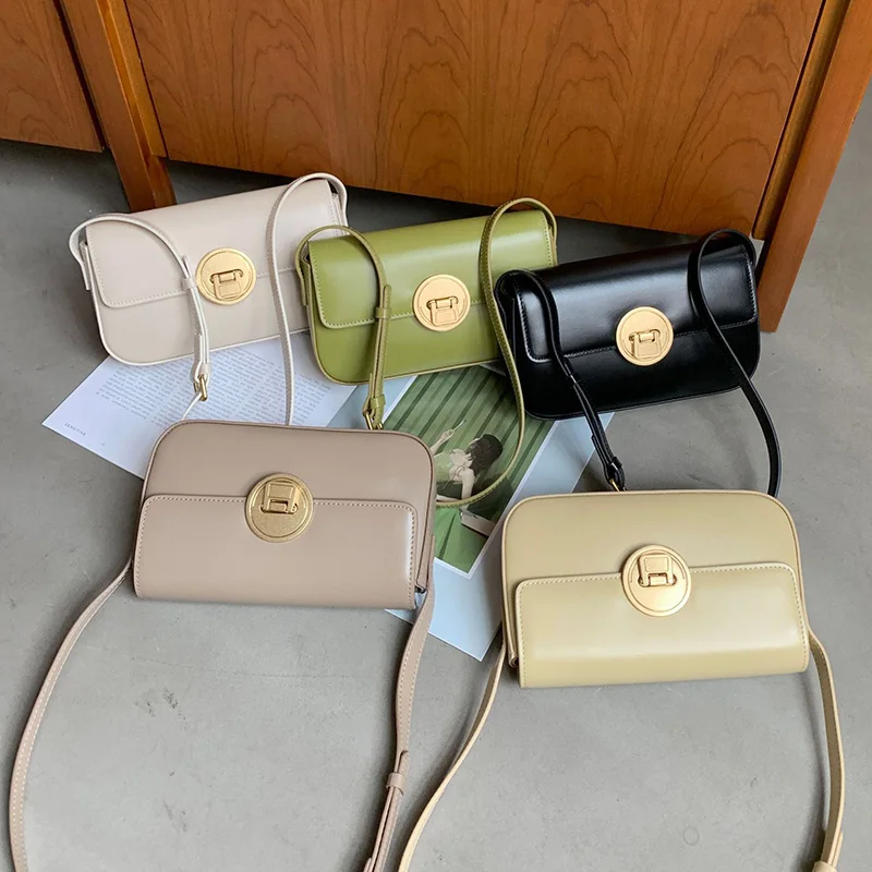 Solid Color Crossbody Bag Ladies Genuine Leather Classy Single Shoulder Bag