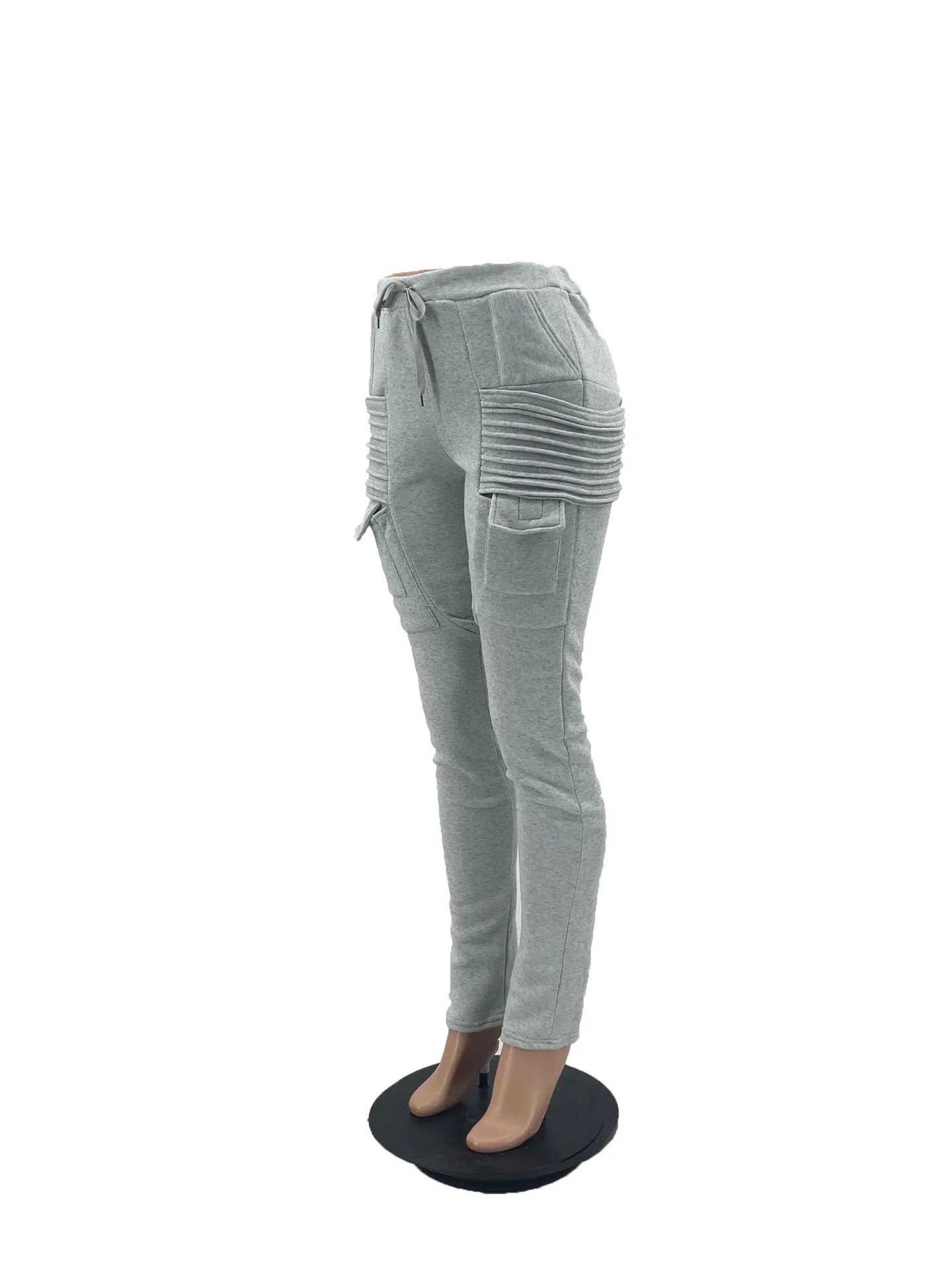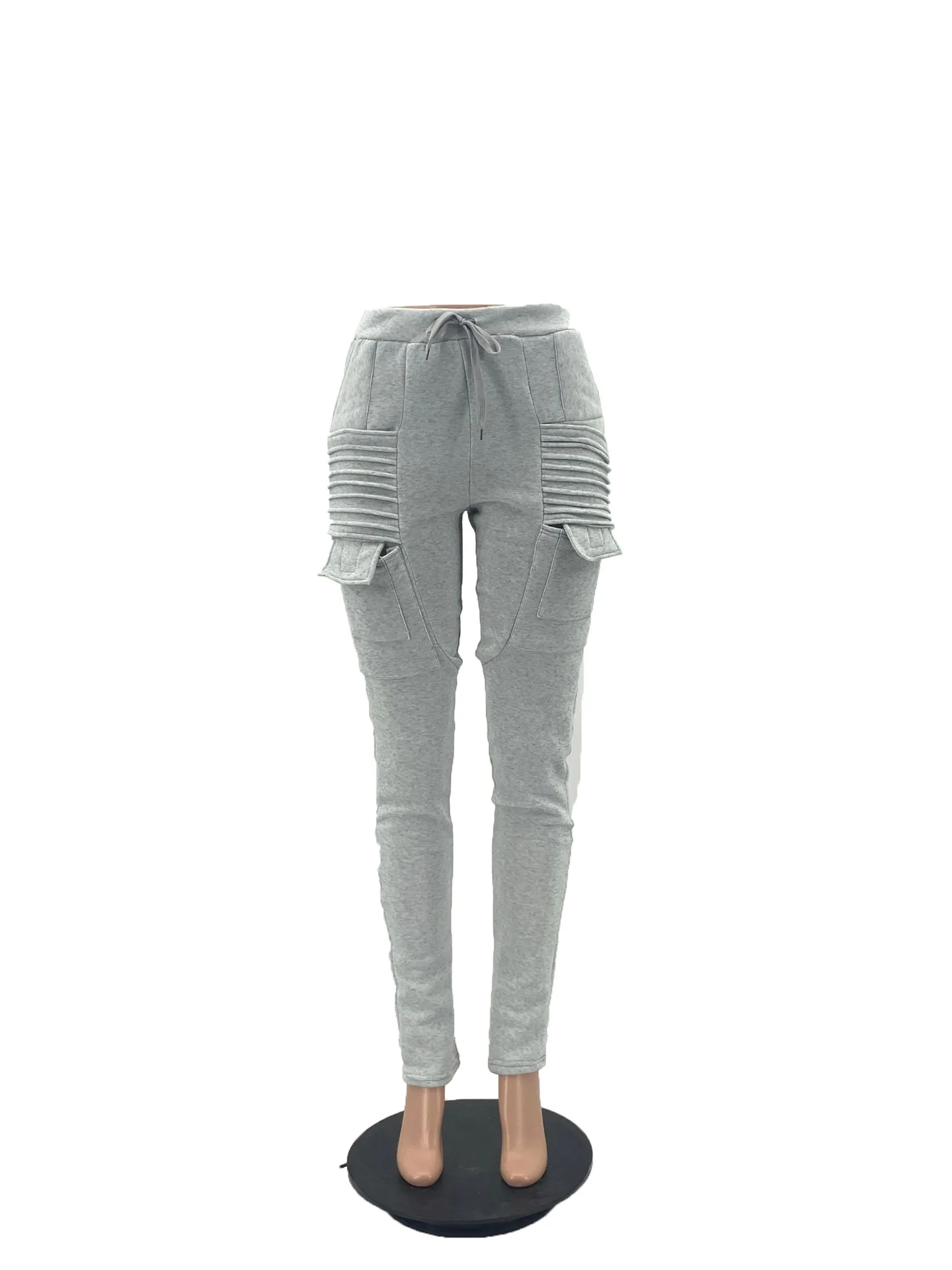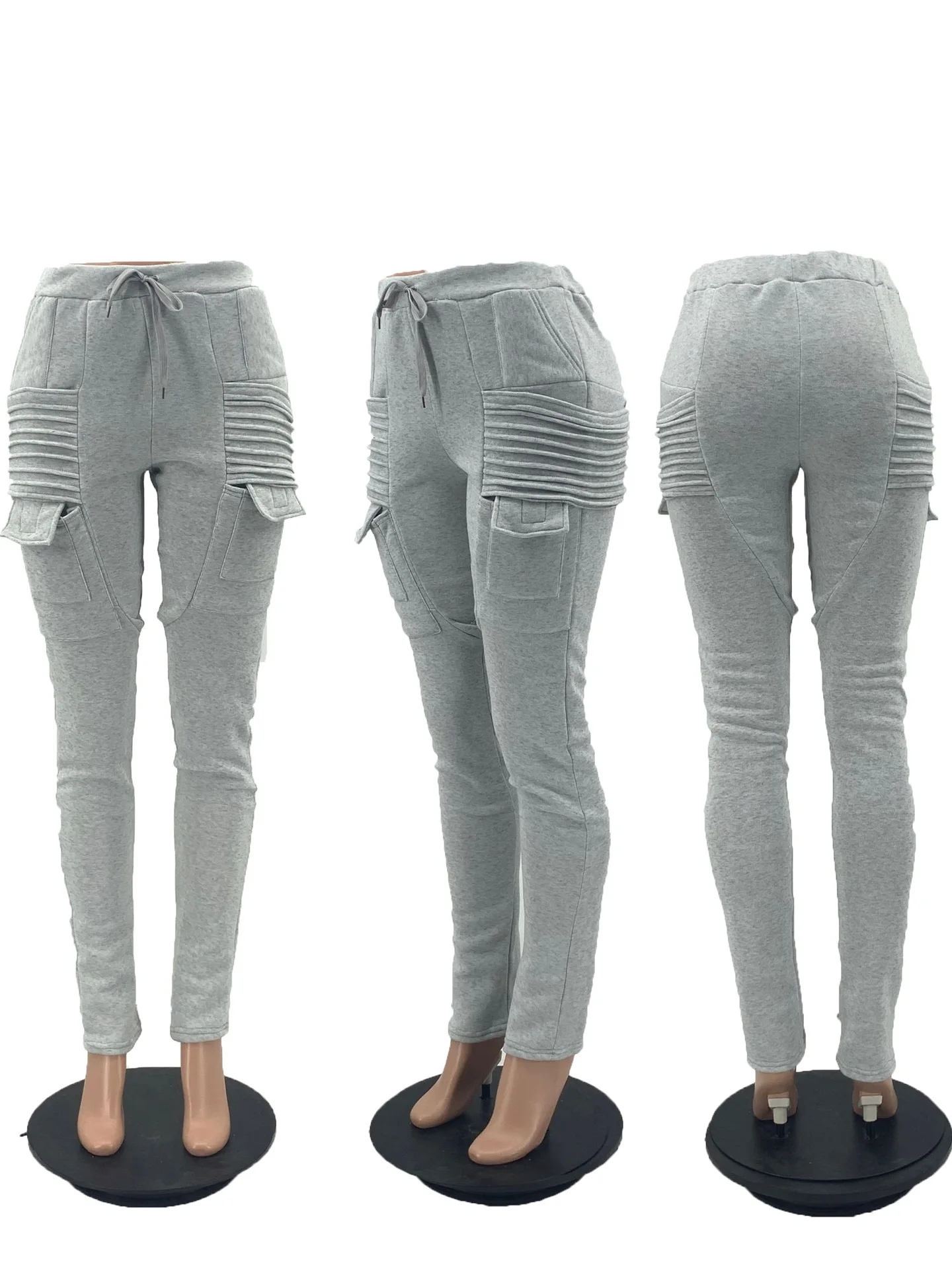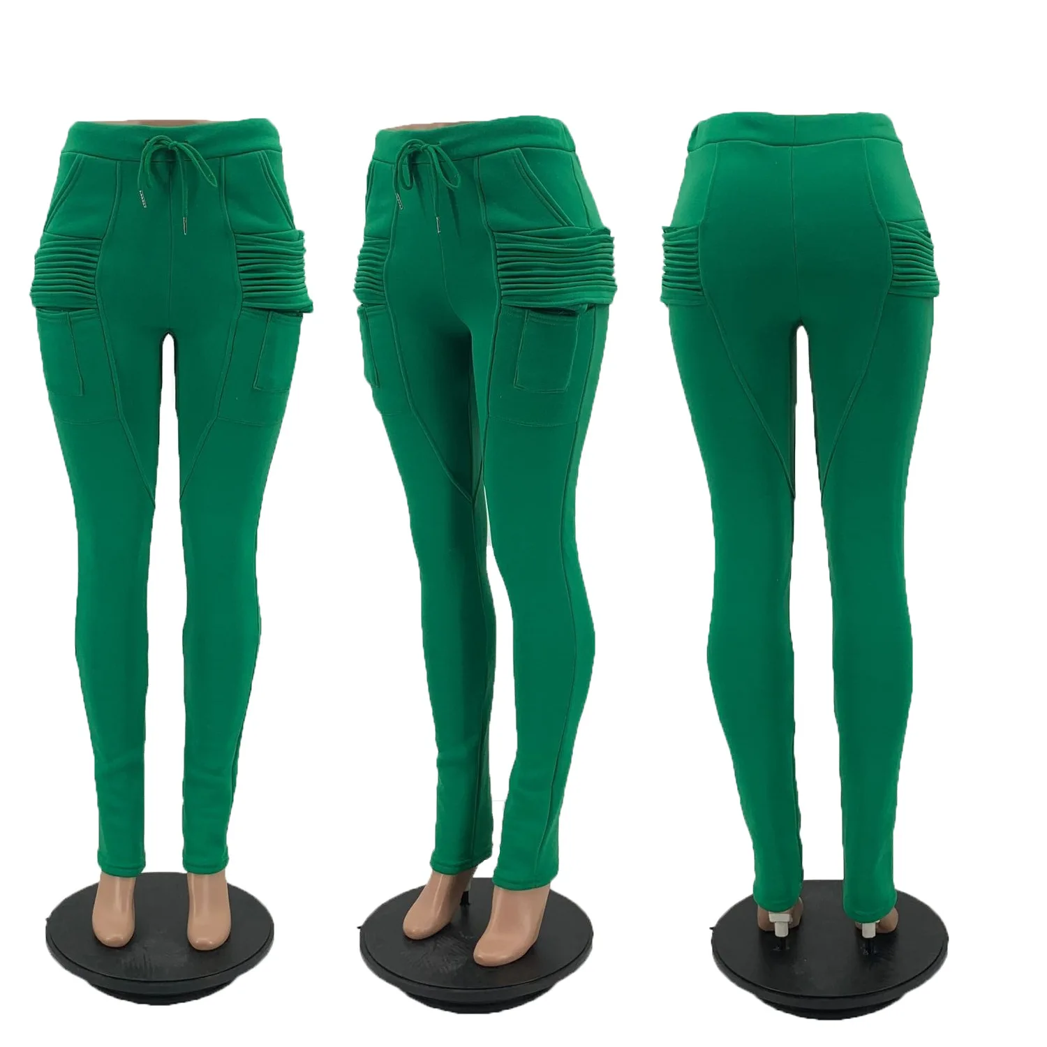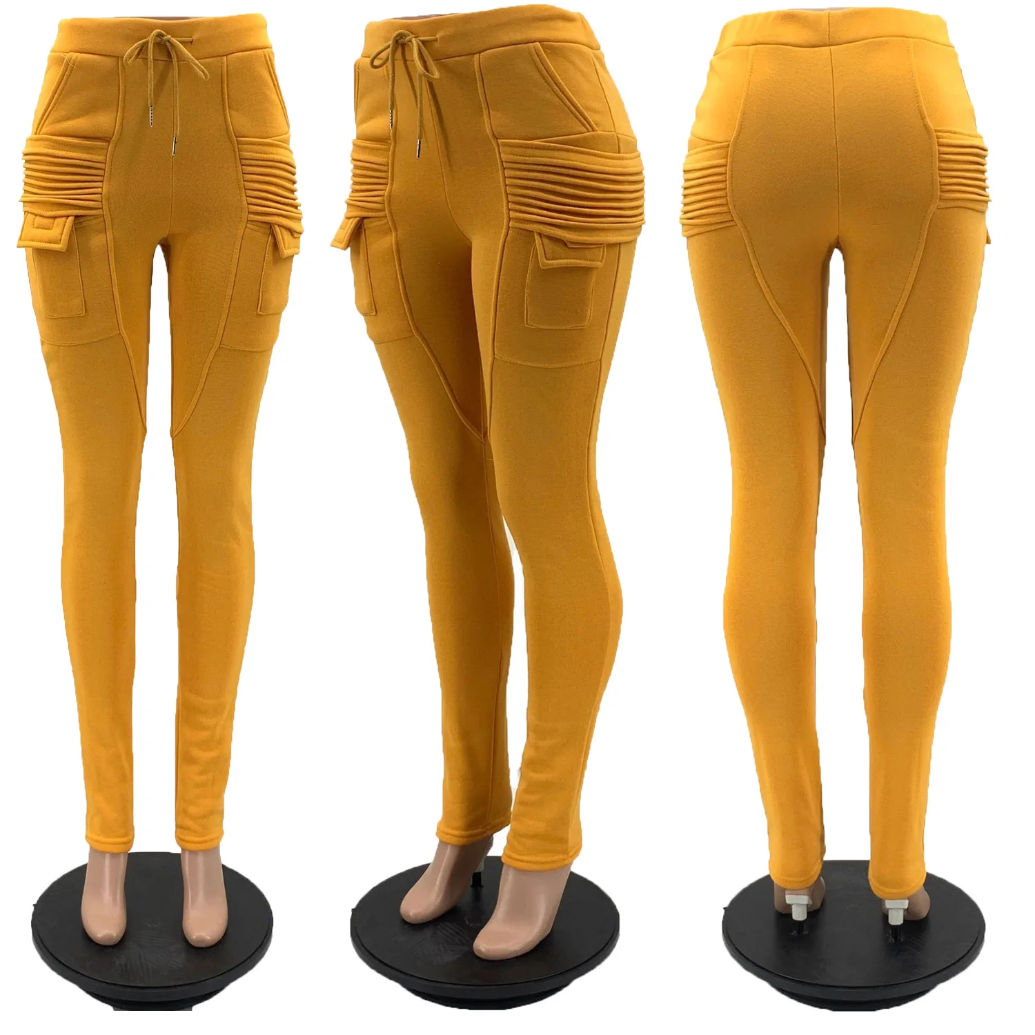 Solid color pocket pants Stretch women's casual pants women's fashion drawstring trousers Y2K ladies fall women pants&trousers for