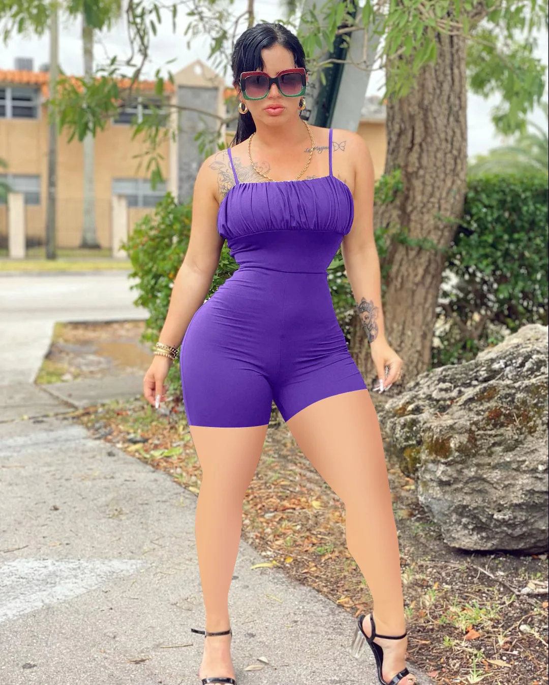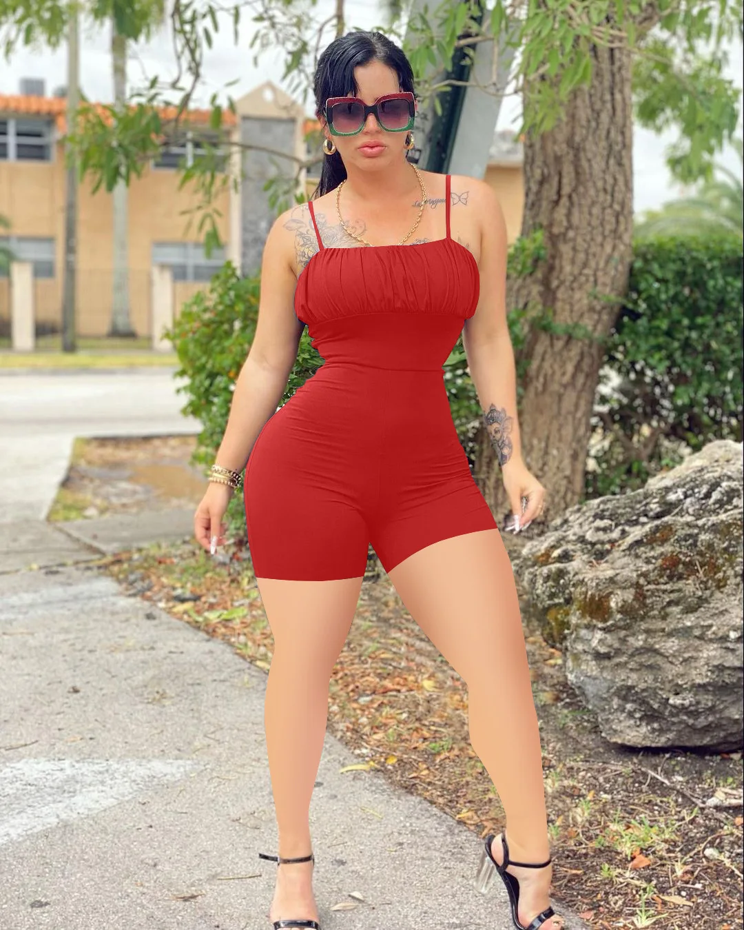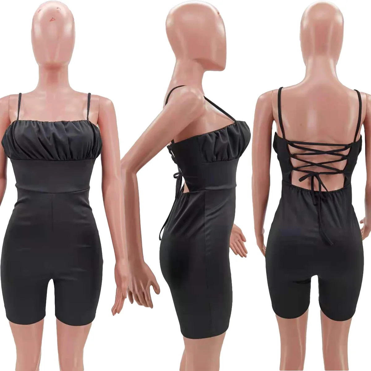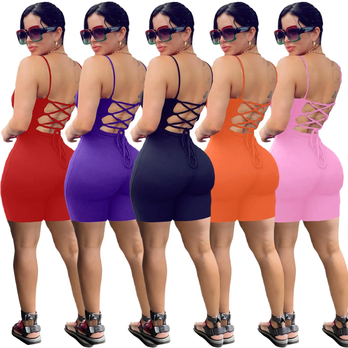 Solid Color Summer Backless Sling Rompers Womens One Piece Jumpsuit Bodycon Sexy Club Wear Short Bodysuit