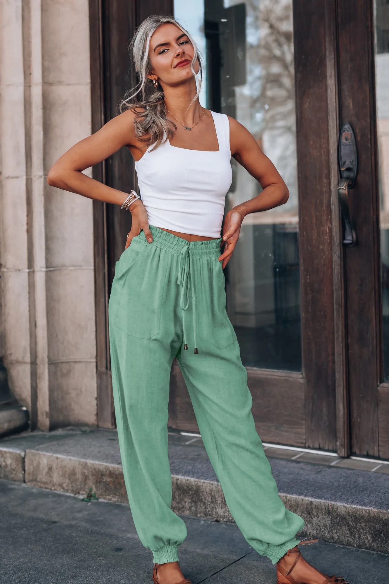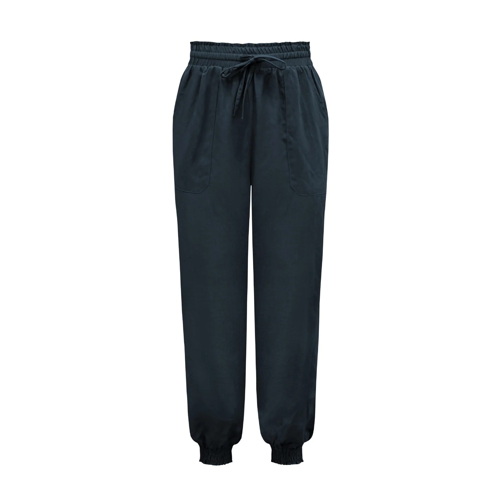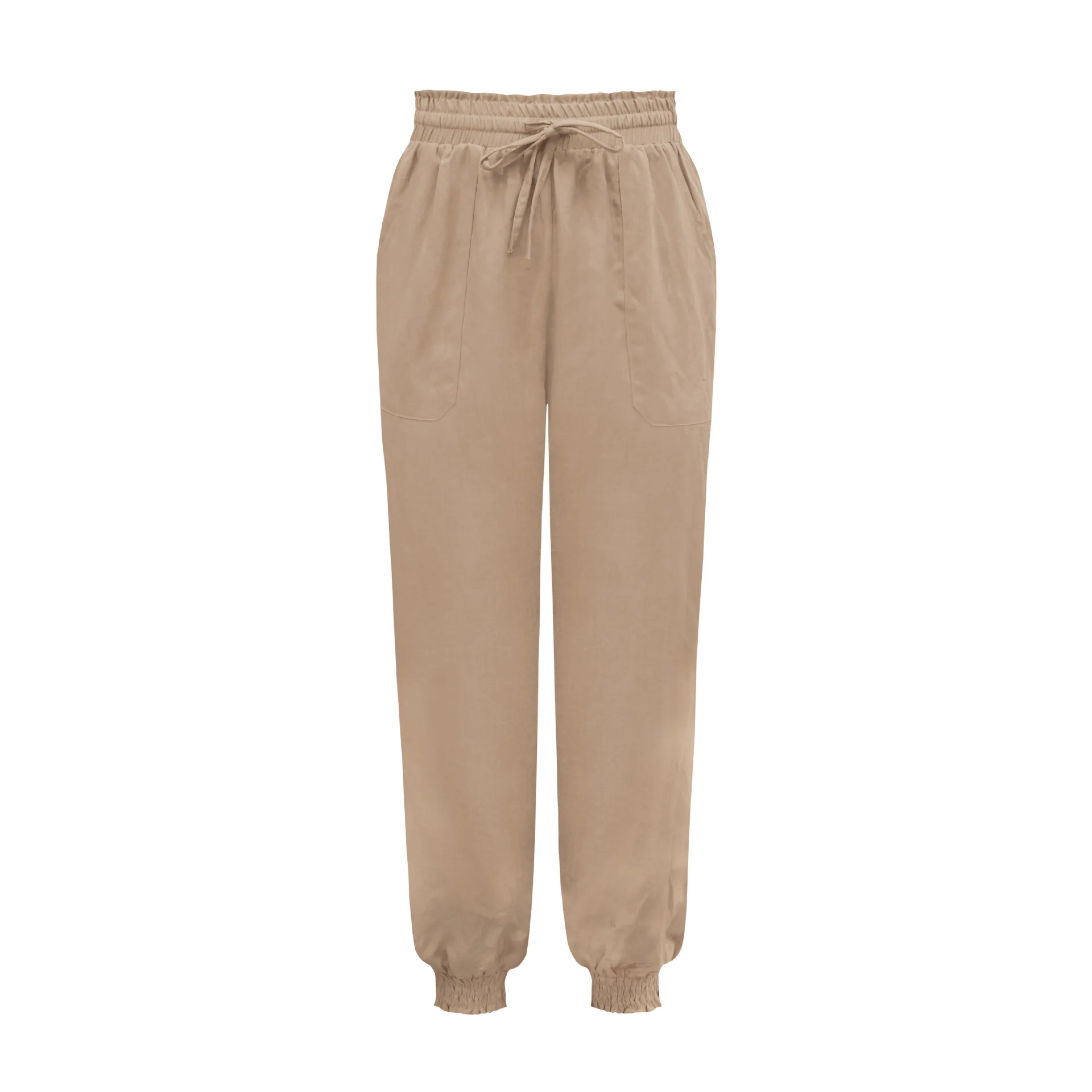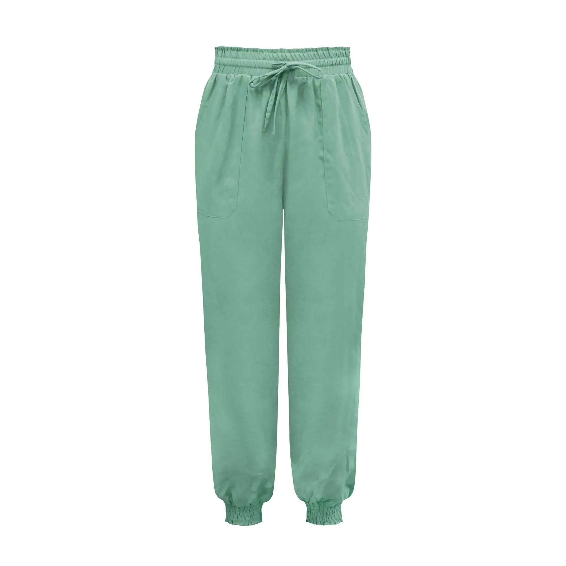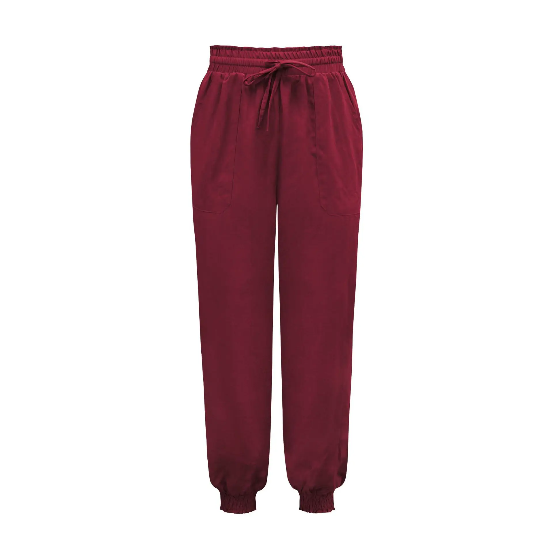 Solid Rayon Casual Long Pants Fashion Drawing String Women Trousers Elastic Harem Pants