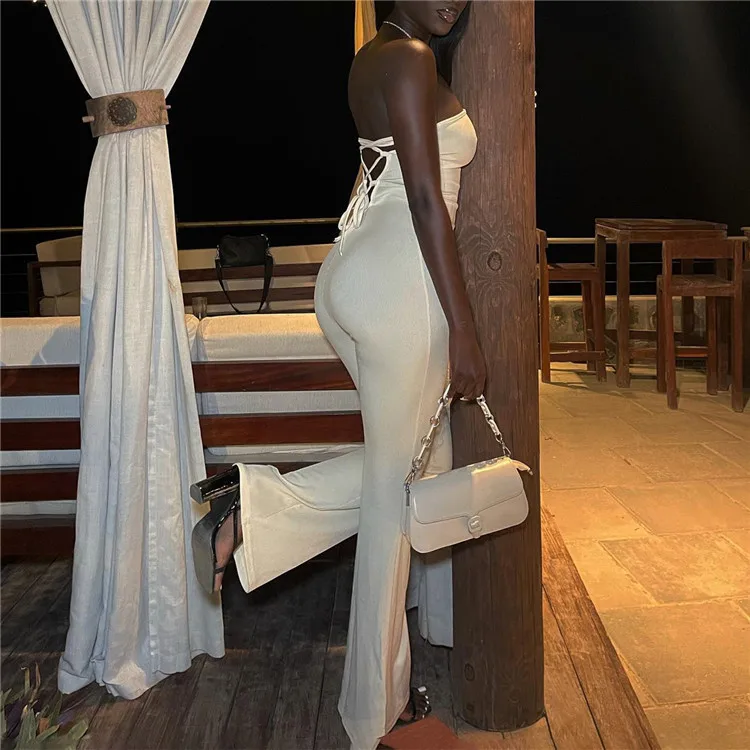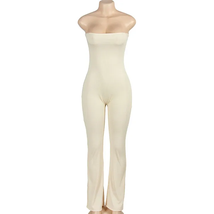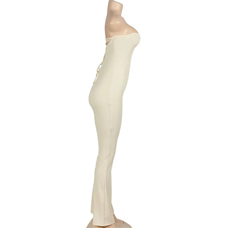 Solid Strapless Backless High Waist Flared Pants Playsuit Women Casual Slim Jumpsuit