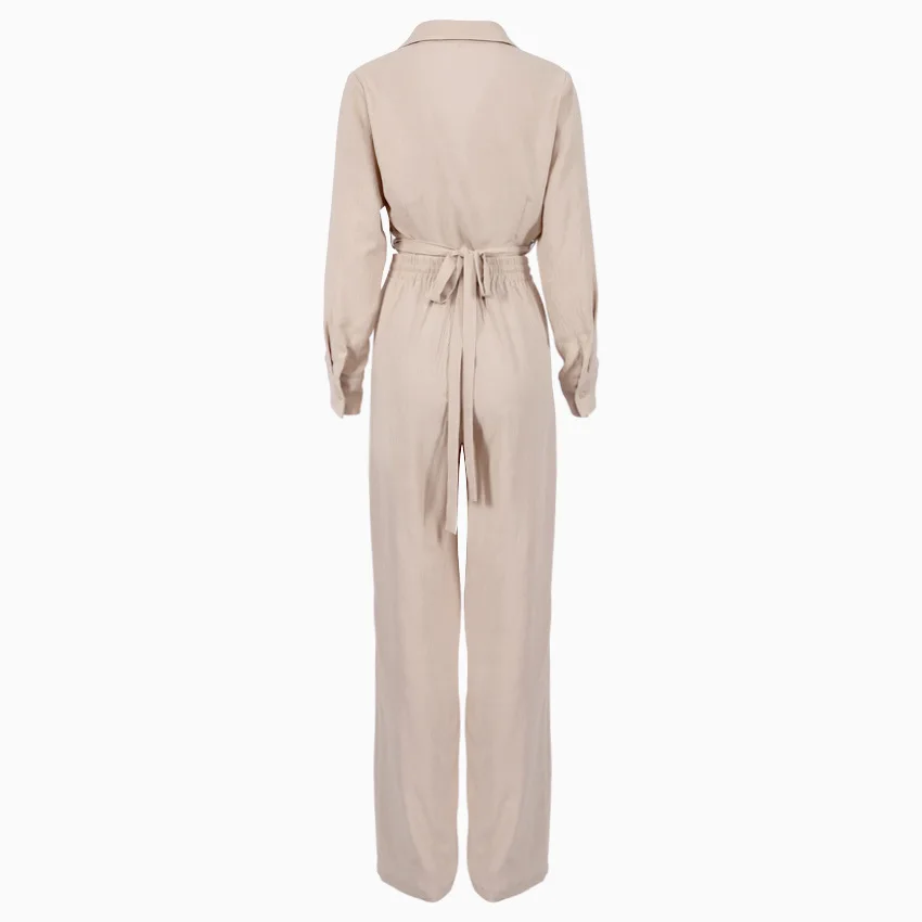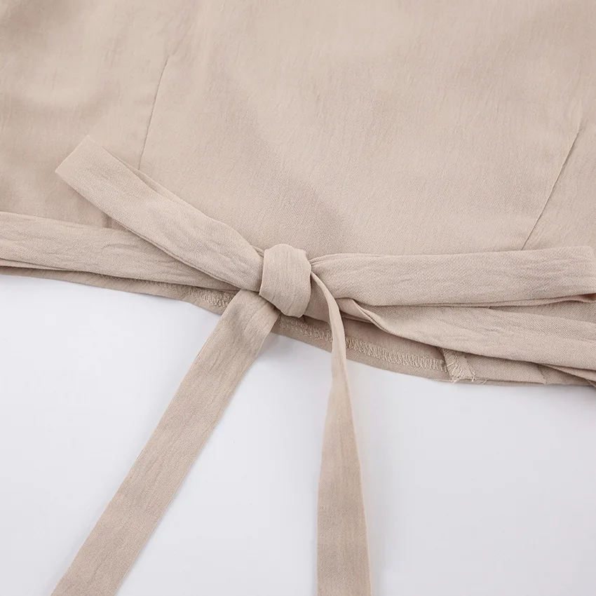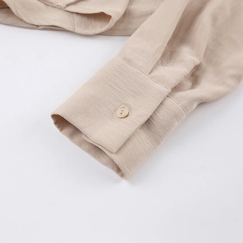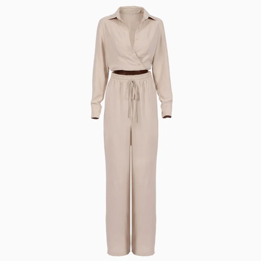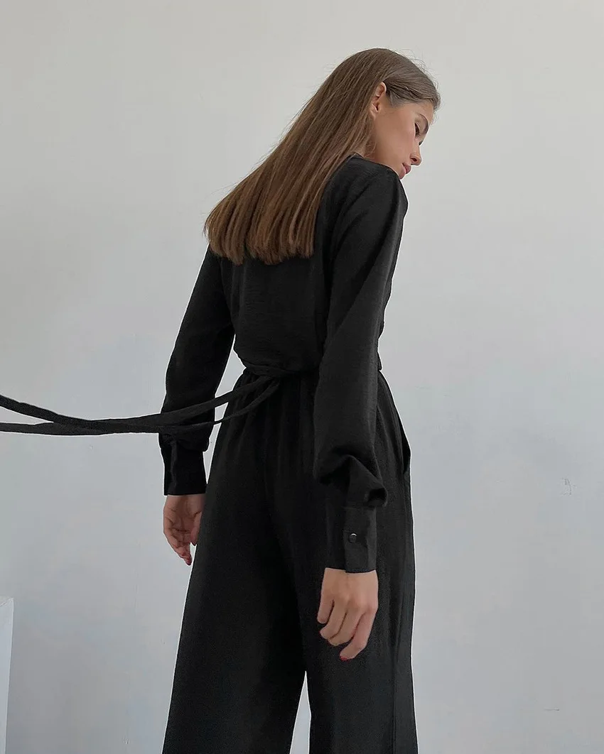 Solid Women's 2 Piece Outfits Button Down Long Sleeve V Neck Strappy Blouse Shirt and Pants Set with Pocket