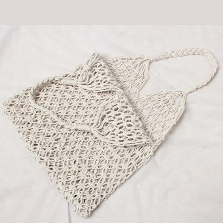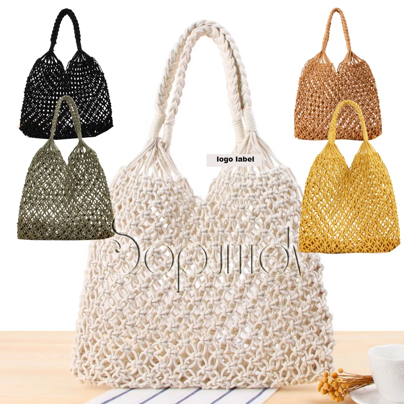 Sopurrrdy Wholesale Fashion Straw Indonesia Mesh Clutch Cotton Beach Tote Bag Shopping Tote Net Rattan Tote Bag with Handle