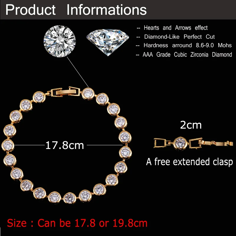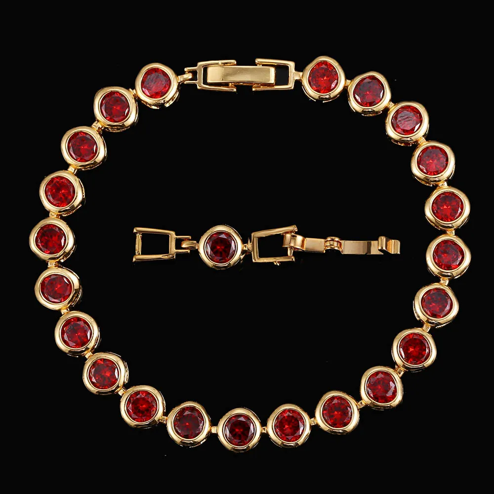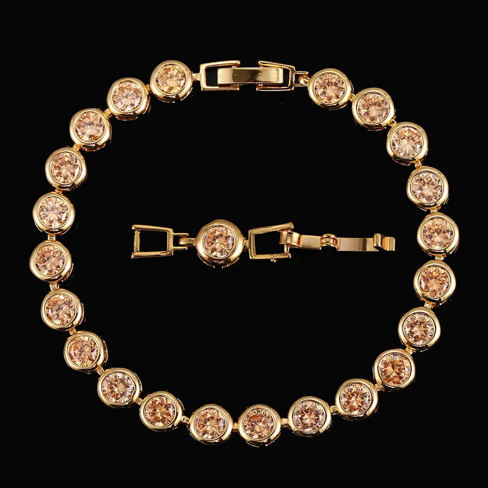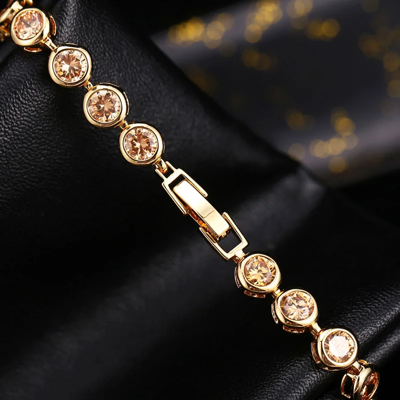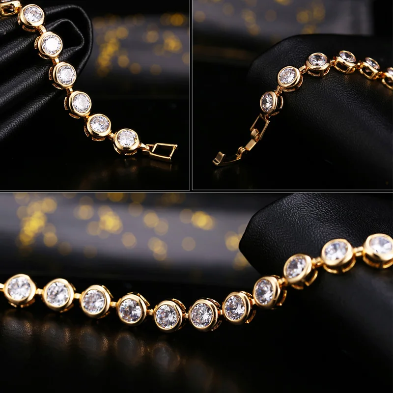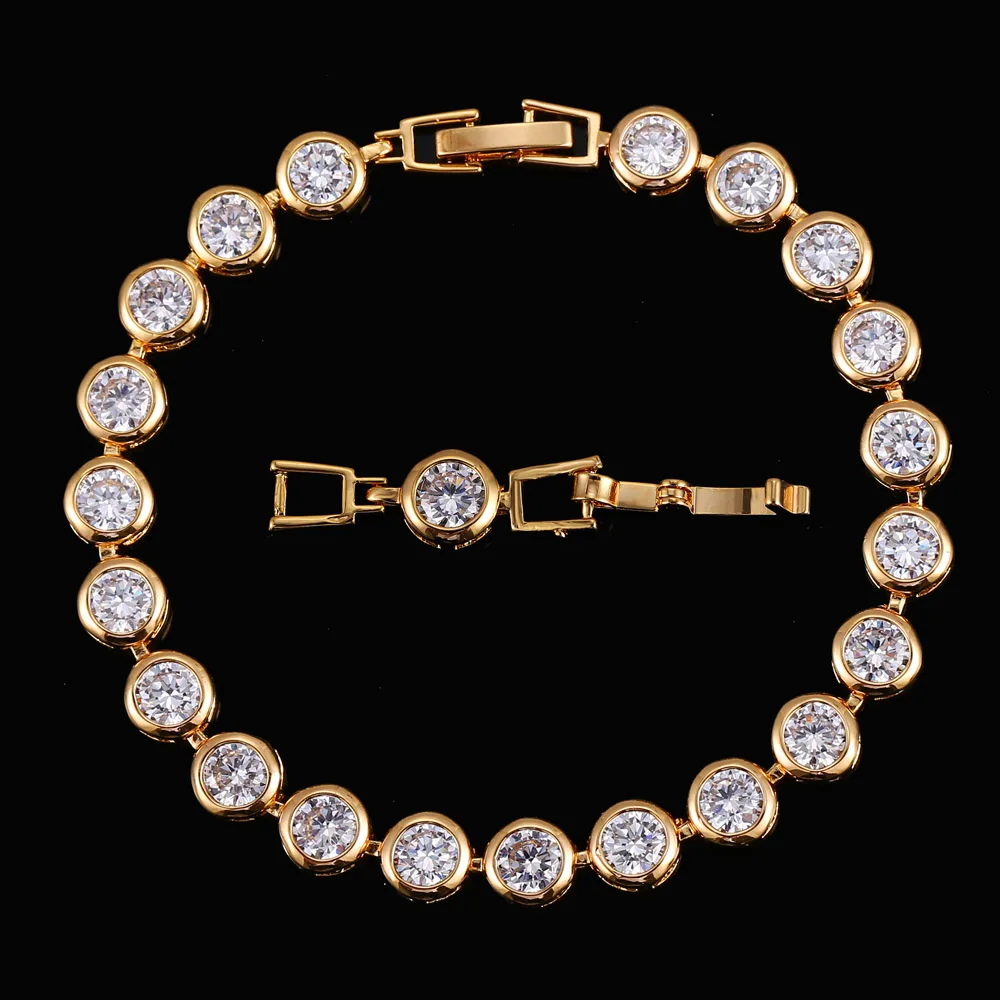 Sparkling White Cubic Zirconia 18k Gold Filled Chain Link Bezel Setting Round Tennis Bracelet for Women CZ Jewelry