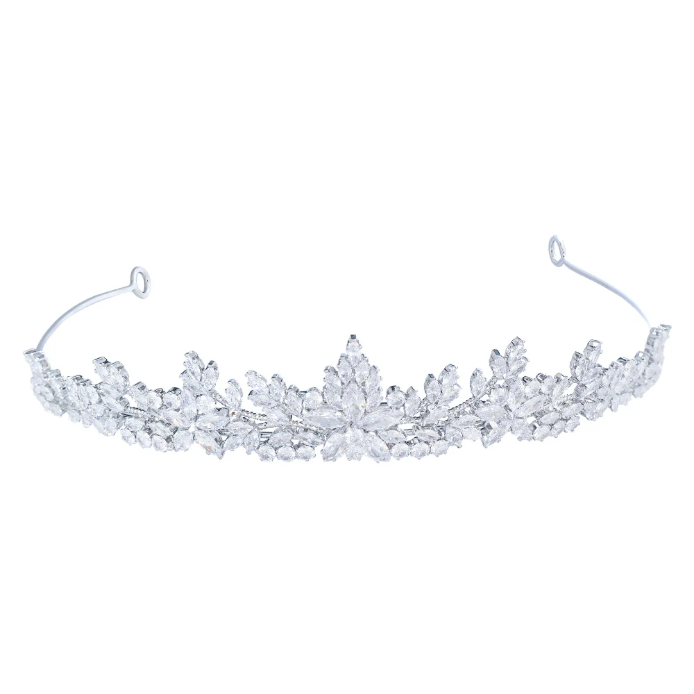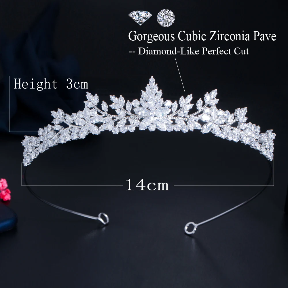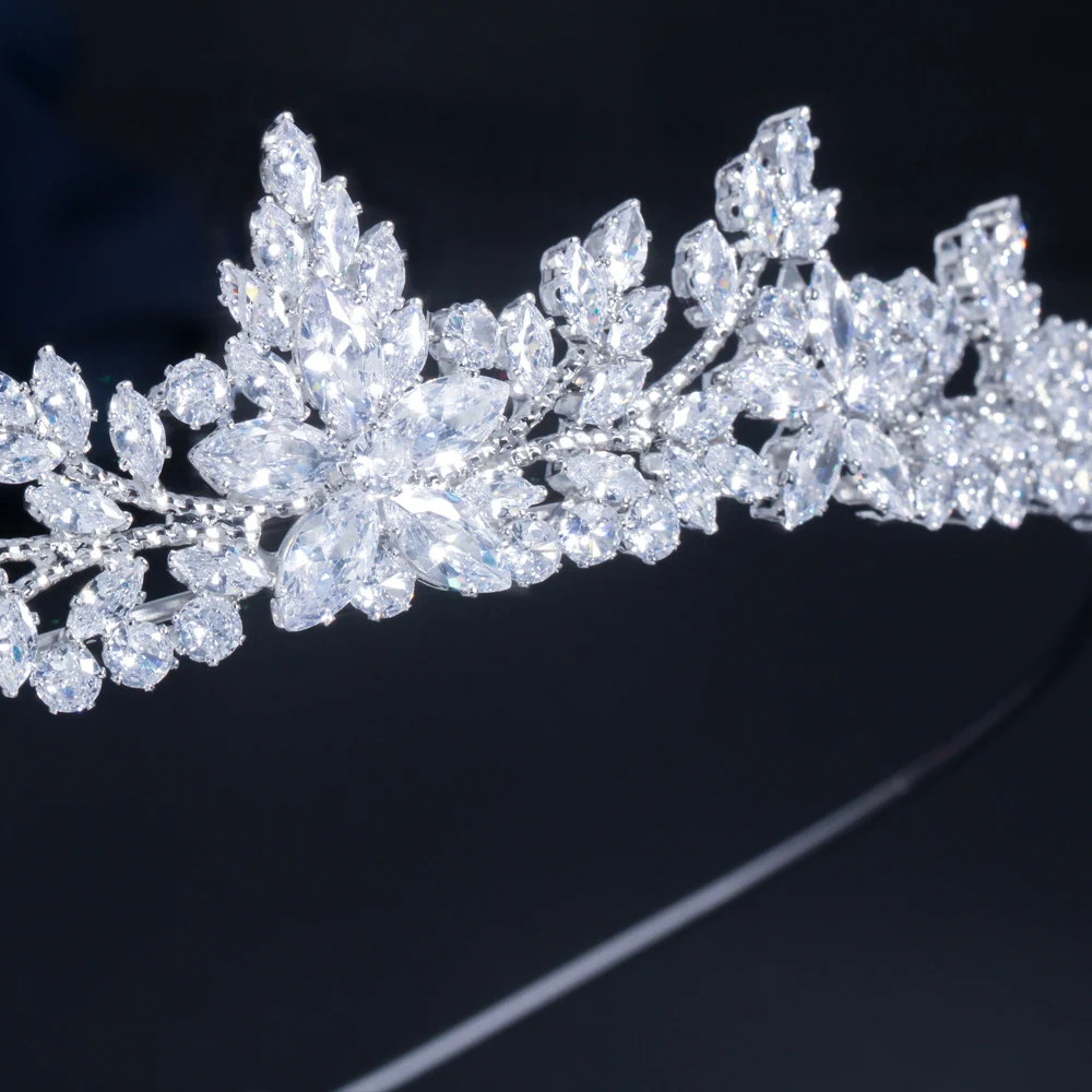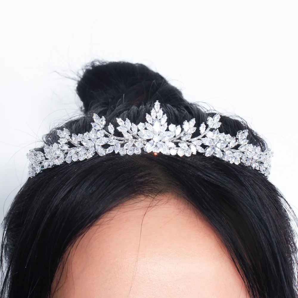 Sparkling White Cubic Zirconia Elegant Flower Queen and King Crowns Tiaras Wedding Hair Accessories Jewelry for Brides