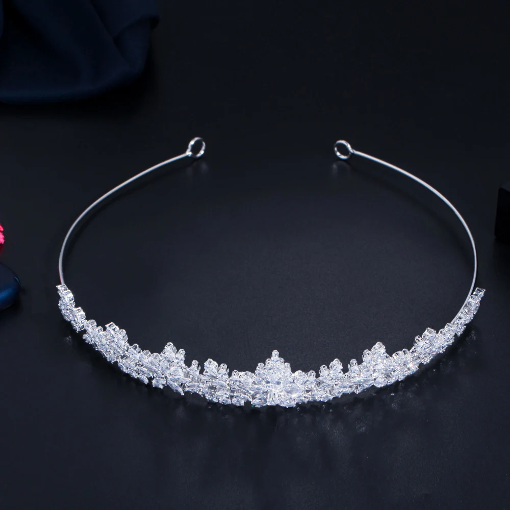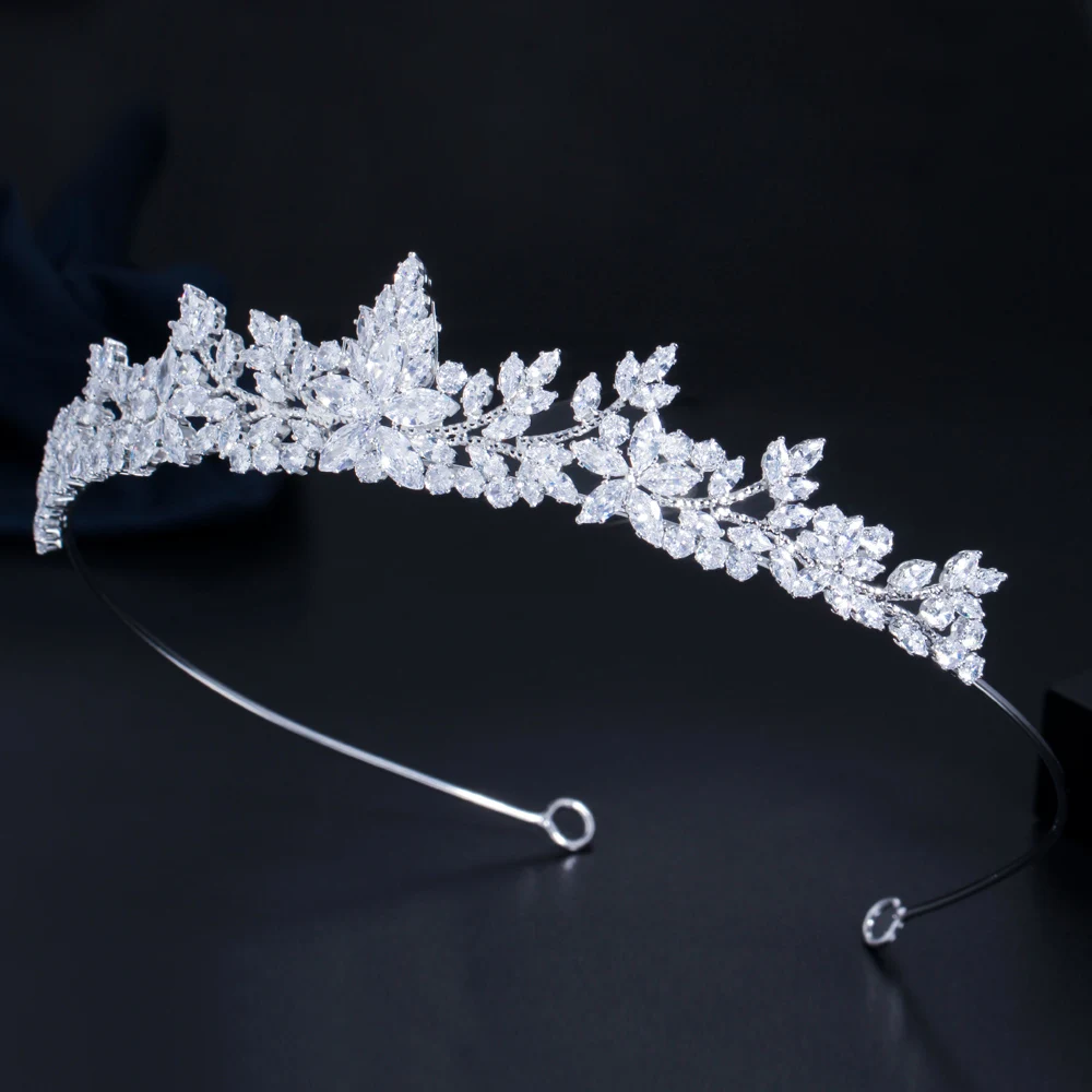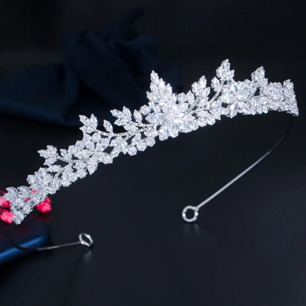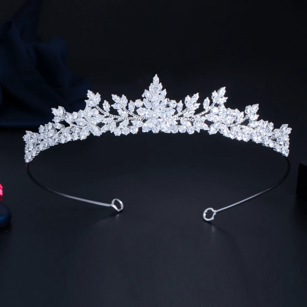 Sparkling White Cubic Zirconia Elegant Flower Queen and King Crowns Tiaras Wedding Hair Accessories Jewelry for Brides