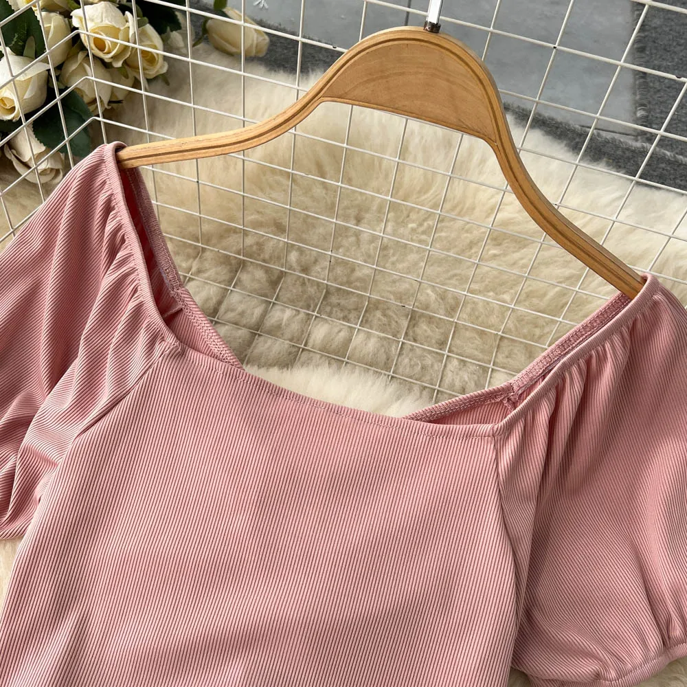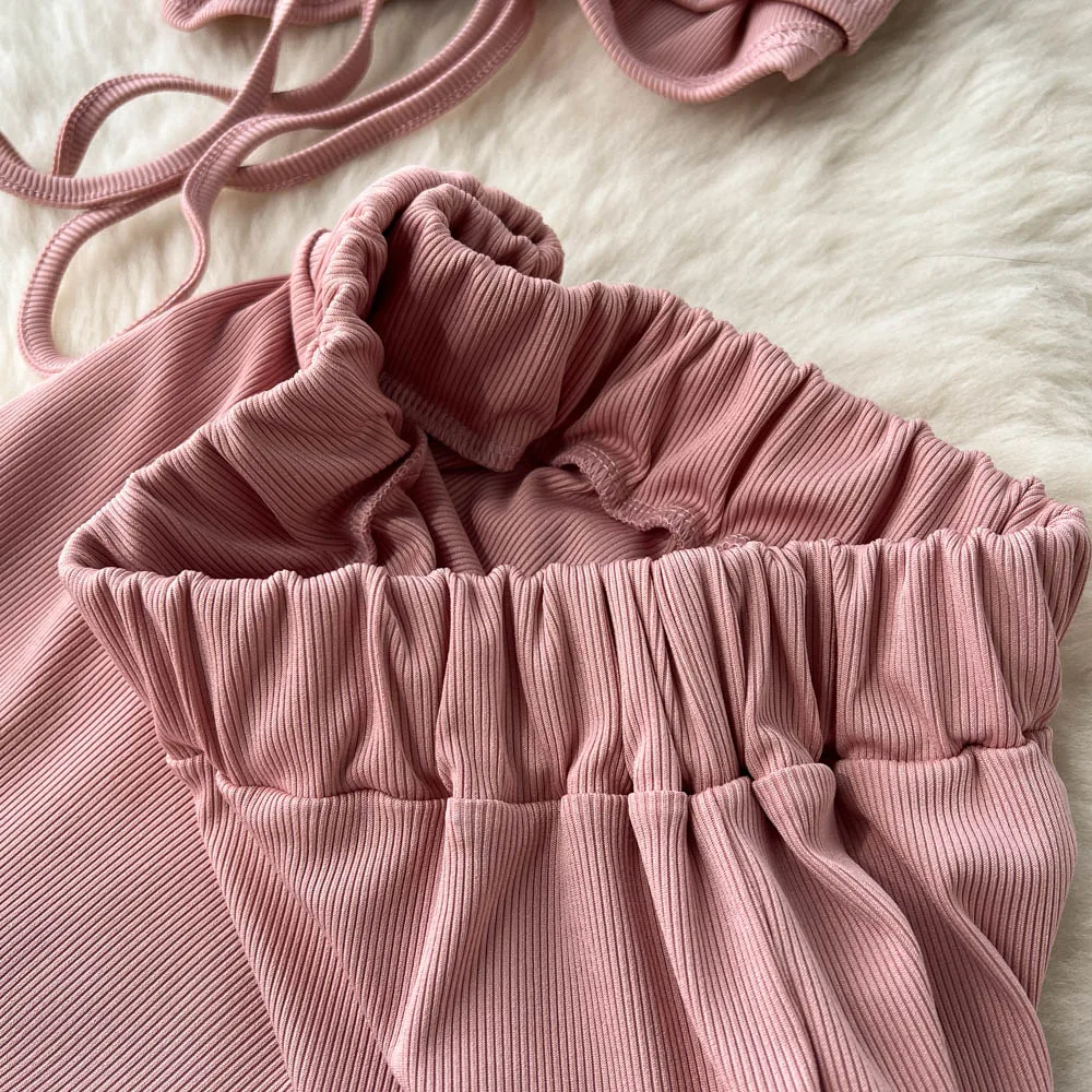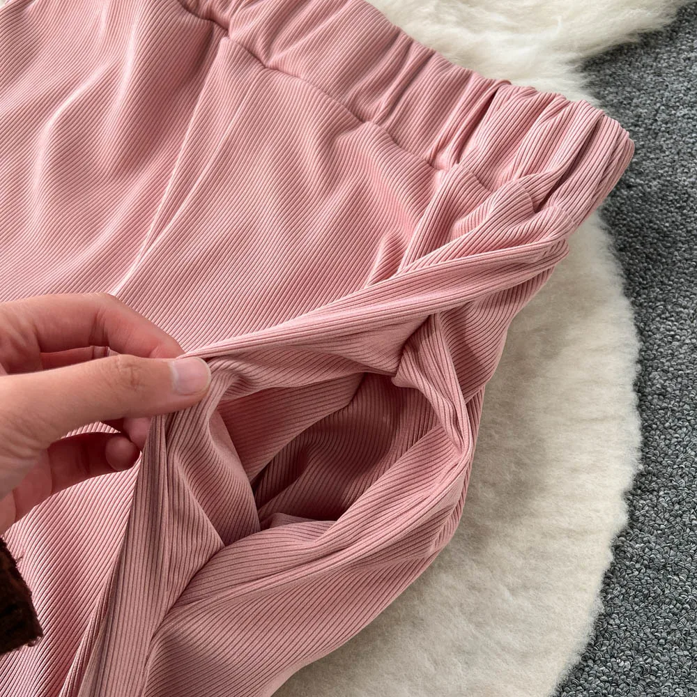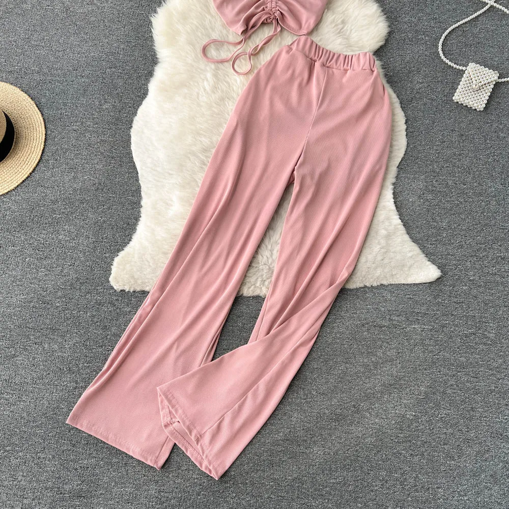 Spice Girl V-neck drawstring Fold lace-up short slim short sleeve top + high waist casual wide leg pants two-piece suit summer