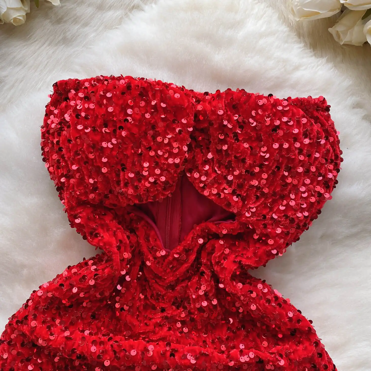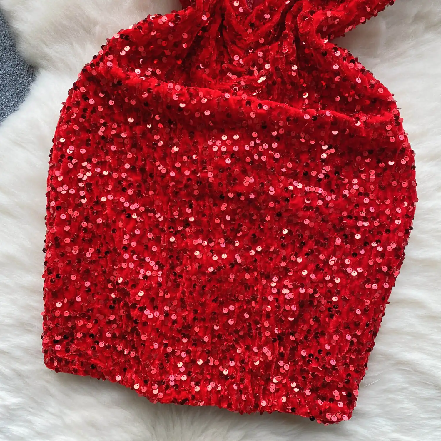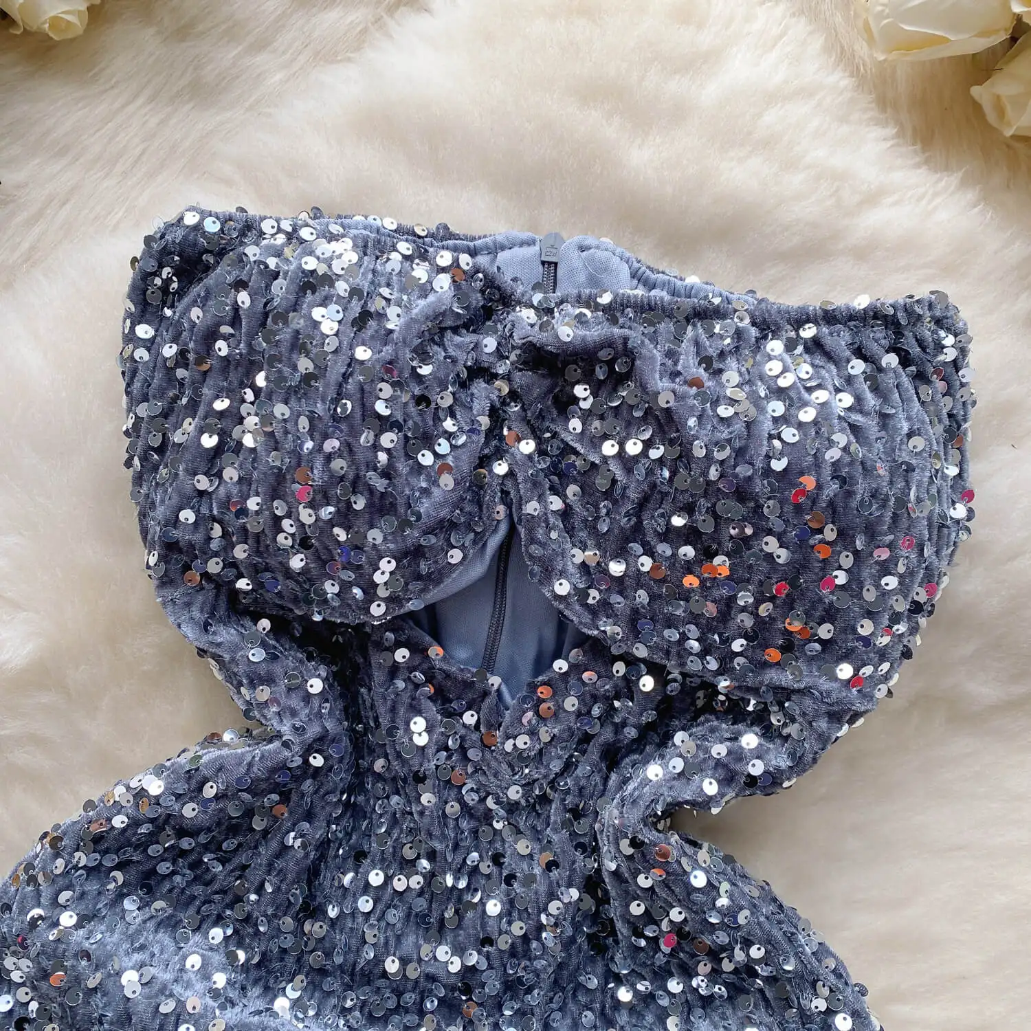 Spicy girl style strapless dress women's sequin hollowed out tight fitting stunning short skirt with buttocks