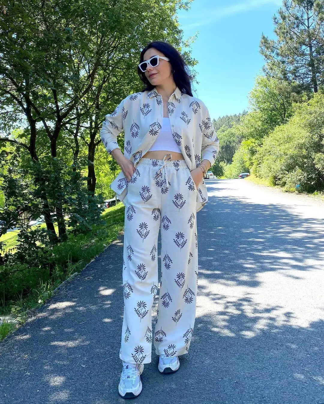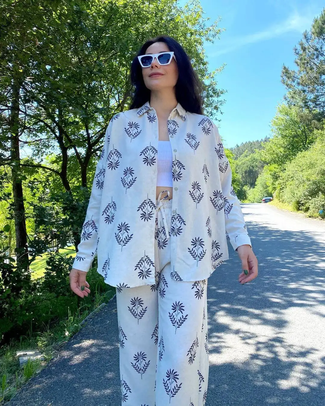 Spot Women's Set 2023 Autumn New Cotton and Hemp Long Sleeve Shirt High Waist Straight Trousers Two Piece Set