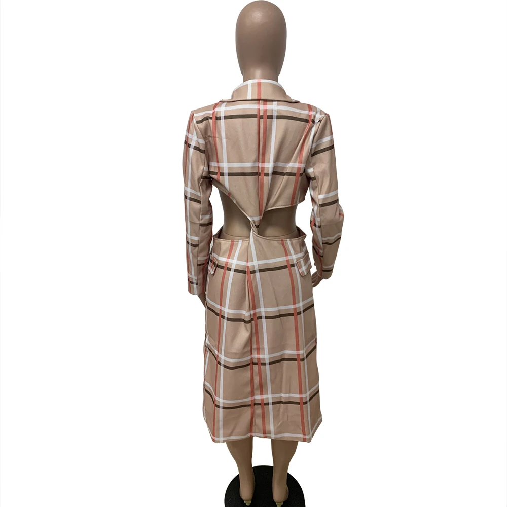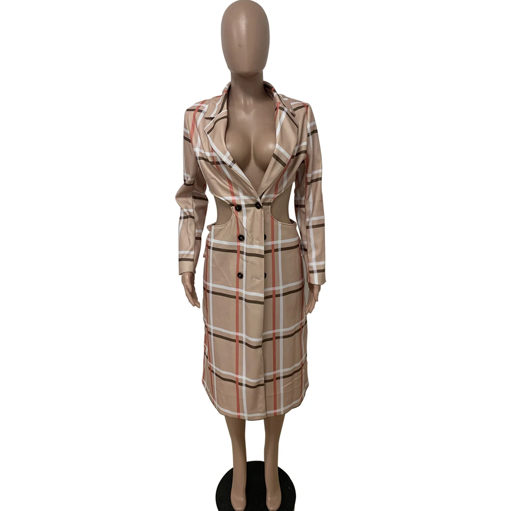 Spring 2022 Plaid Coat Outerwear Sexy Constructed Cut Out Double Layer Trench Plaid Coat