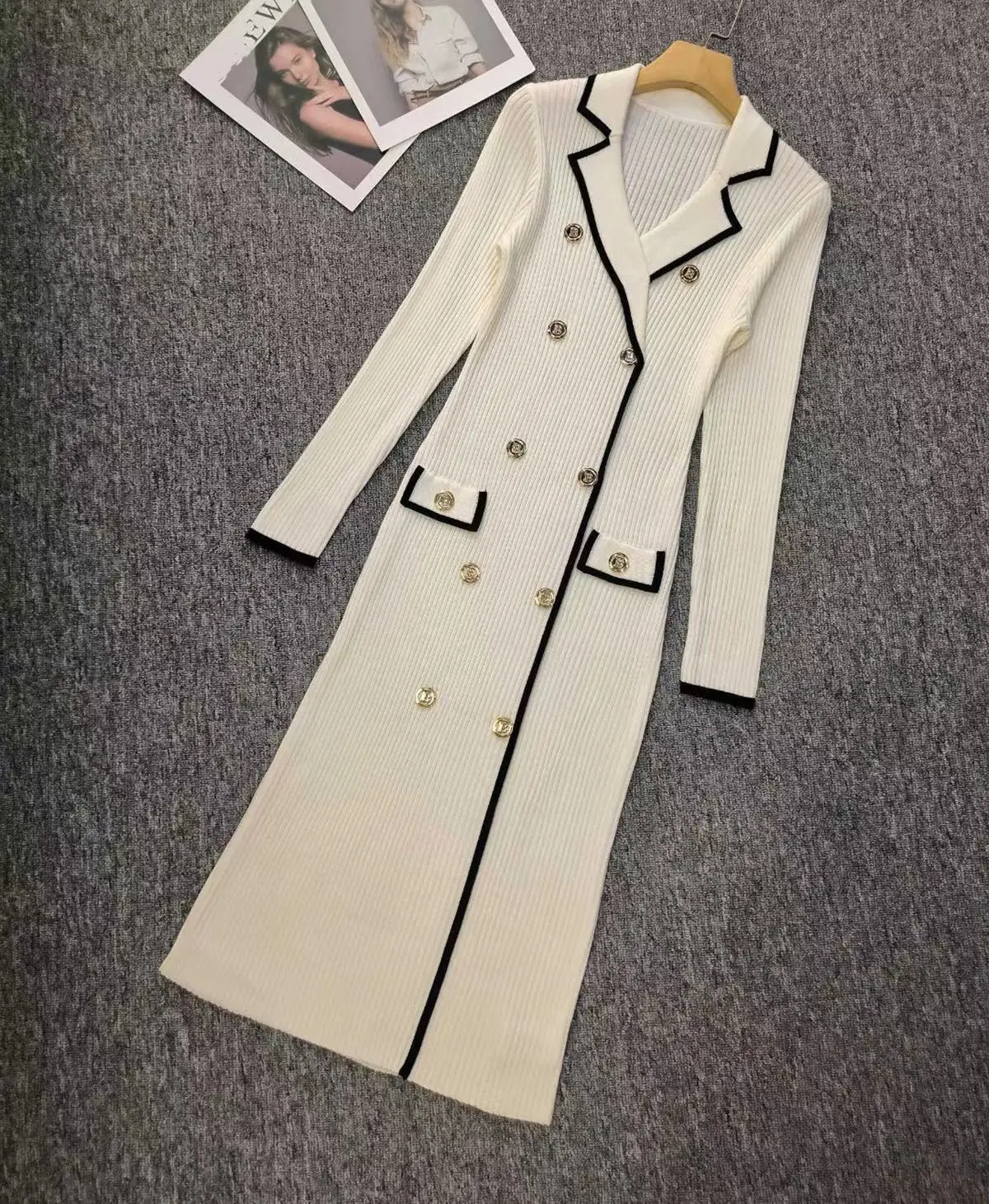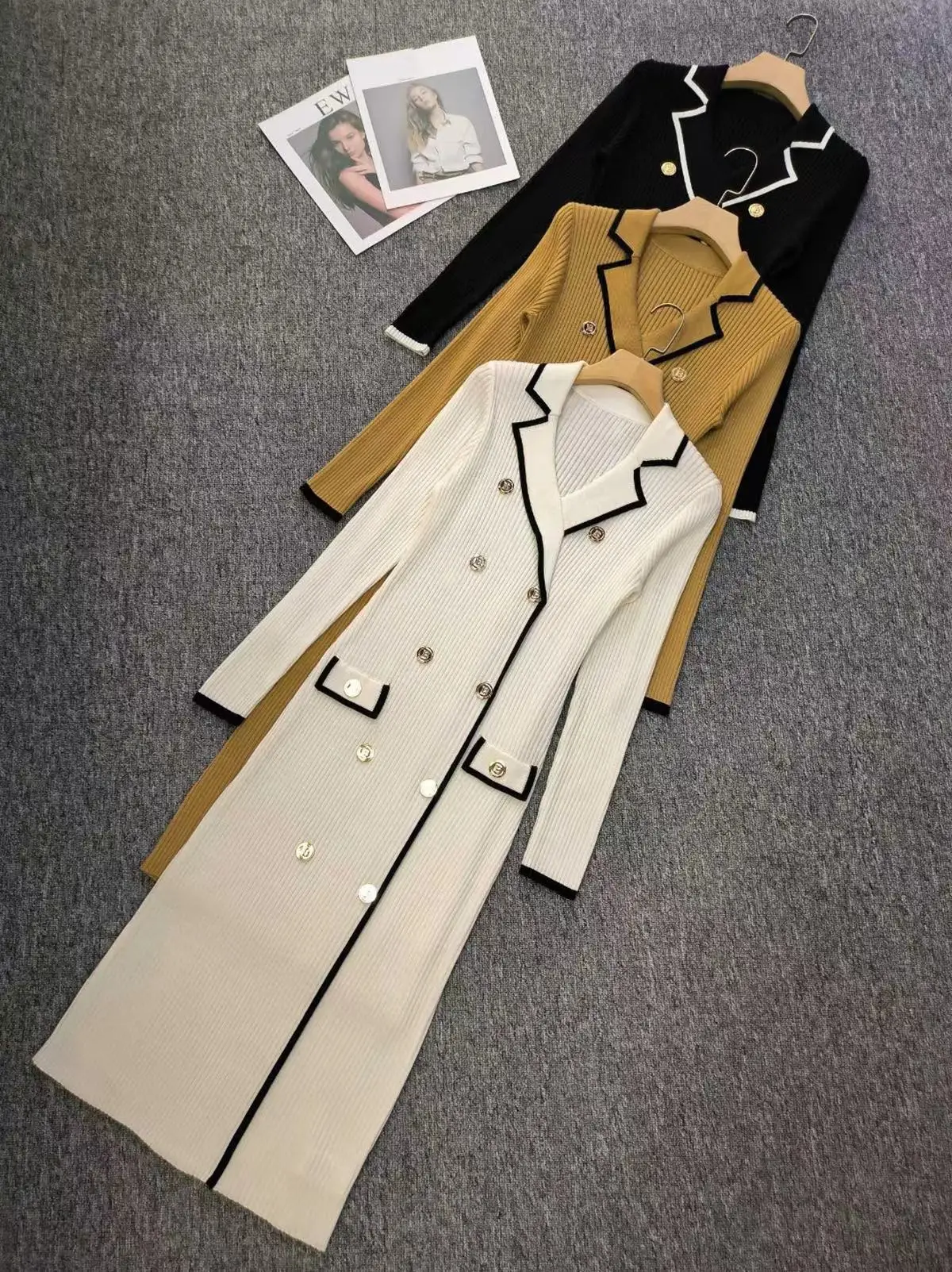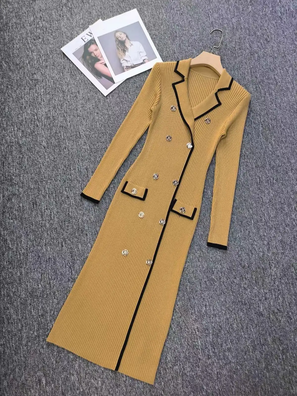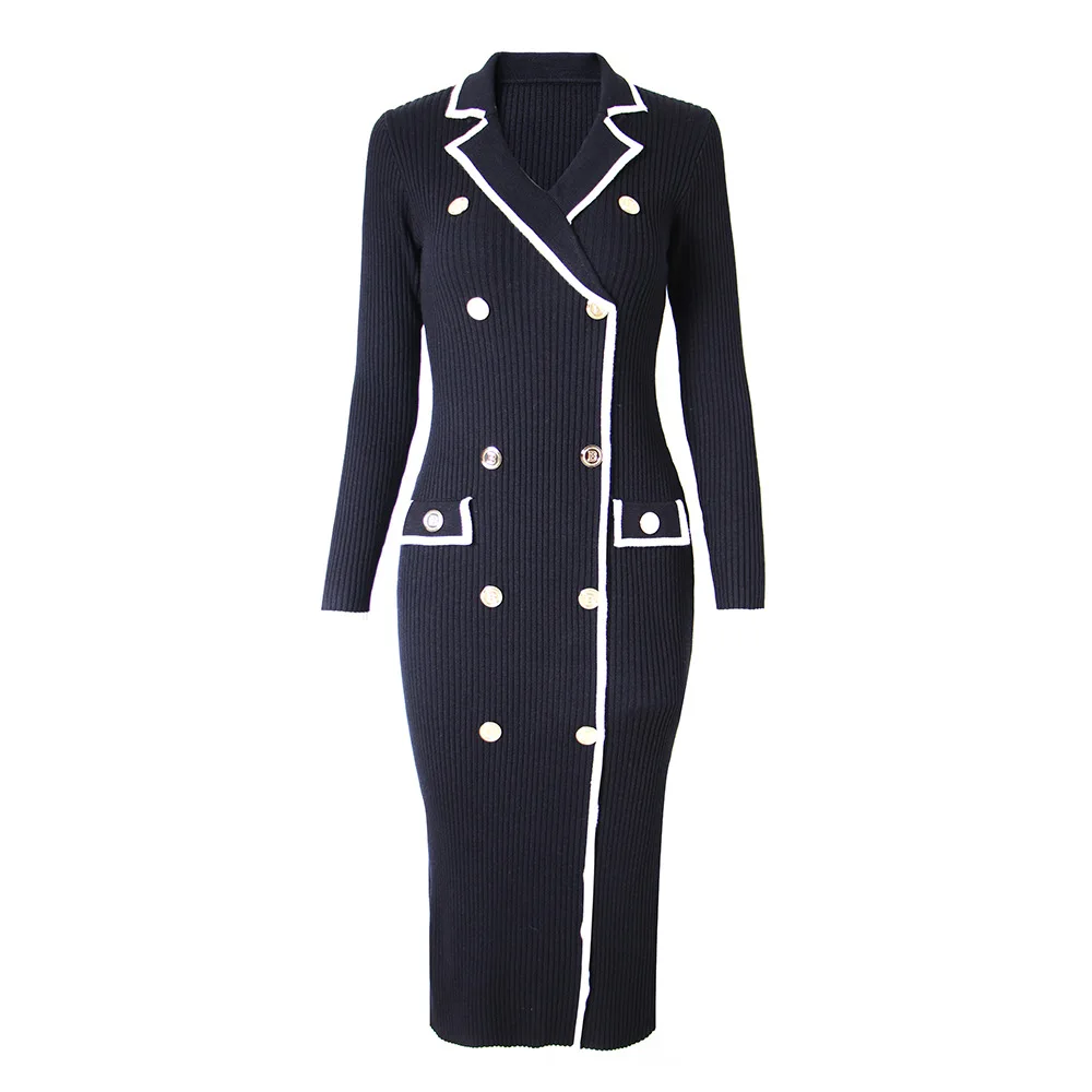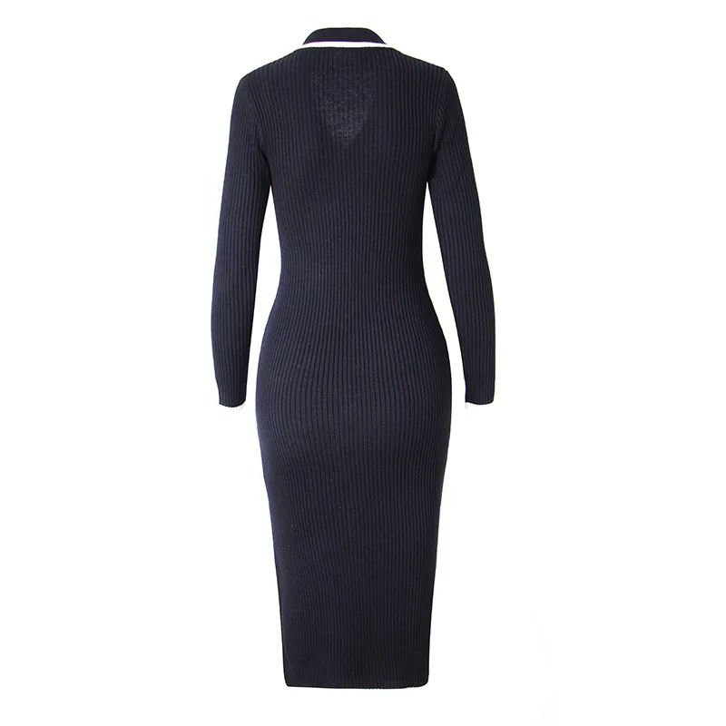 Spring 2023 new arrivals knitted dress women casual long sleeve sweater dress casual deep V neck knit dresses