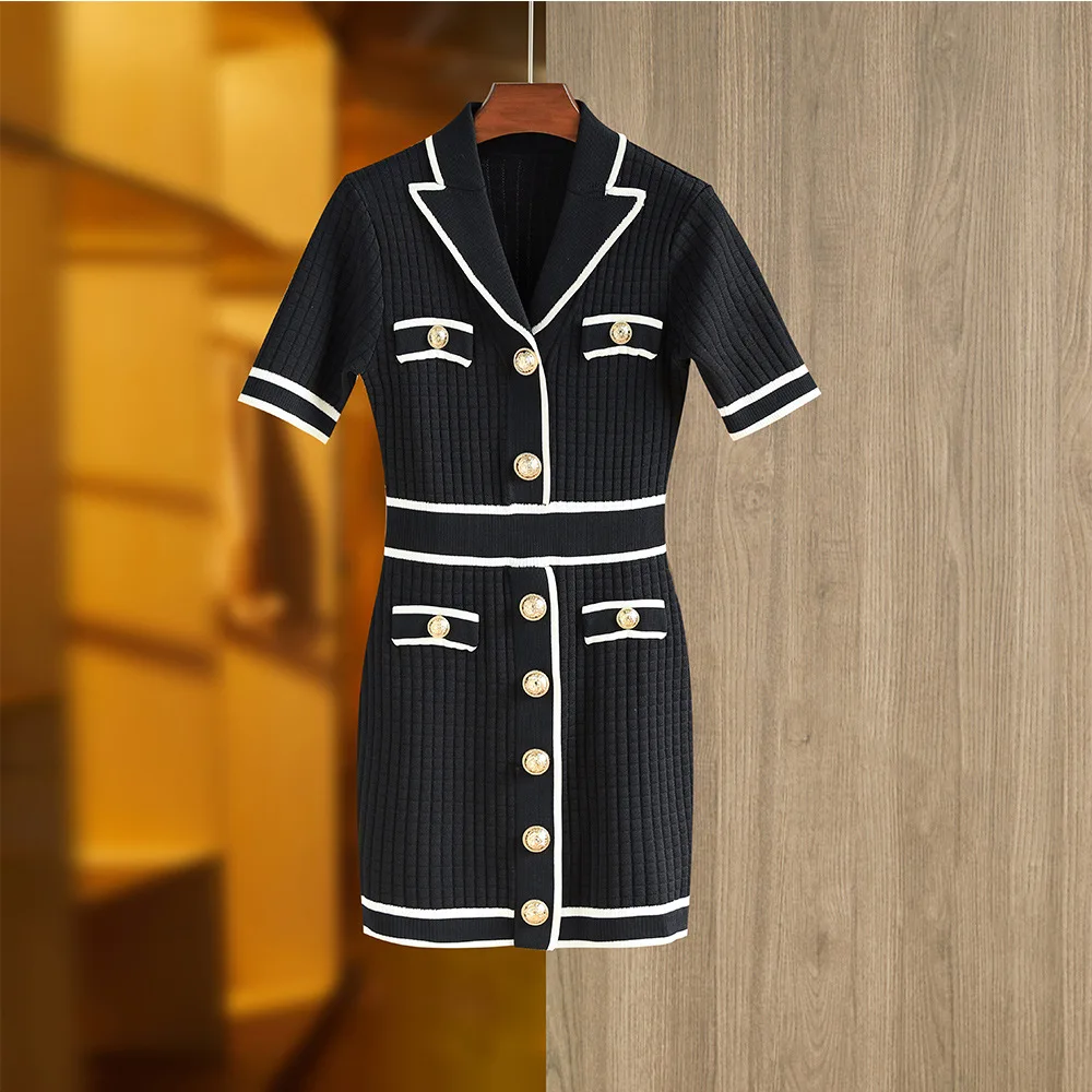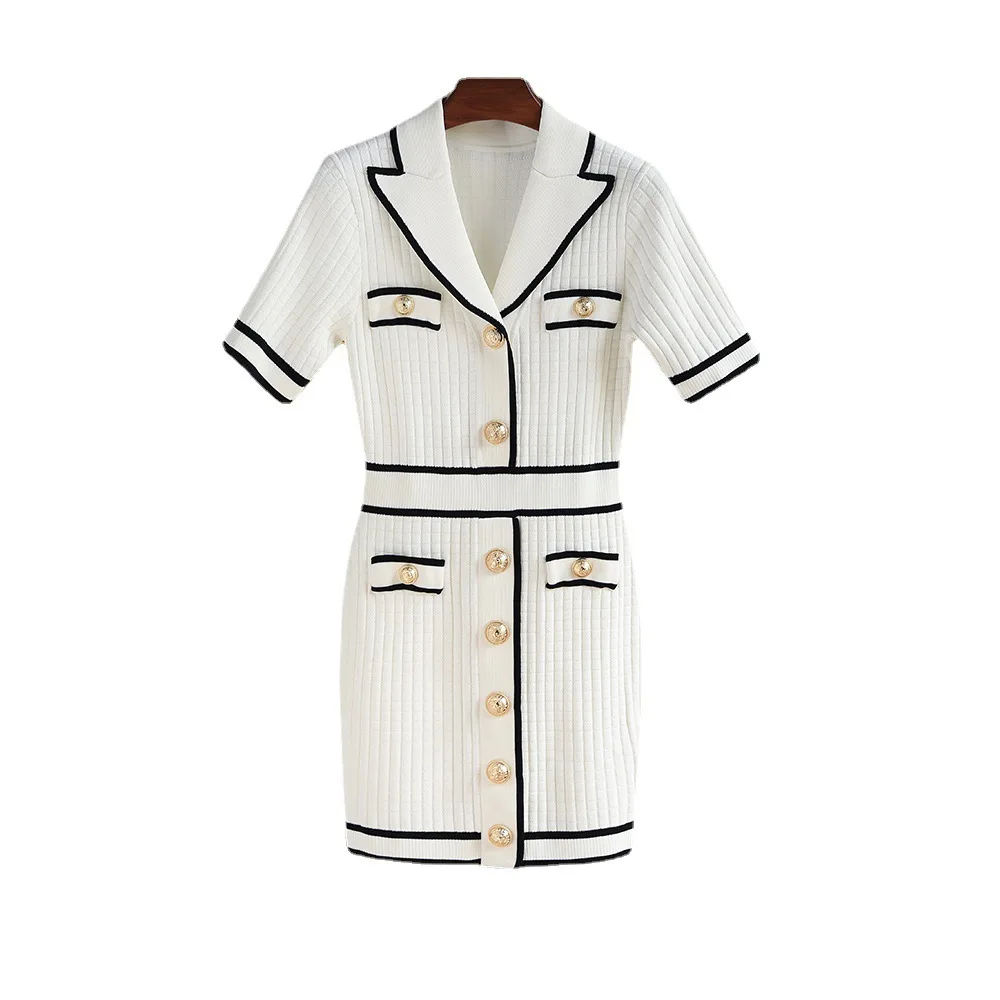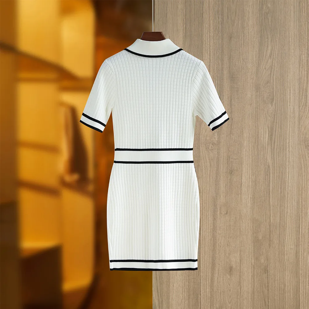 Spring 2023 new arrivals knitted dress women ribbed casual short sleeve sweater dress office lady wear
