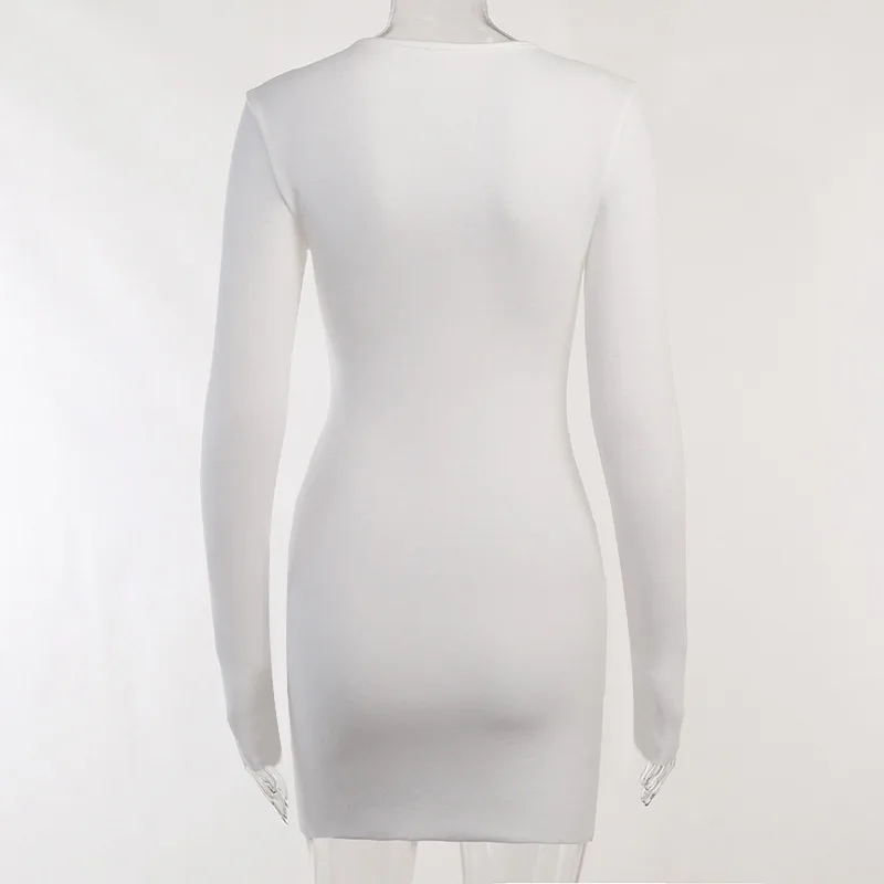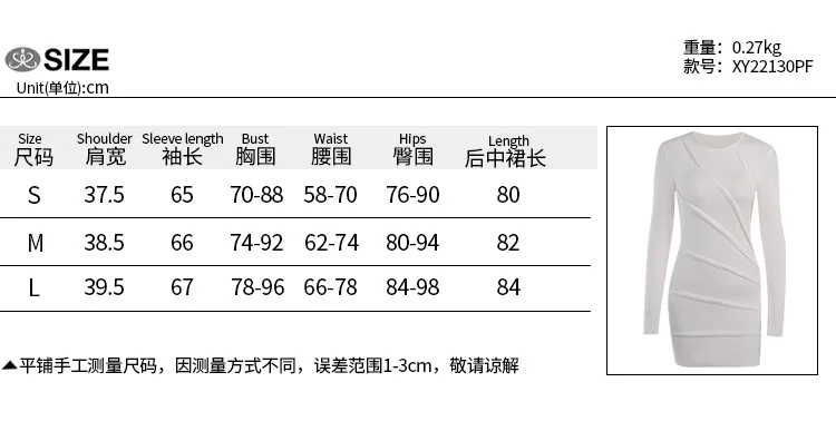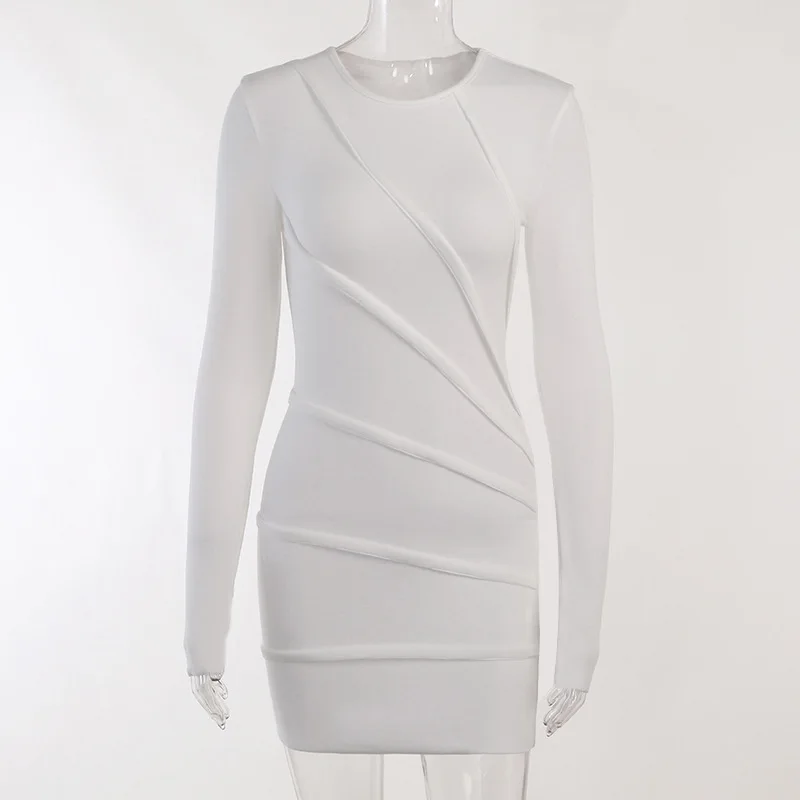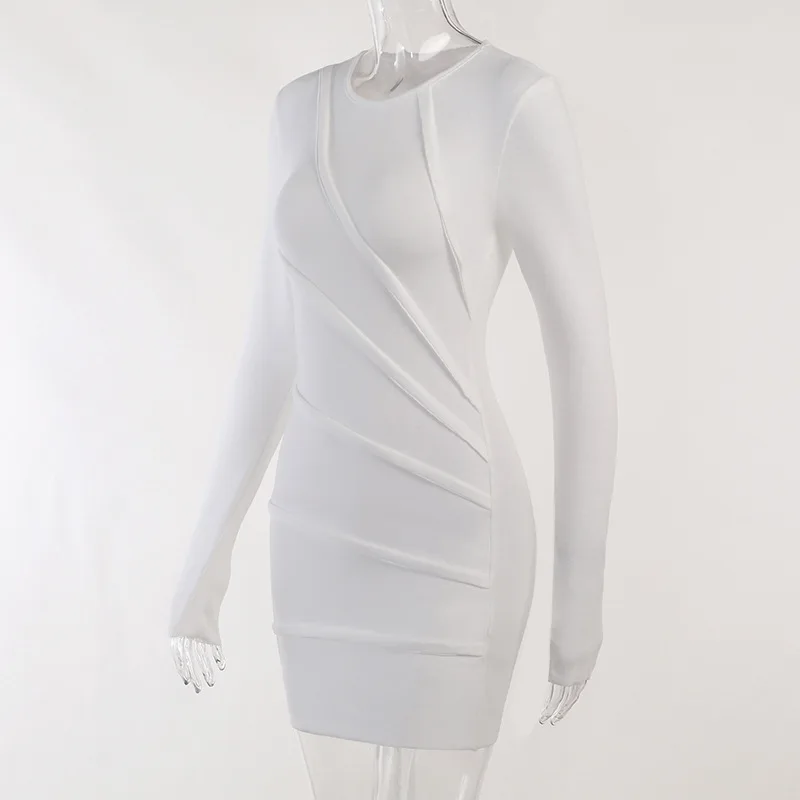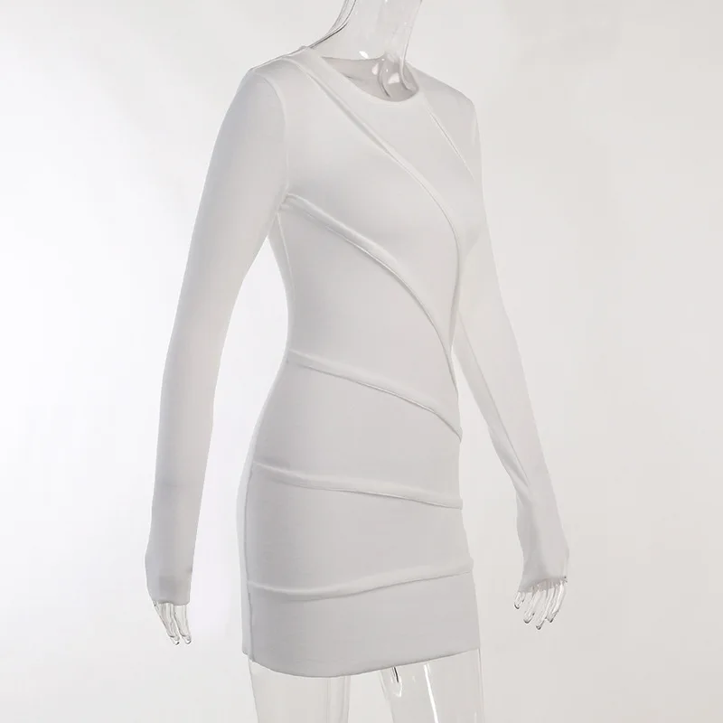 Spring 2023 New Round Neck Long Sleeve Solid Color Patchwork Hip Skirt Sexy Slim Design Sense Women's Dress