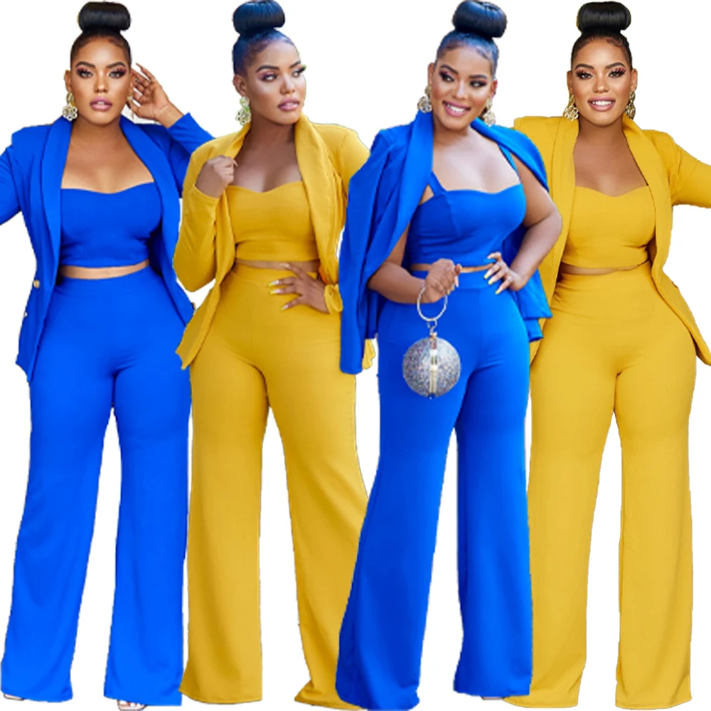 Spring 2023 Women s Clothing Elegant Ladies Suits Set for Women Solid Long Sleeve Blazer and Pants Office Wear Three Piece Suits