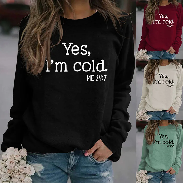 Spring 2023 Women s Clothing Winter Hoodies Unisex Yes I'm Cold Printed Hoodie Casual Loose Women's Hoodies & Sweatshirts