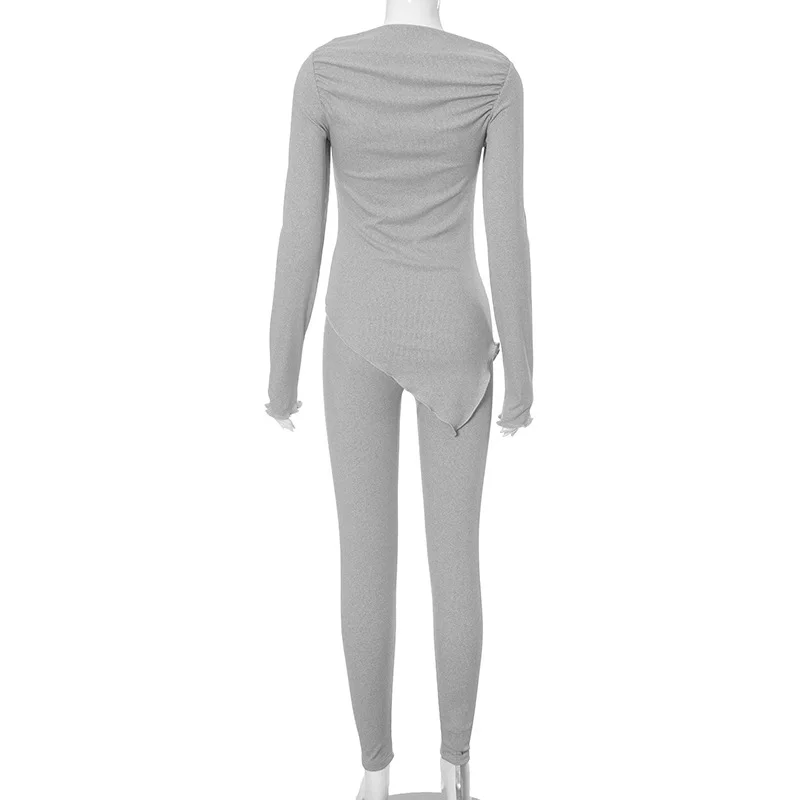 Spring 2024 Women Clothes Solid Color 2 Piece Leggings Set Women's Casual Suit Stretch Ribbed Tight Two Piece Set