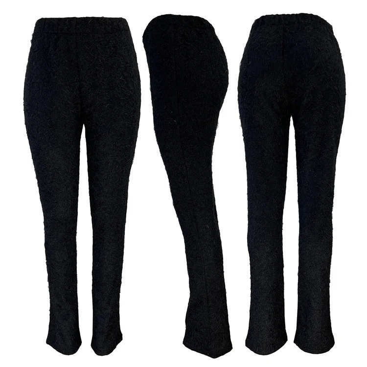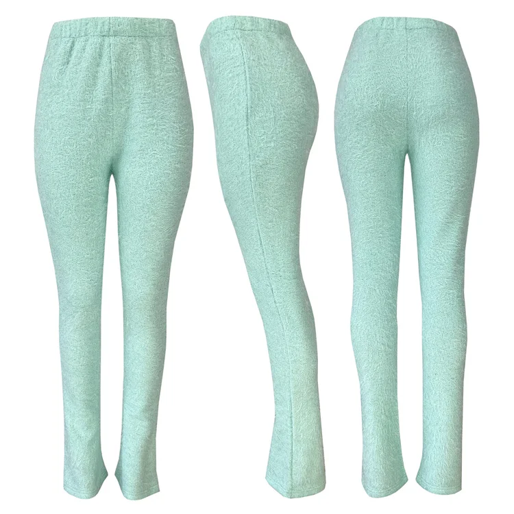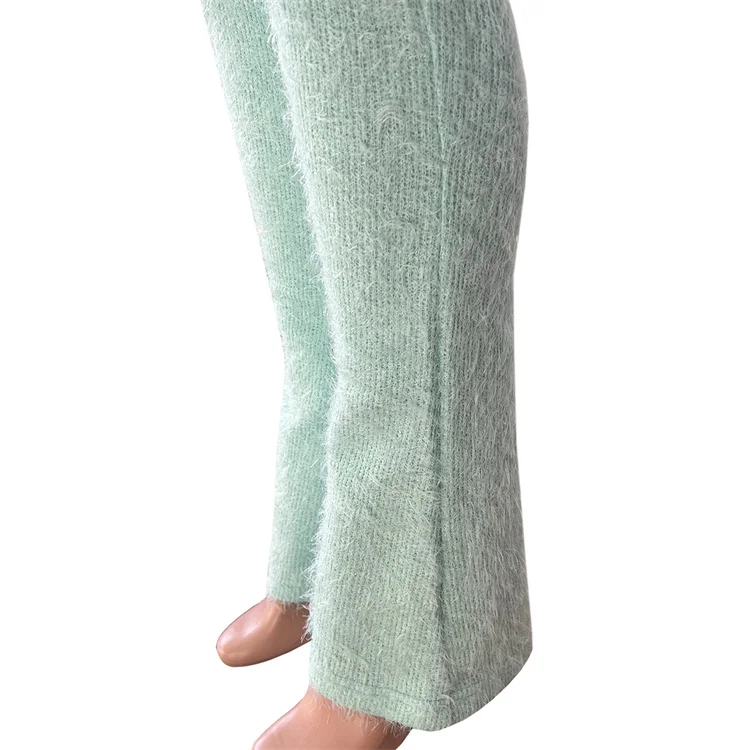 Spring 2024 Womens Street Fashion Fluffy Stacked Jogger Pants Trousers Solid Color Women Bell Bottom Joggers Fuzzy Stacked Pants