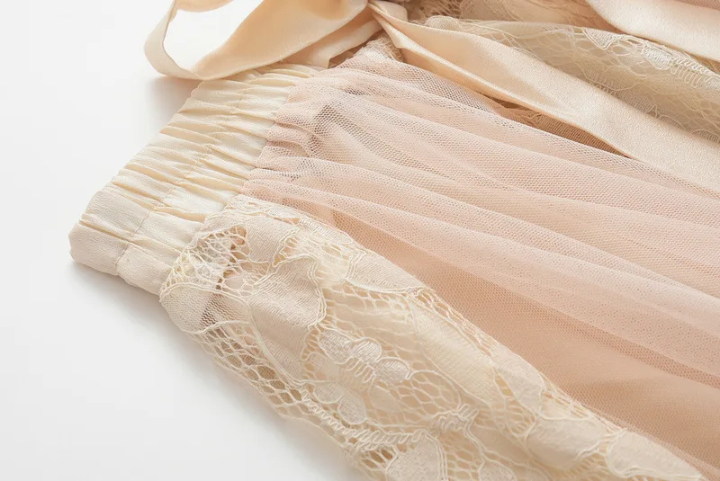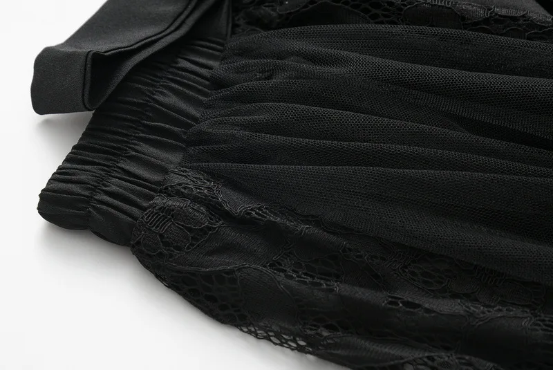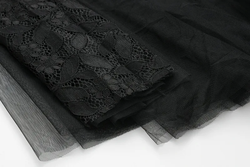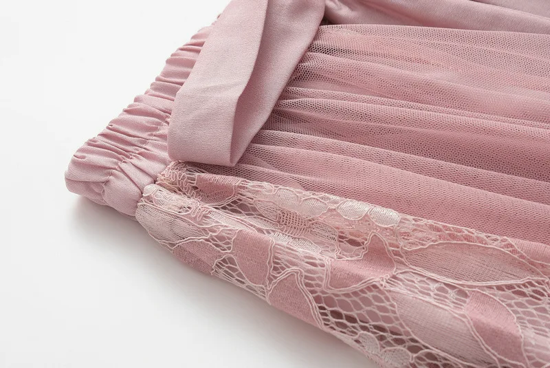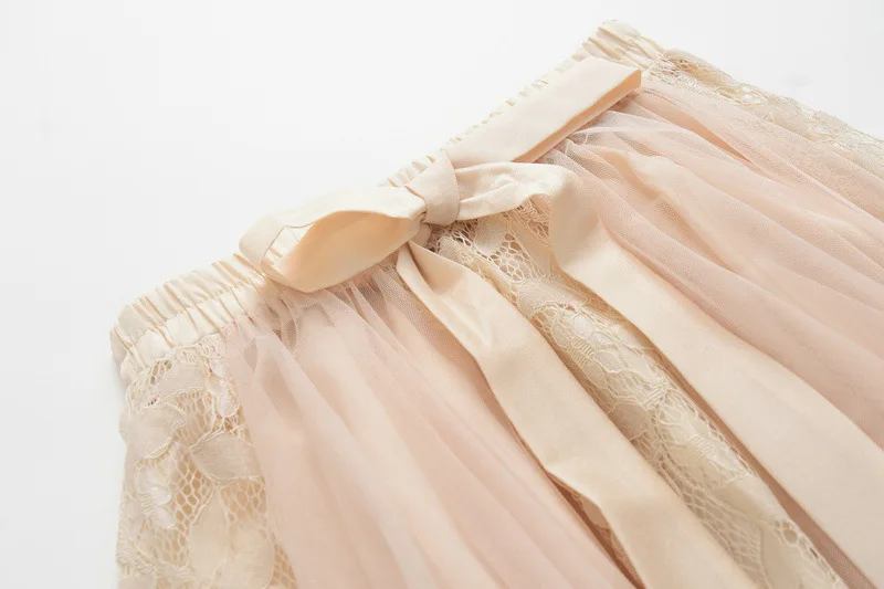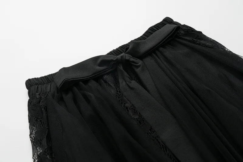 Spring Autumn Lace Patchwork Midi Skirt Women Bow Kawaii Summer Fashion Casual High Waist Pleated Mesh Skirts Female Black Pink