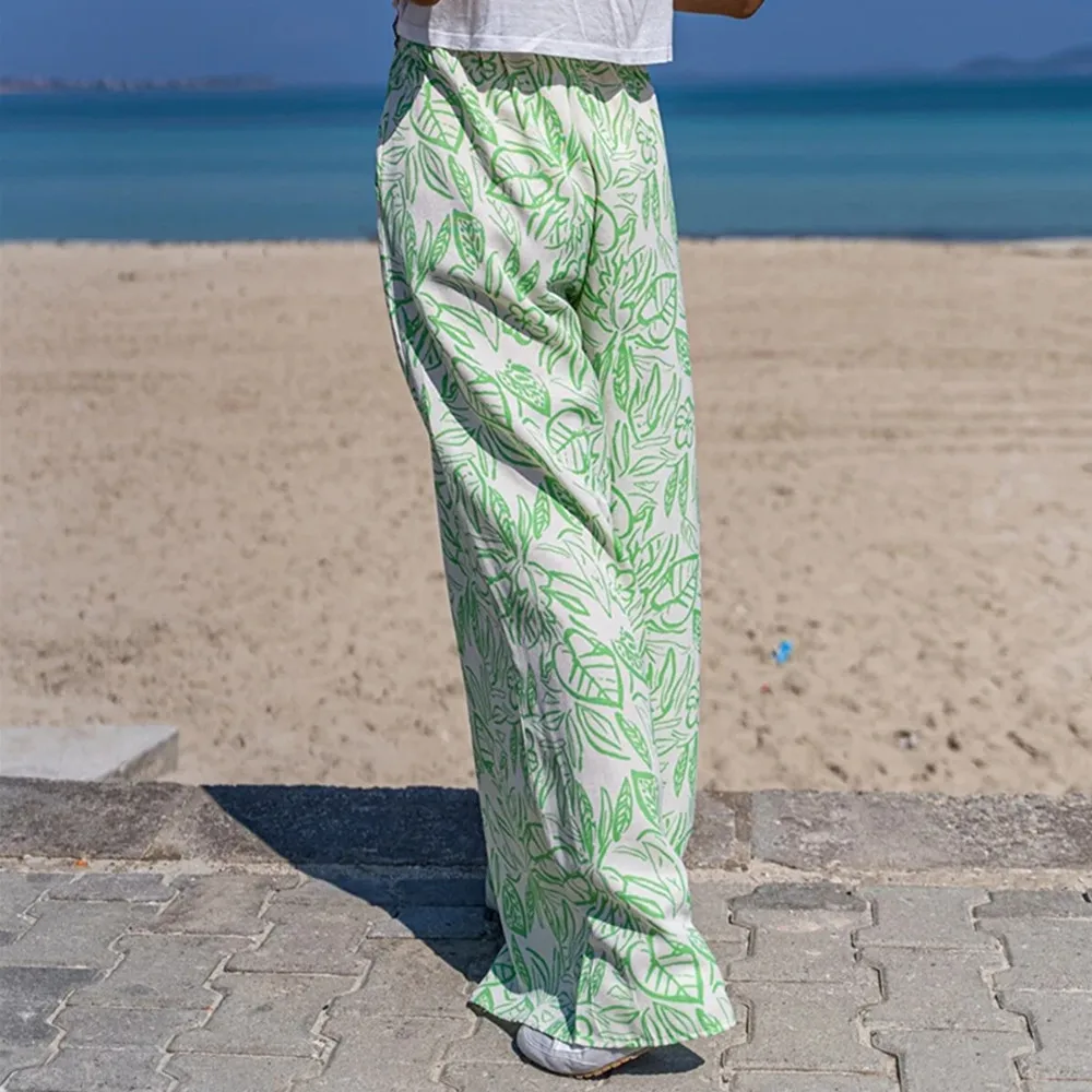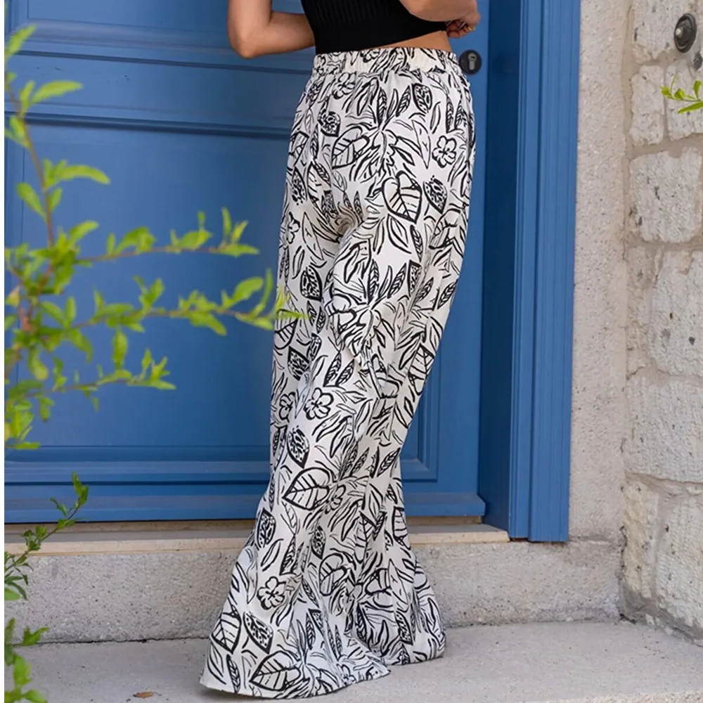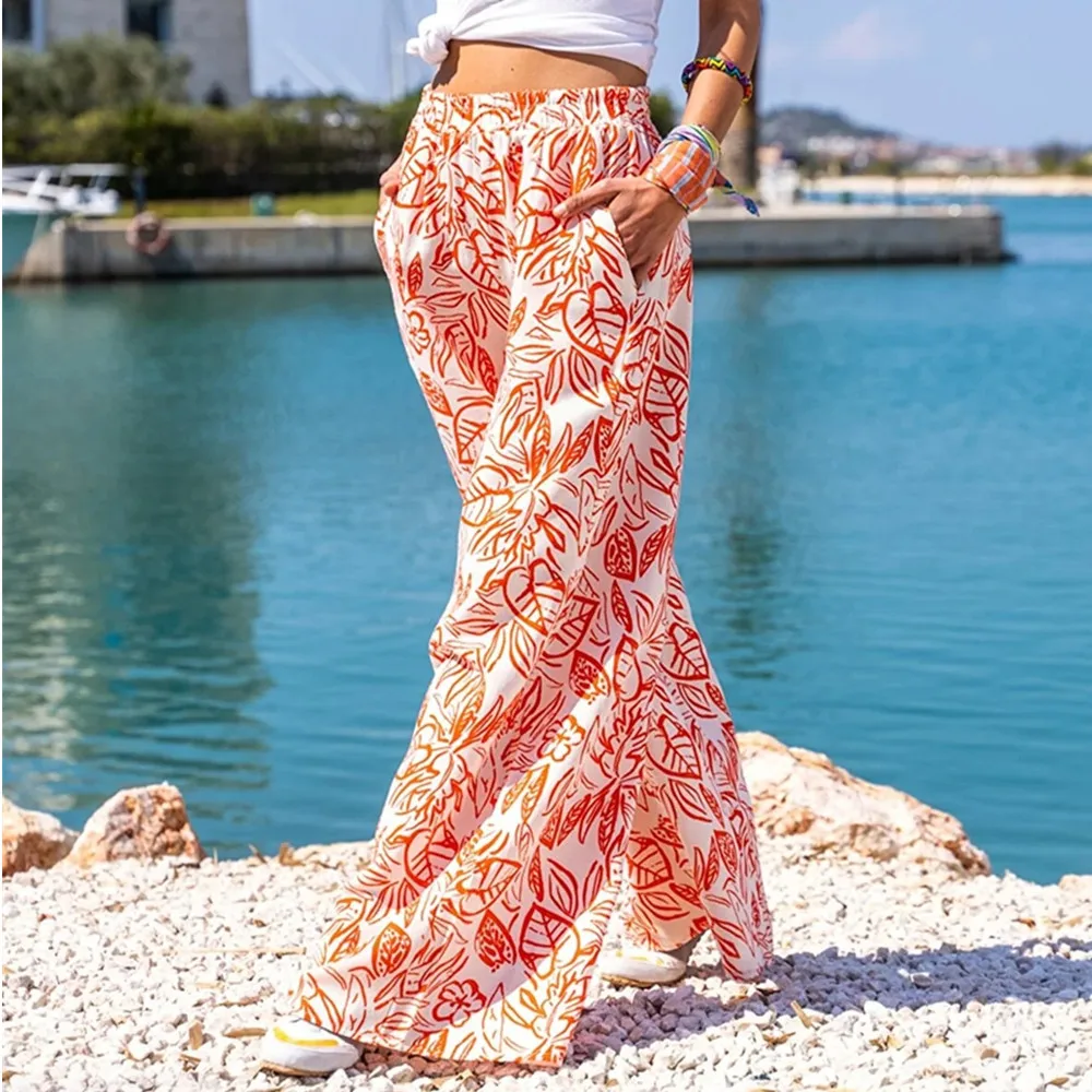 Spring Autumn New Women's Printed Pants Wide Leg Pants Slant Pocket Casual Beach Pants