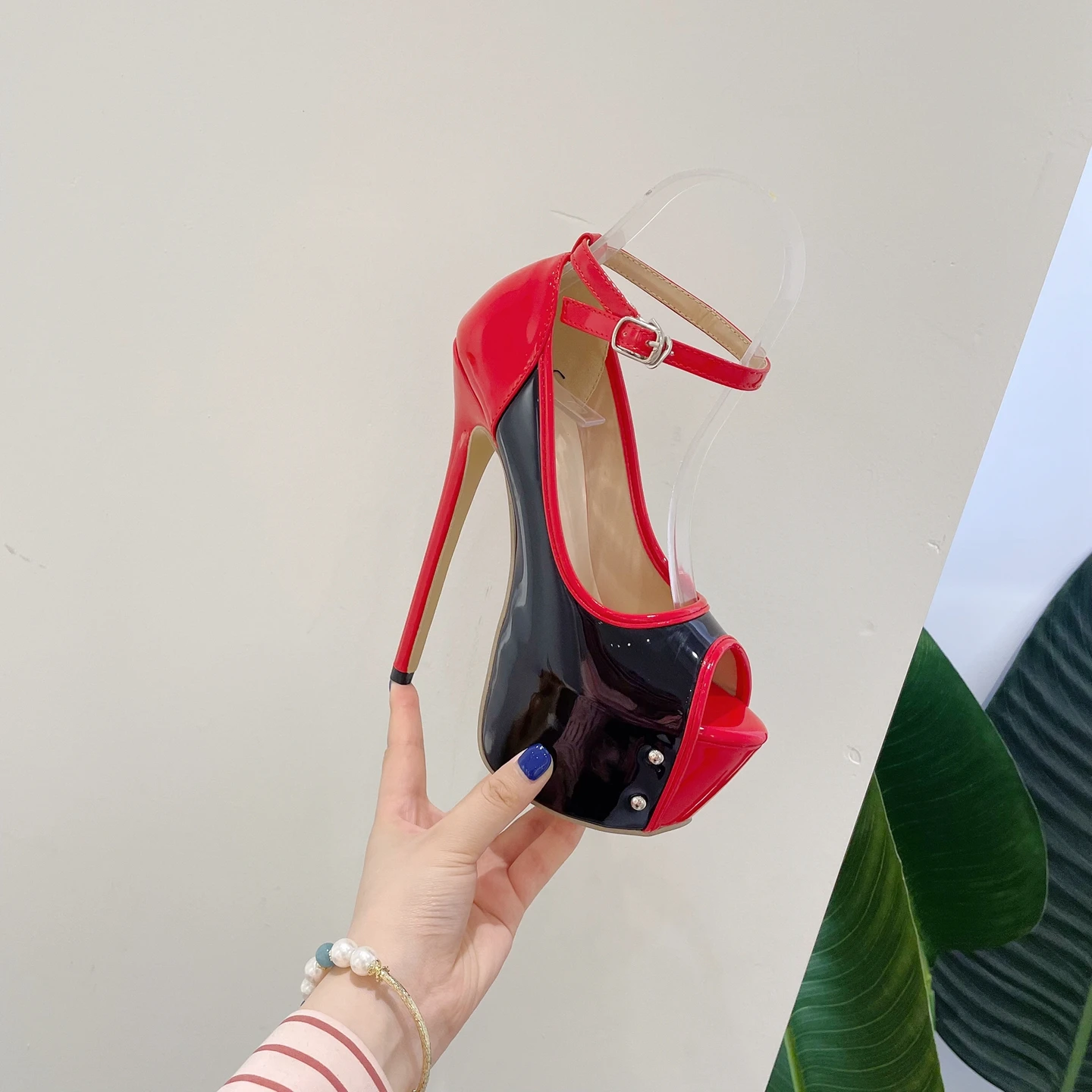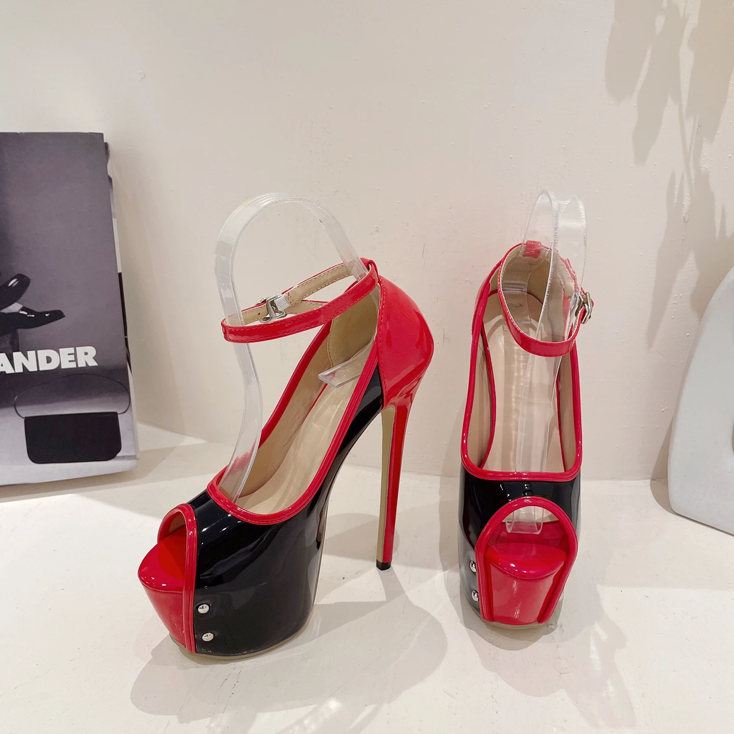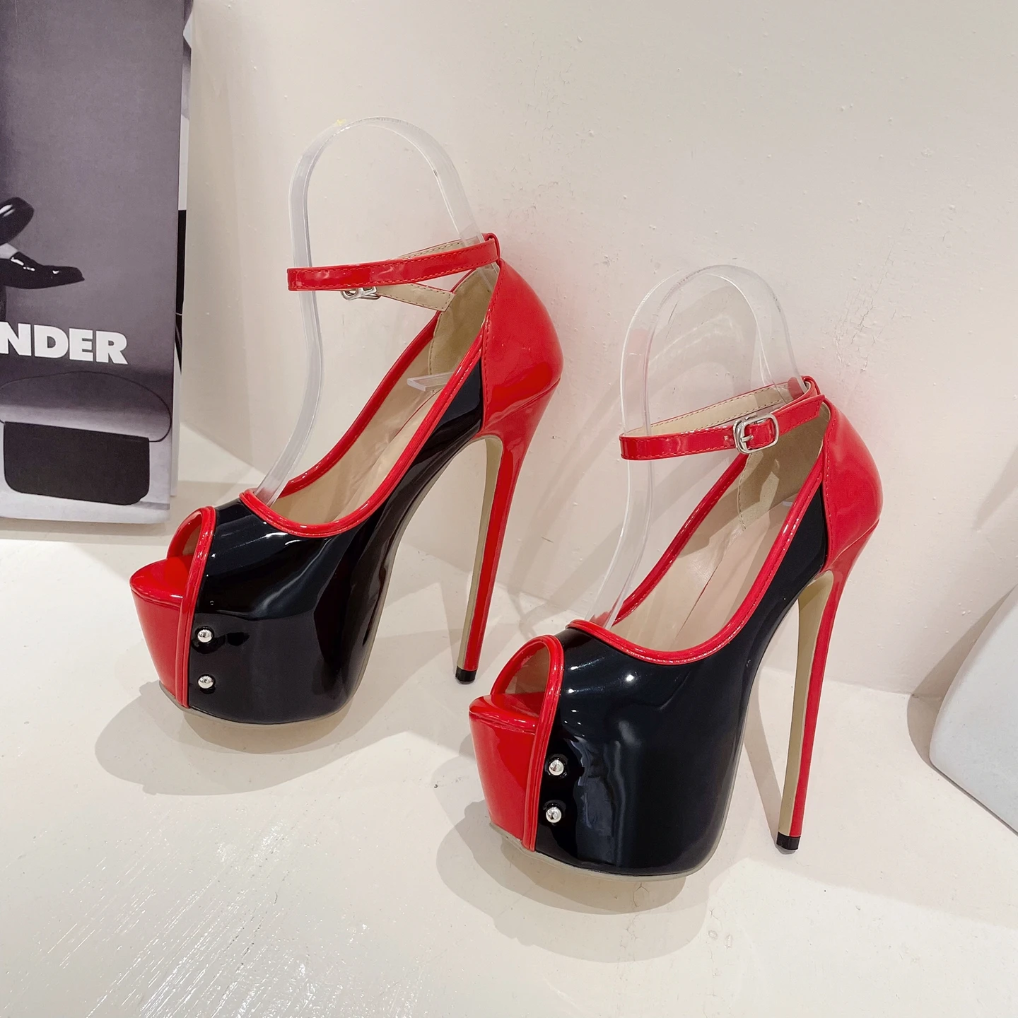 Spring Autumn Red Ankle Strap Platform Women Pumps Sexy Peep Toe Slingback High Heels Stiletto Fashion Runway Pole Dance Shoes