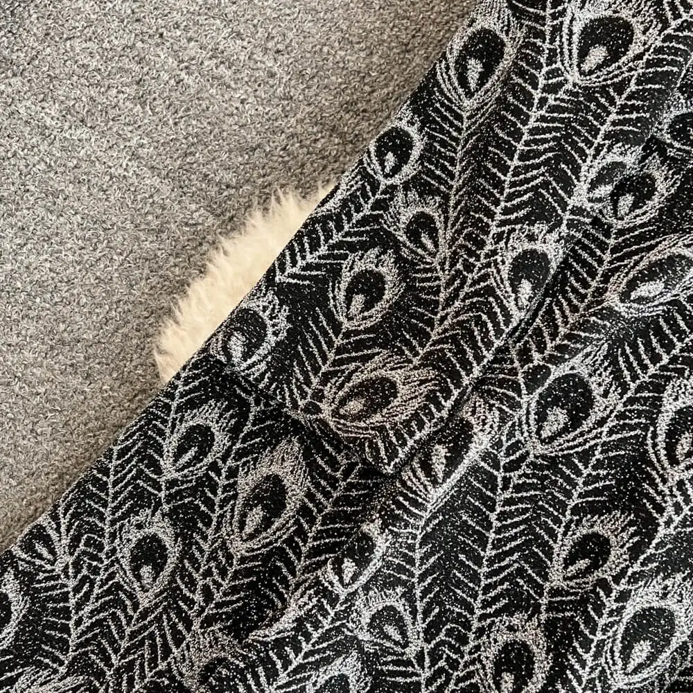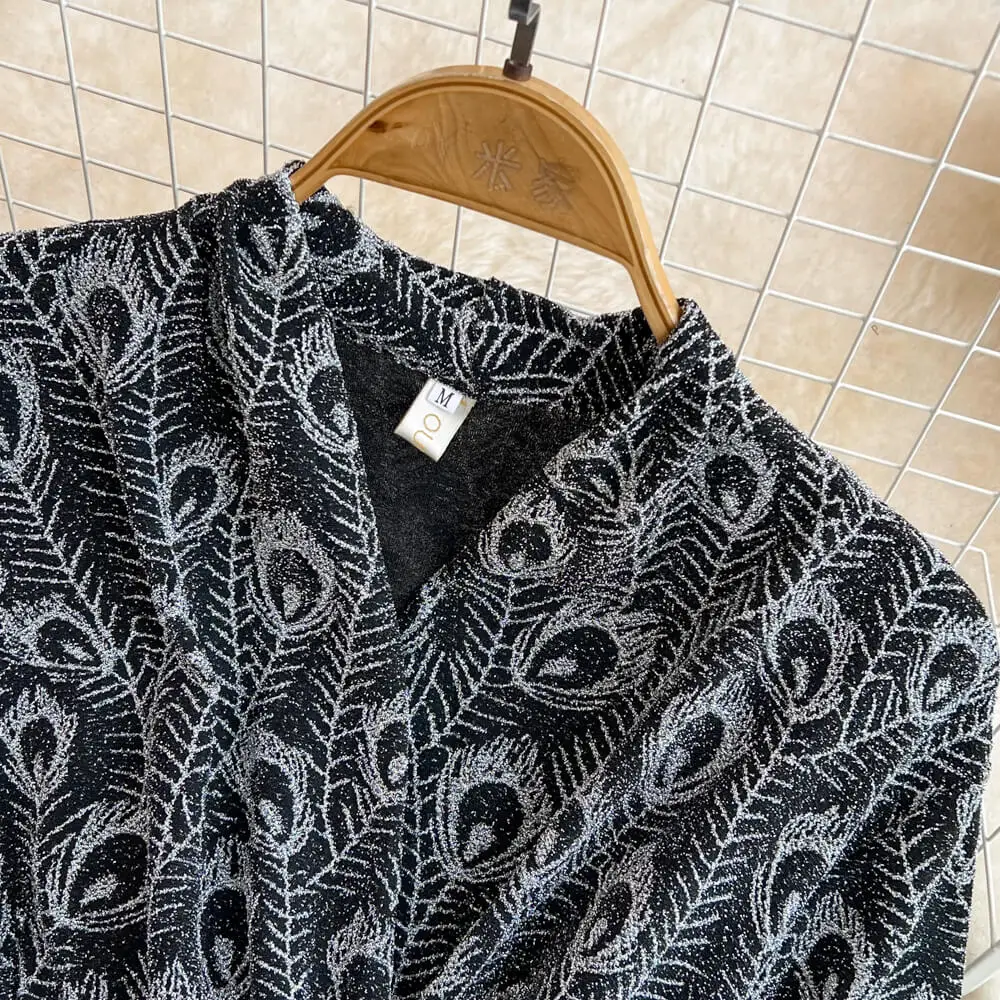 Spring Autumn Temperament Long Sleeve V-Neck Waist Slimming A-Line Peacock Print Dress