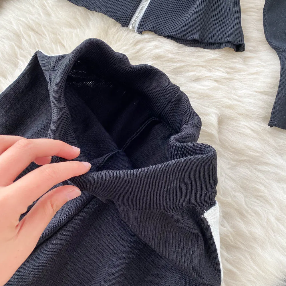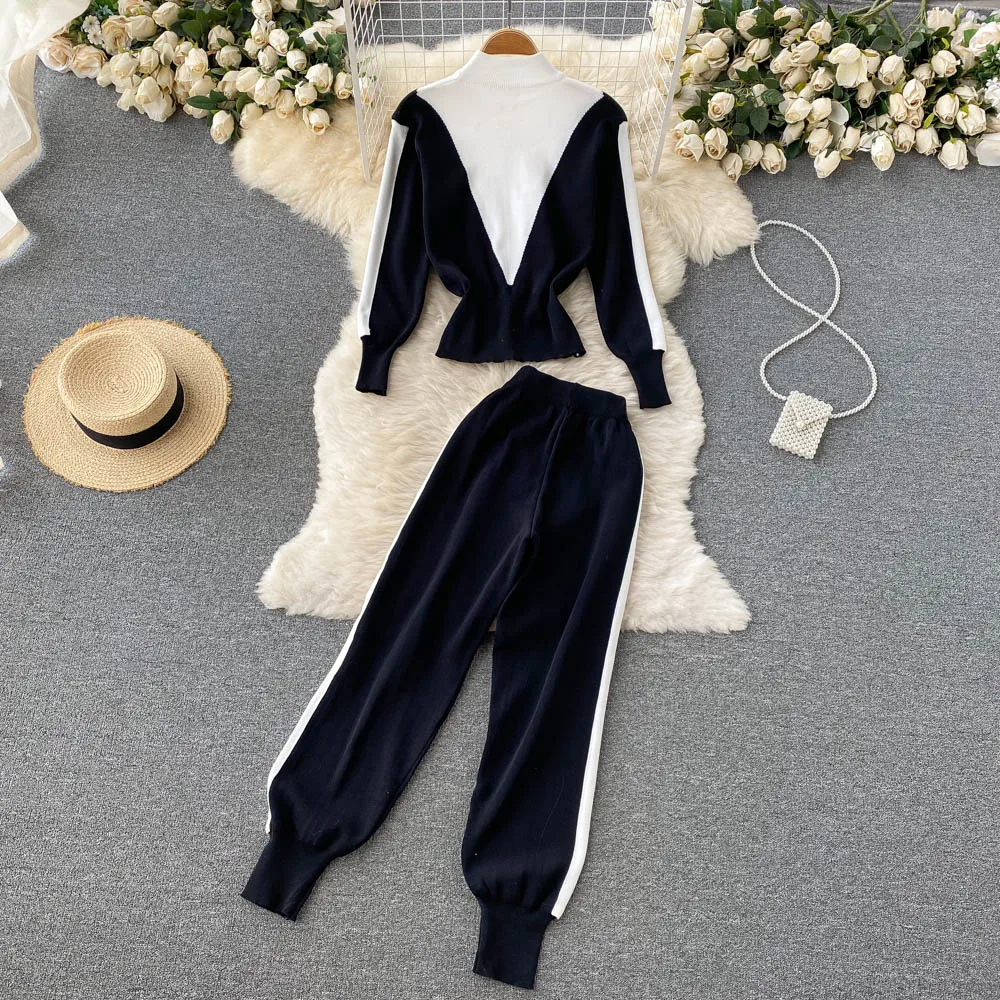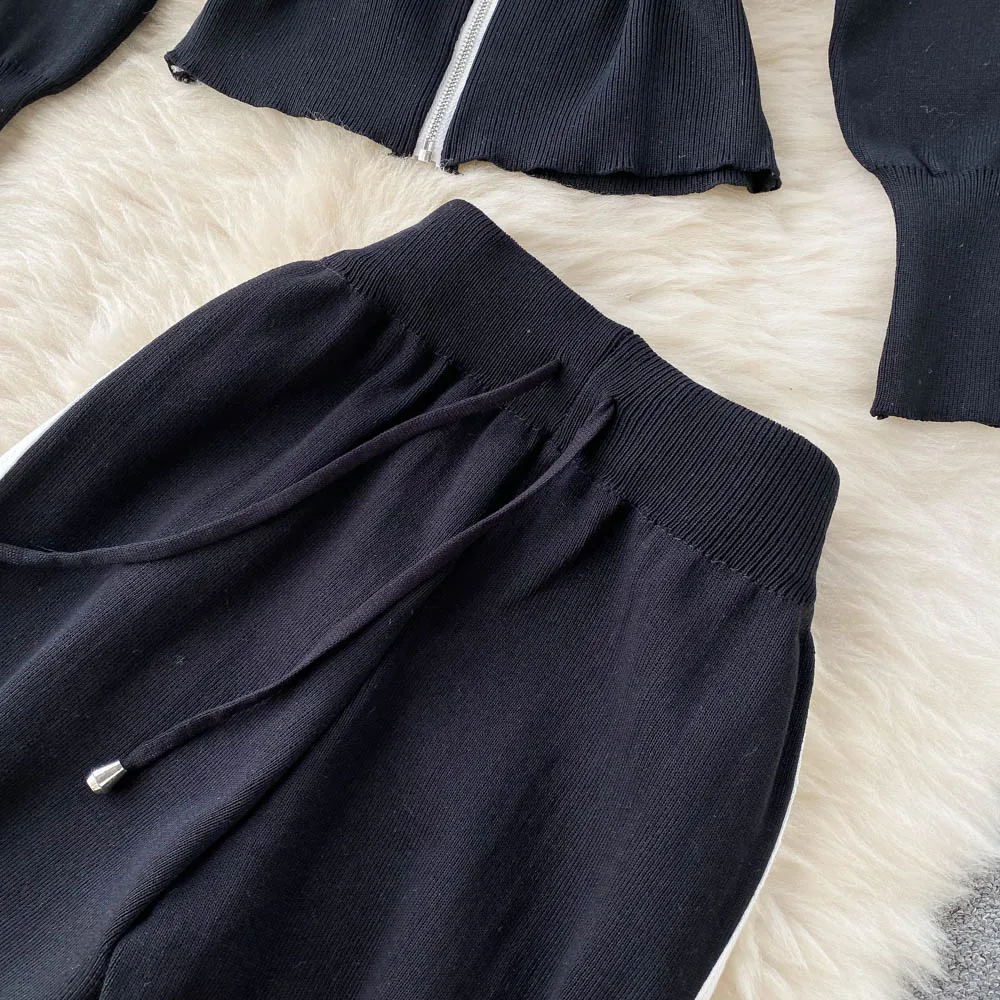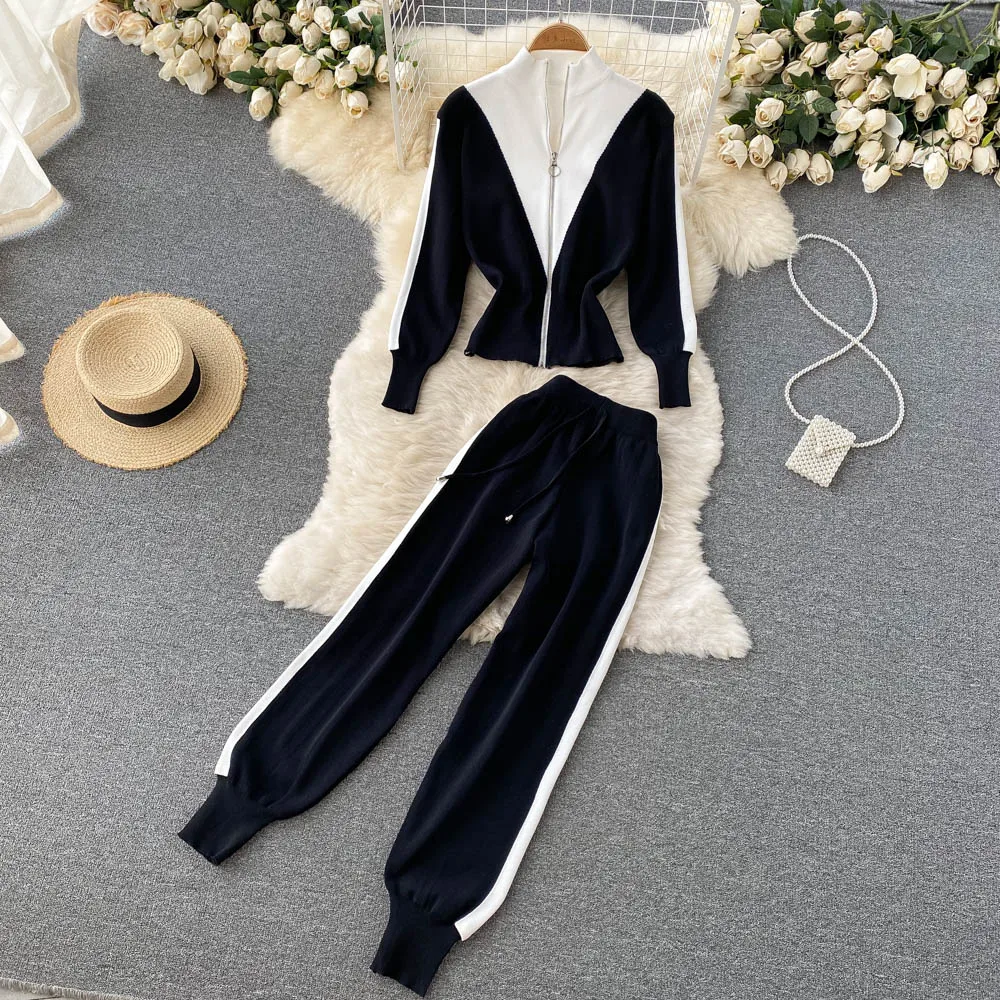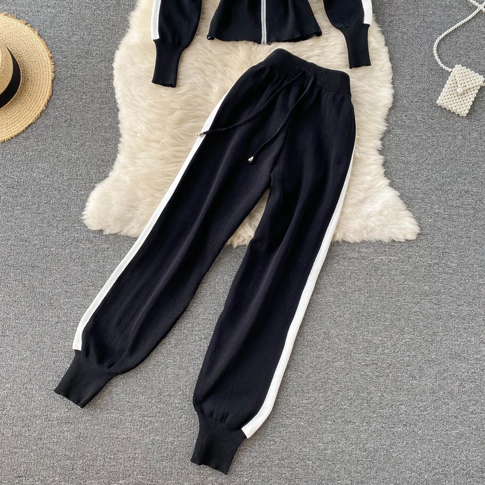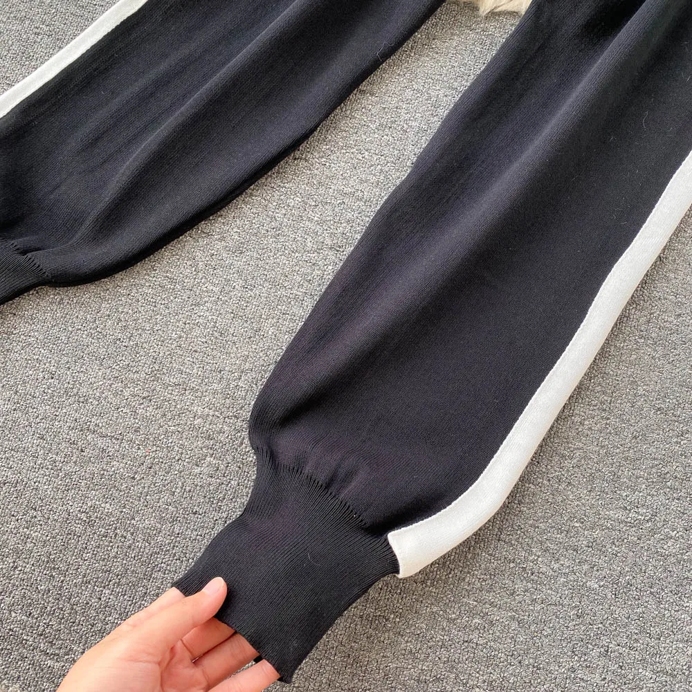 Spring Fall Long Sleeve Sweaters Women Track Suit Knit Sets Two Pieces Costumes Outfit