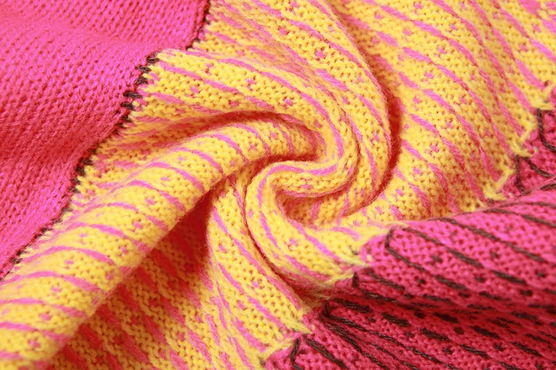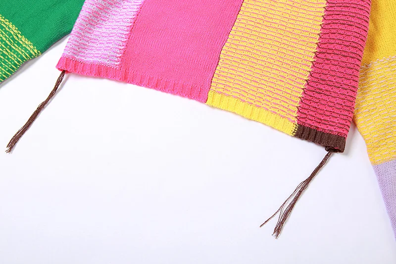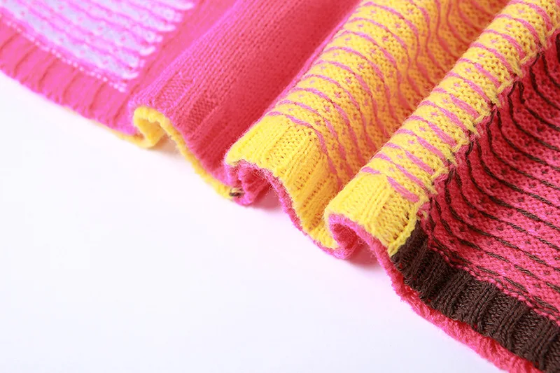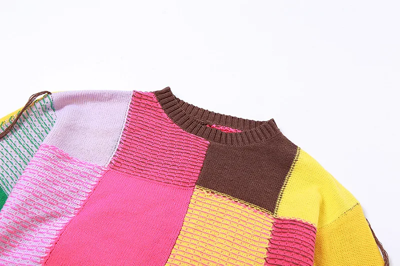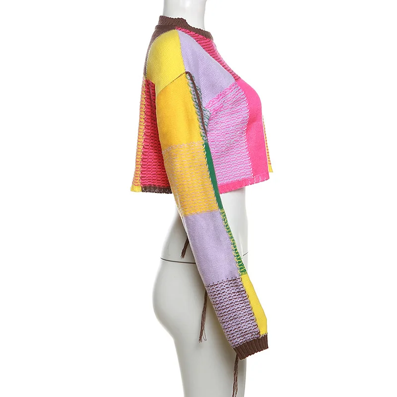 Spring Fall Winter New Trendy Lady Casual Pullover Color Block Knitted Short Cropped Top Women's Sweaters