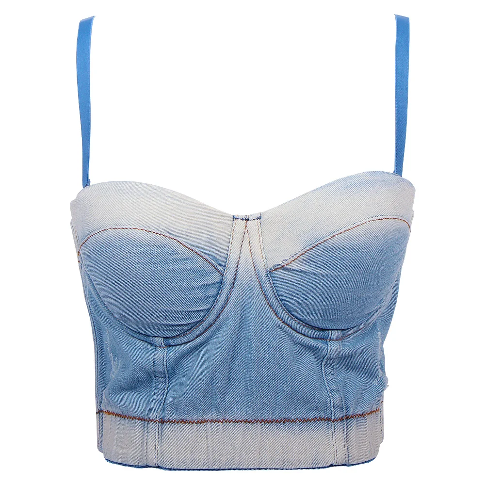 Spring New Washing Gradient denim blue Camisole corset tops for women Casual denim tank top